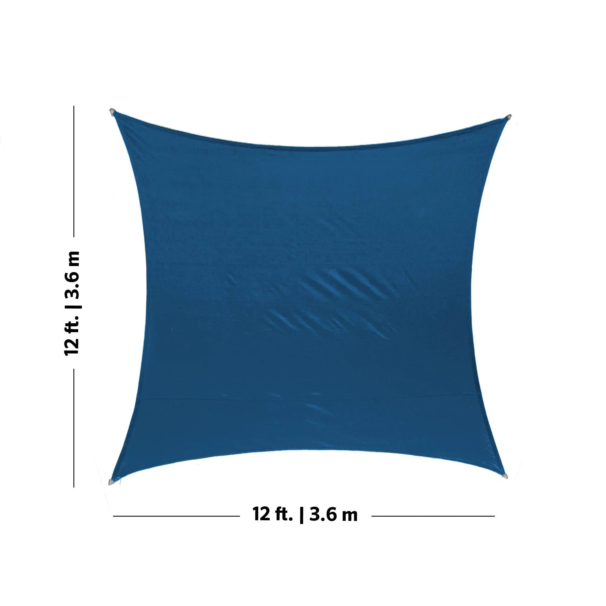 Coolaroo Coolhaven Outdoor Sun Shade Sail 95% UV Block Protection for Garden, Patio, Backyard, 12' Square, Sapphire