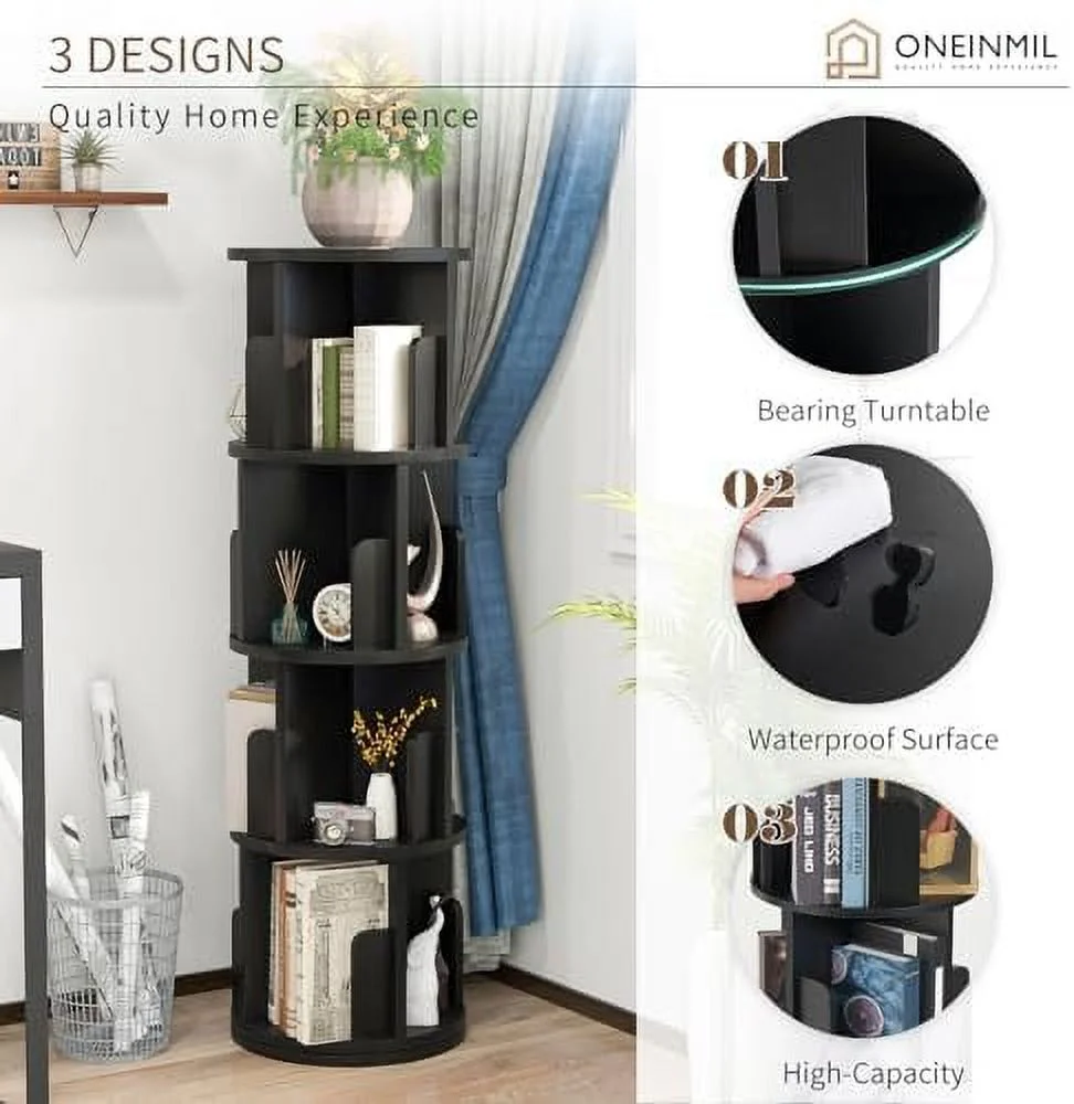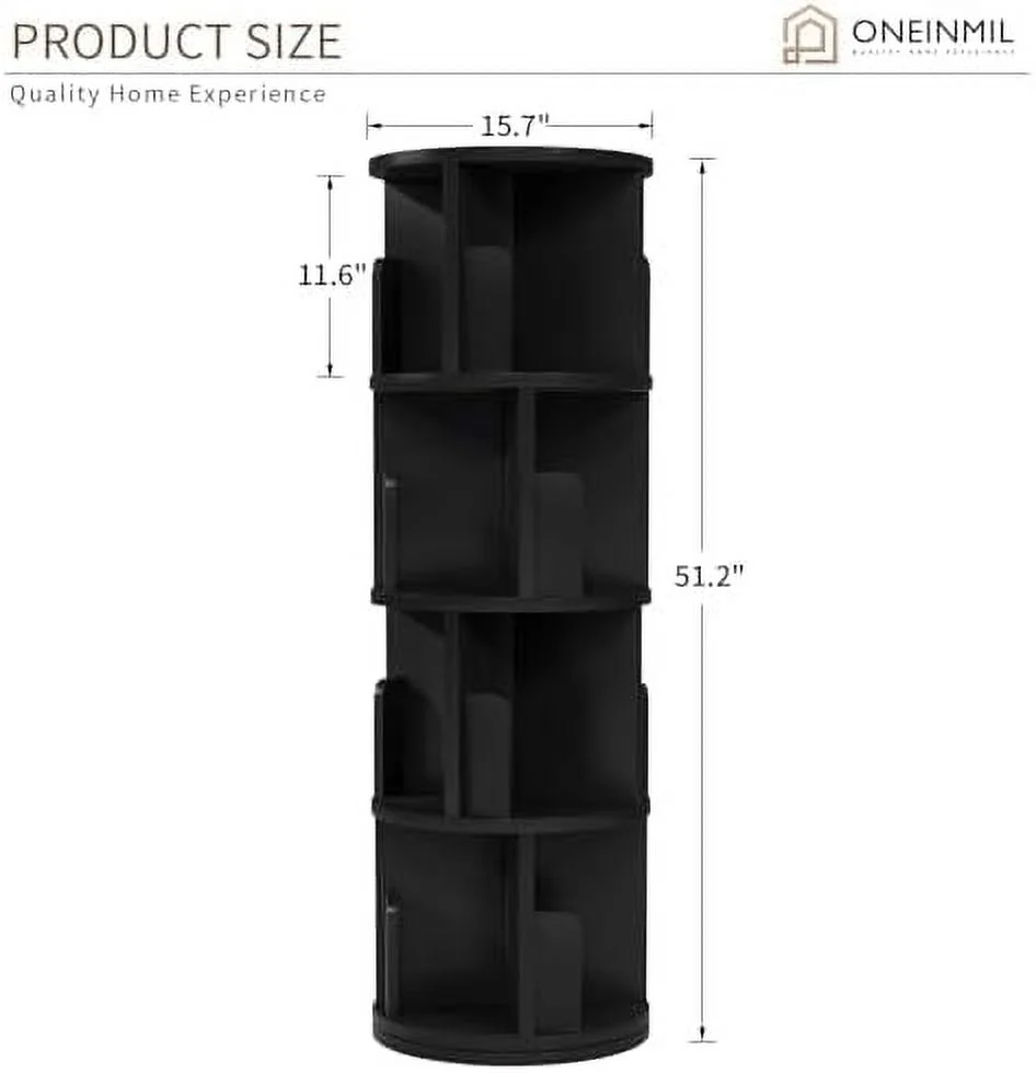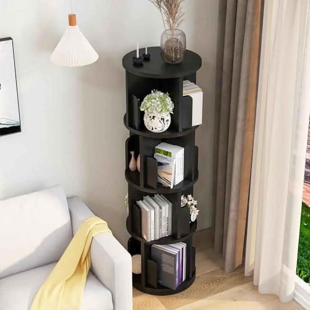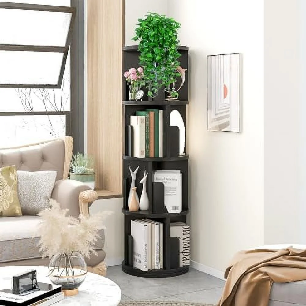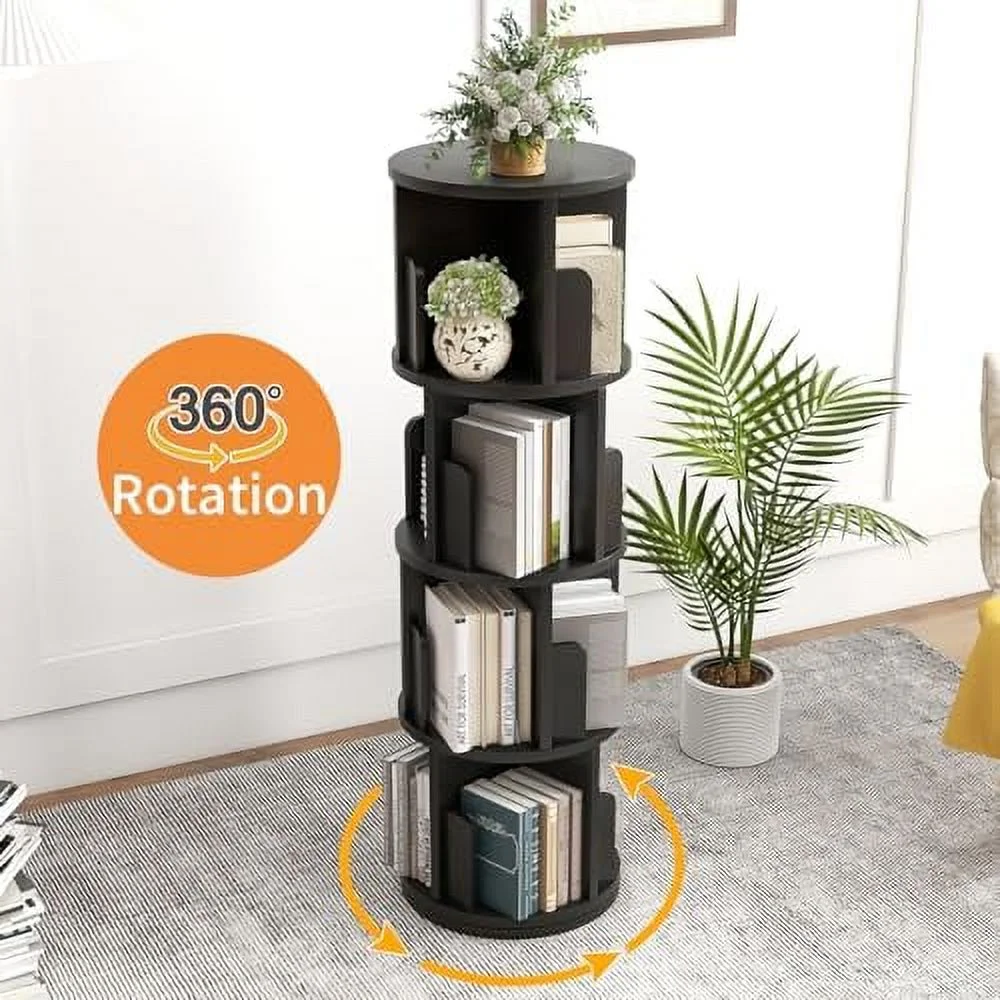 YPDCHB °Rotating Bookcase Small Corner Bookcase with Small Footprint 4 Tier Standing Bookshelf for & Adults Wood Bookshelf Designed for Bedroom Living Room,Black - Curated Treasures Market