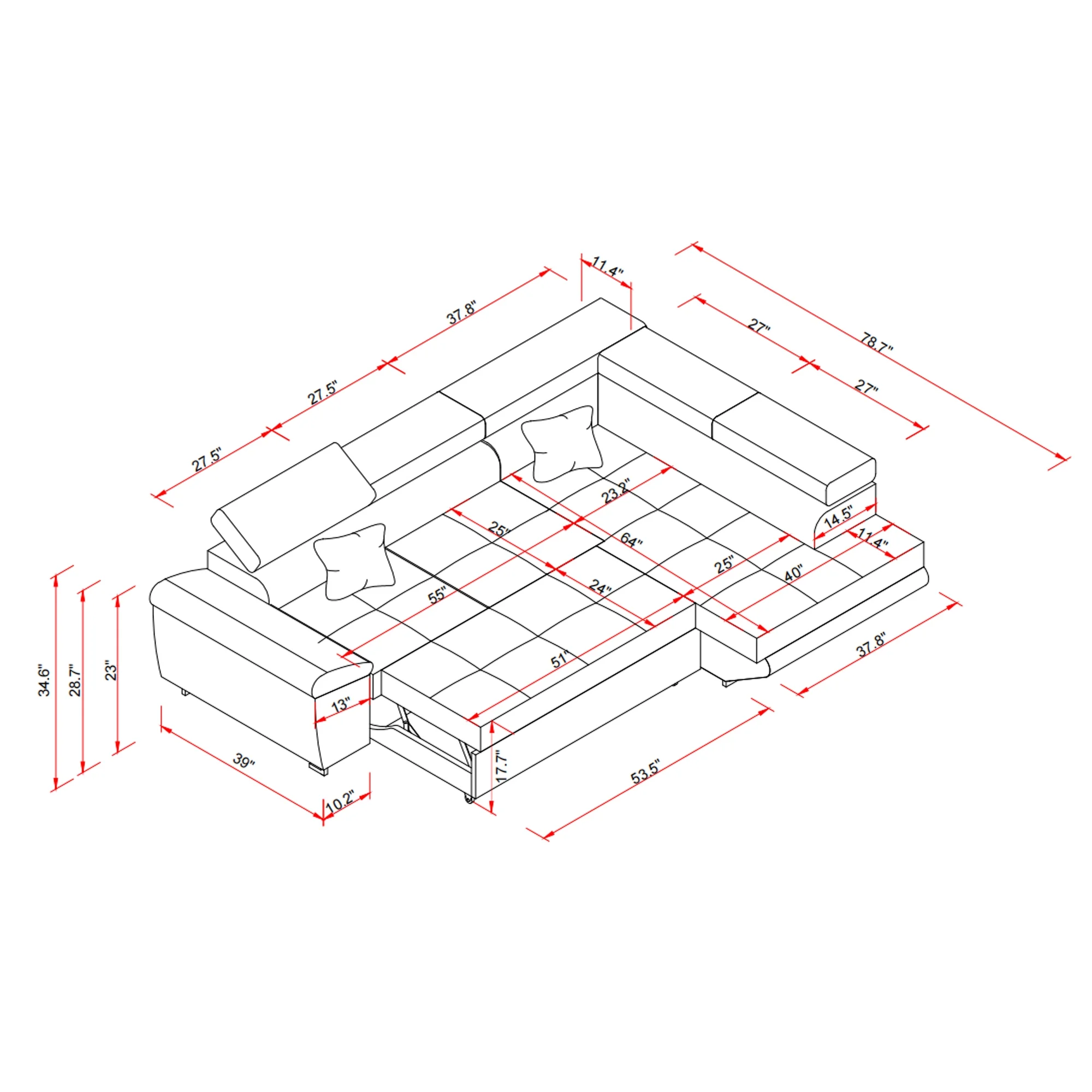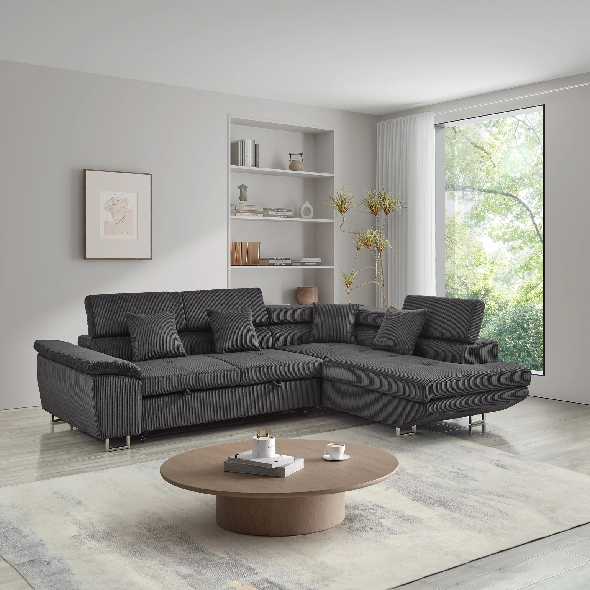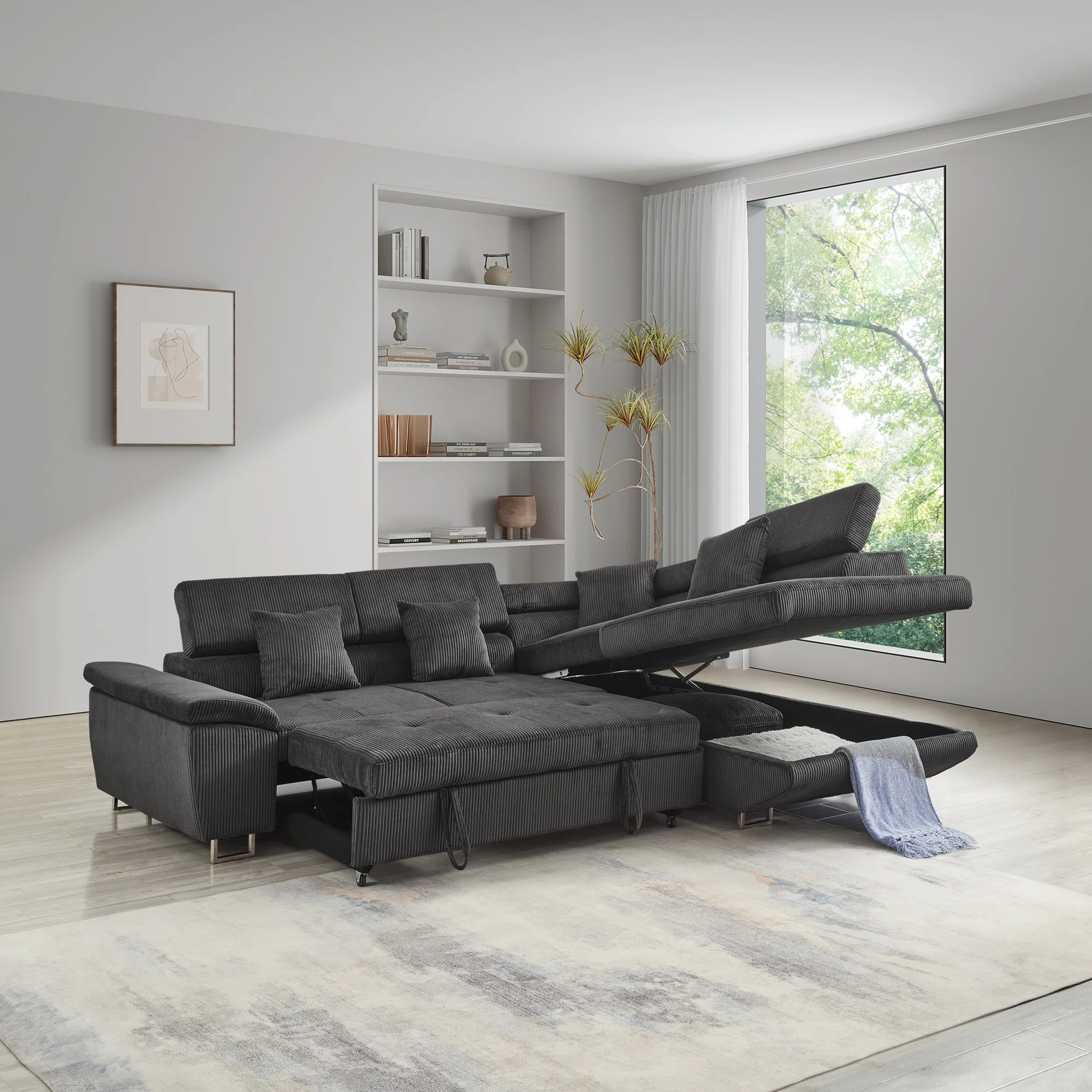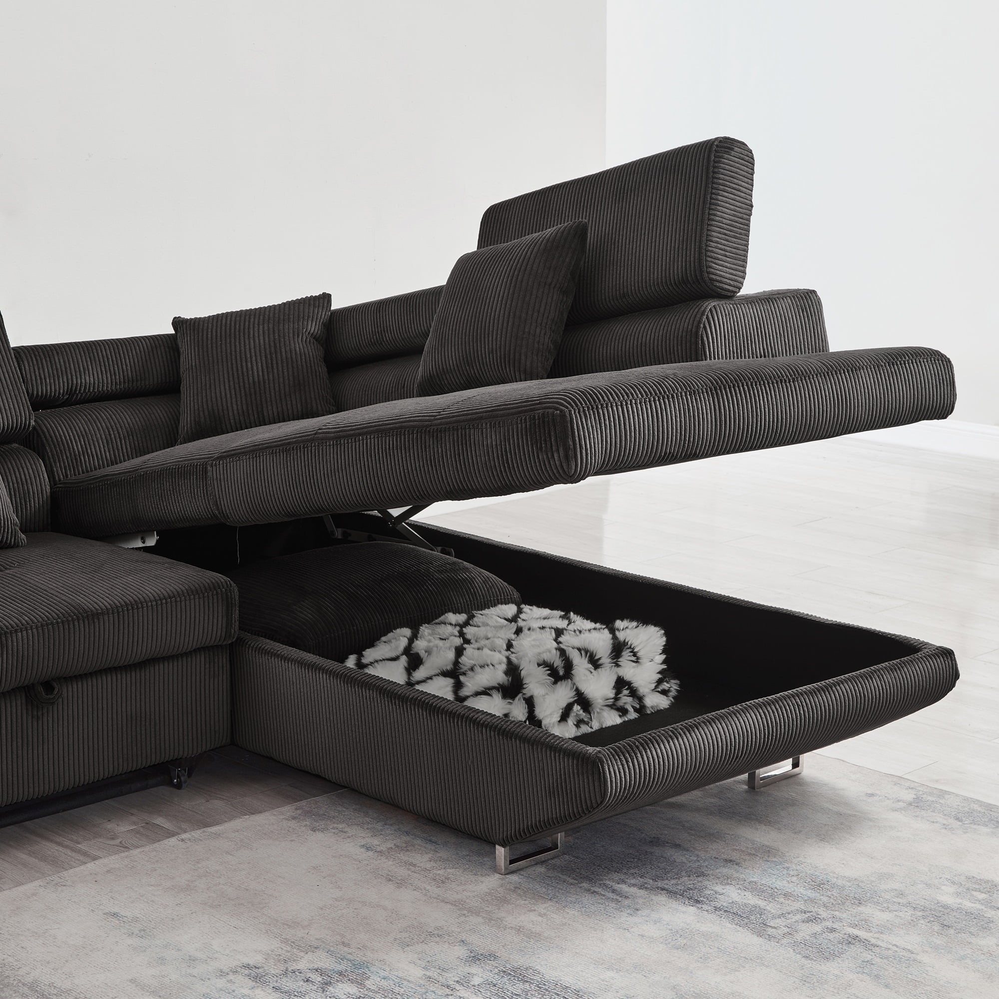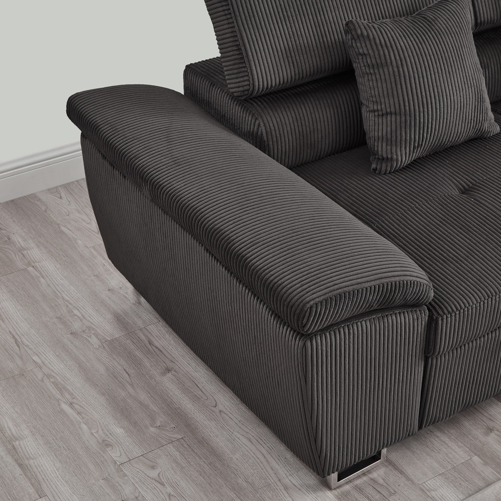 Noodeniya Corner Sofa Couch Pull-Out Bed with Storage Chaise, Convertible Sleeper Sofa Bed, L Shaped Corduroy Right Corner Couch for Living Room, Gray - Curated Treasures Market