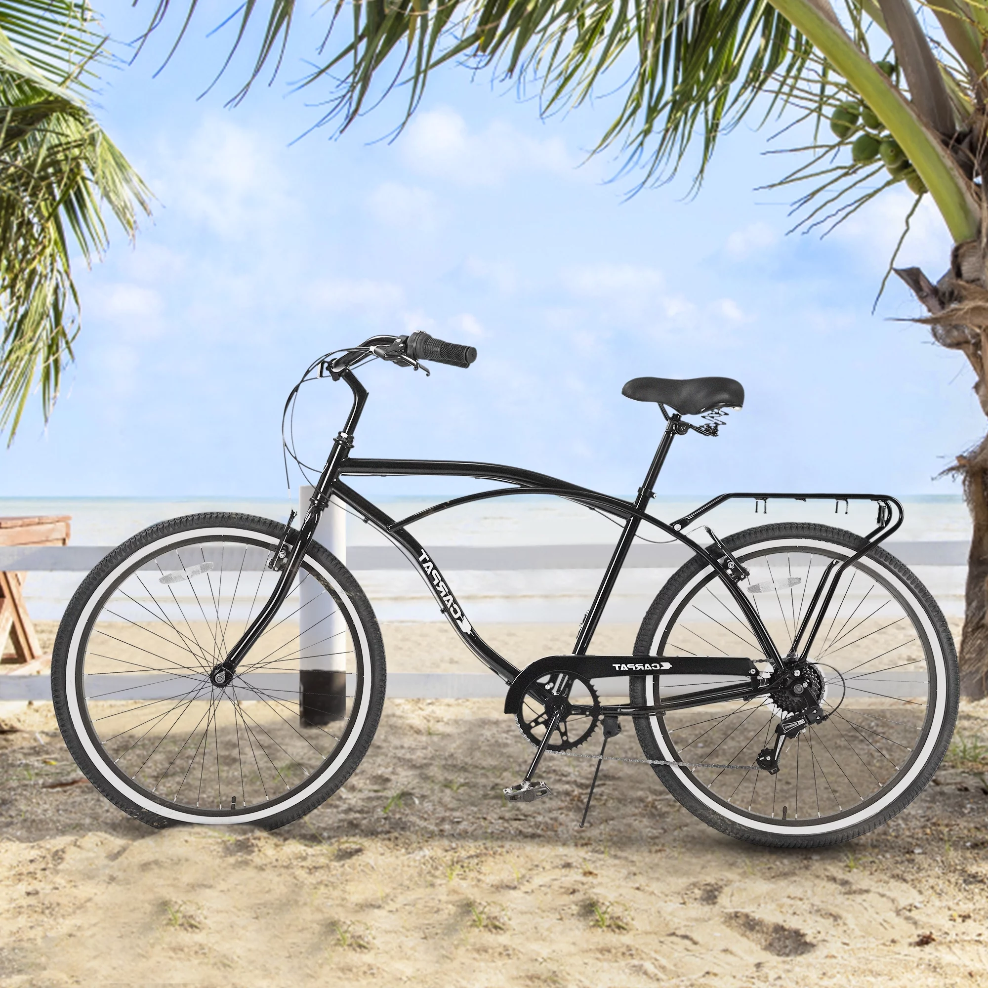 26 inch Cruiser Bike for Men Women, Adult Beach Cruiser Bike with 7 Speed, Black