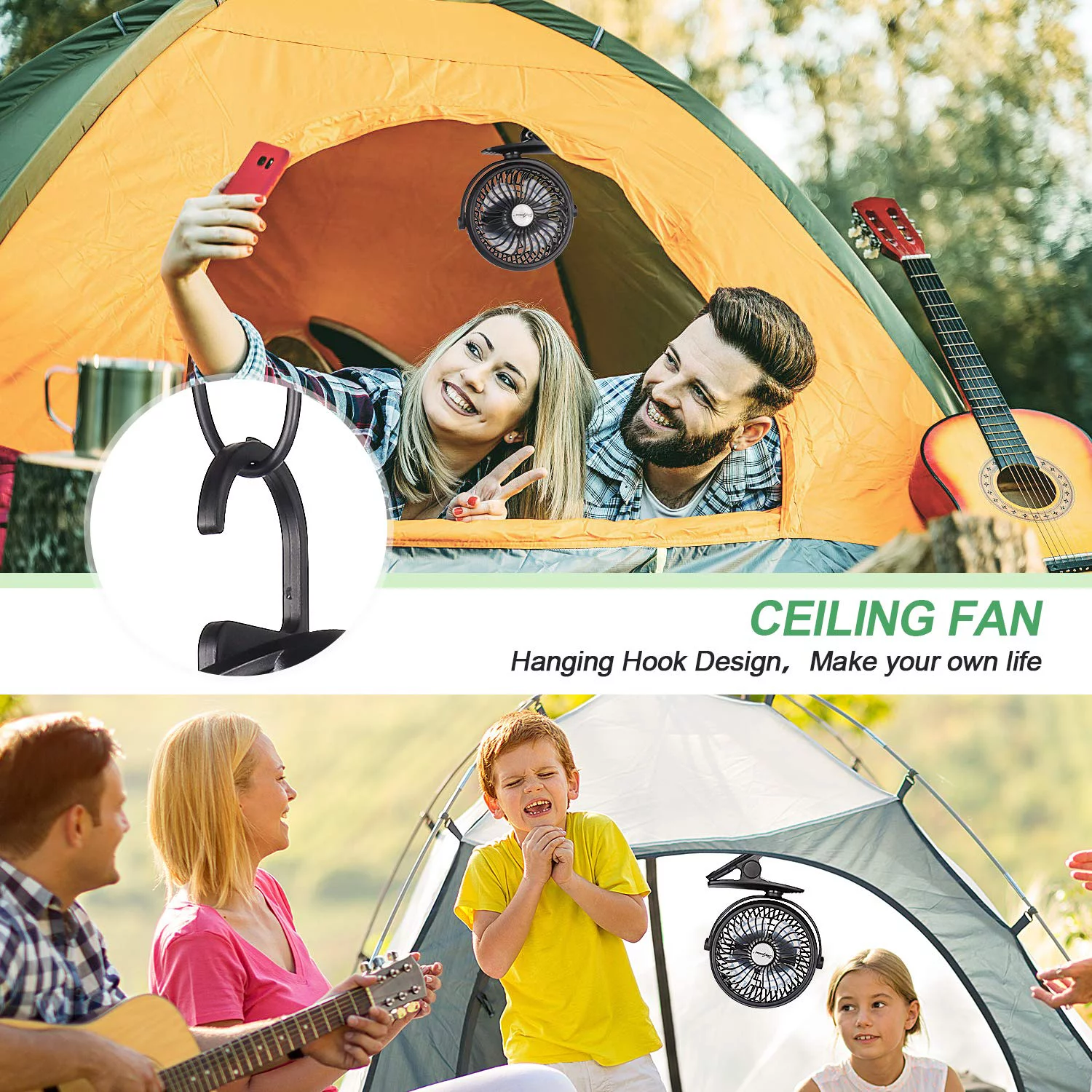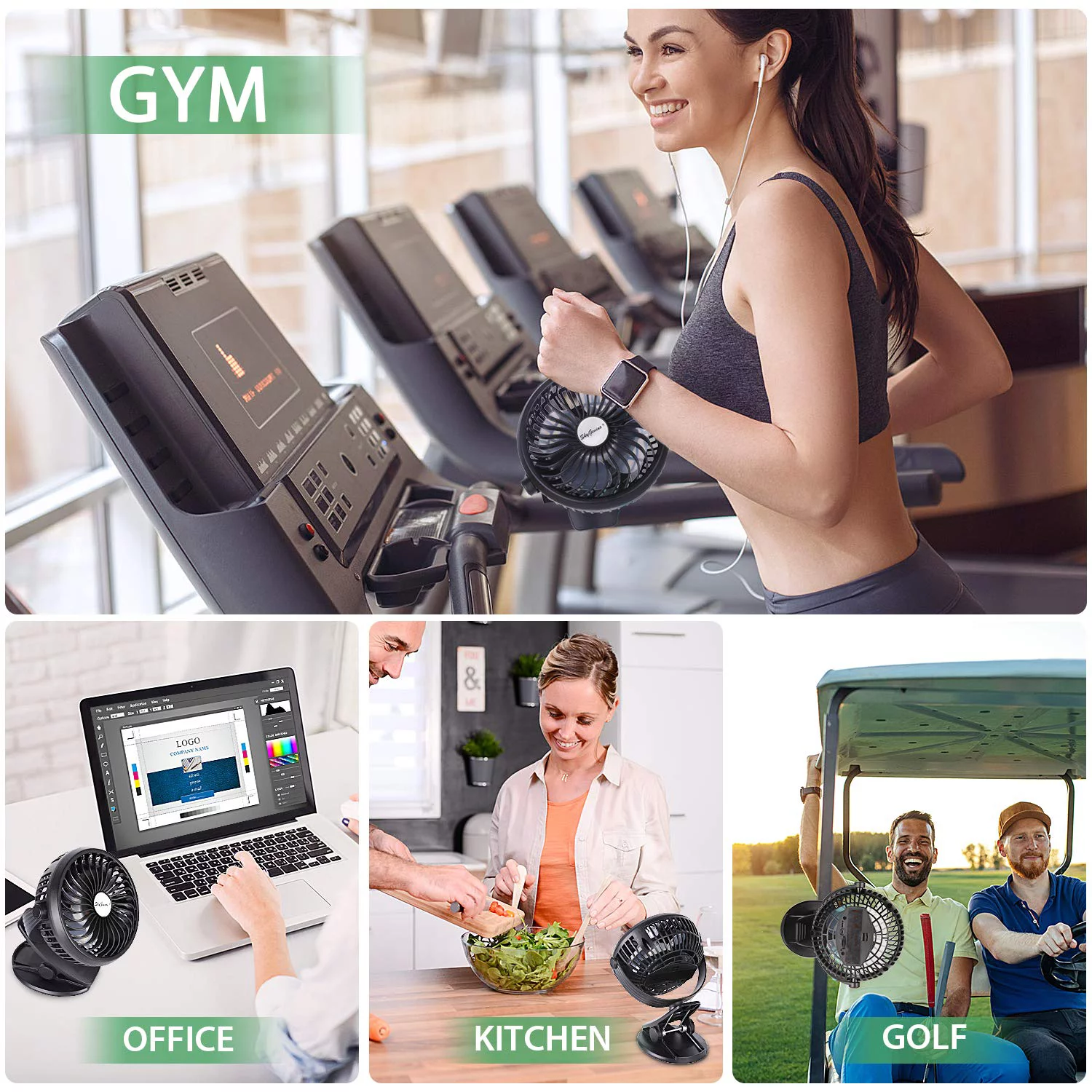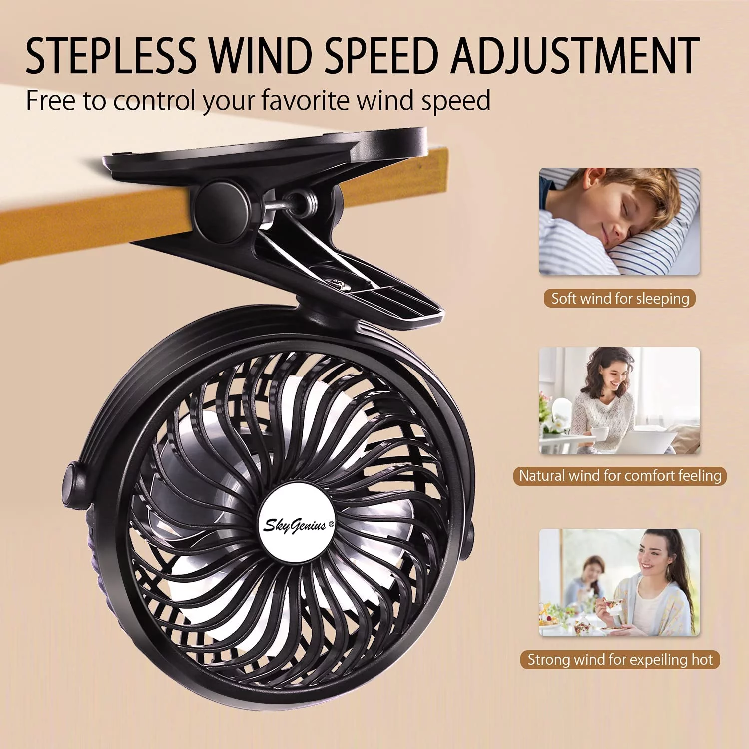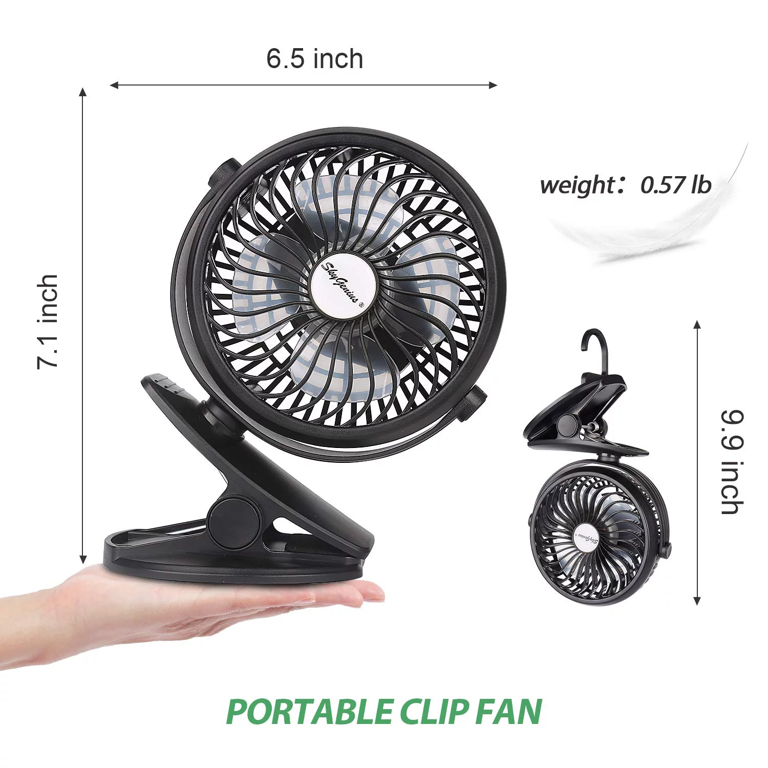 SkyGenius Portable Clip on Fan Battery Operated Fan with Hanging Hook Rechargeable Stroller Fan, Black