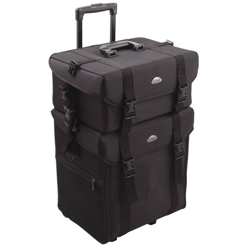 Sunrise 26.5 inch 2-in-1 Nylon Soft-Sided Pro Rolling Makeup Case with Drawers and Brush Holder in Black - Megean