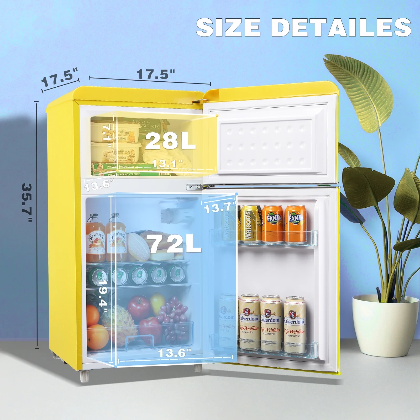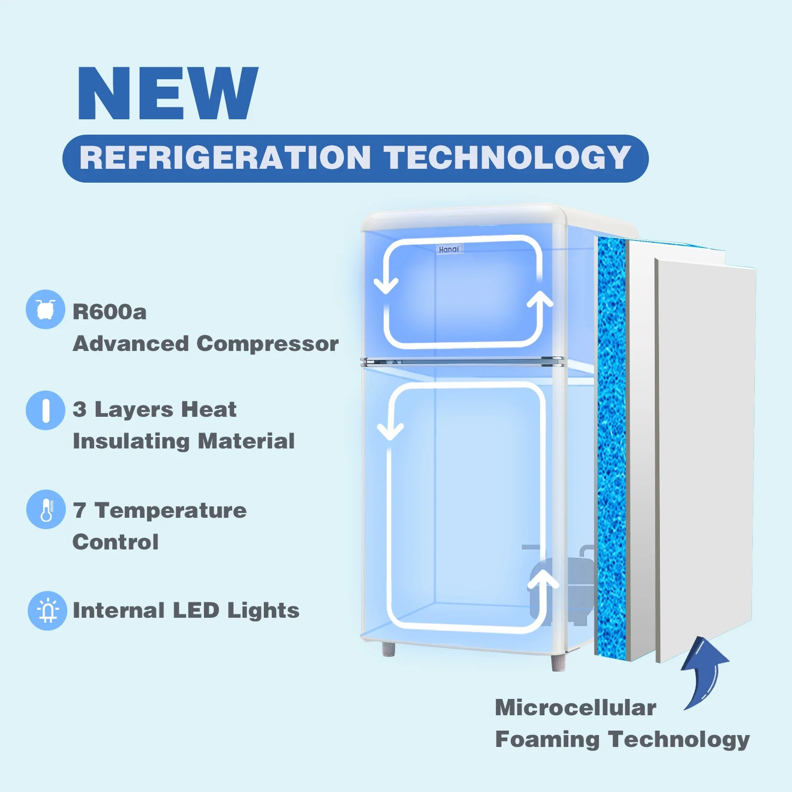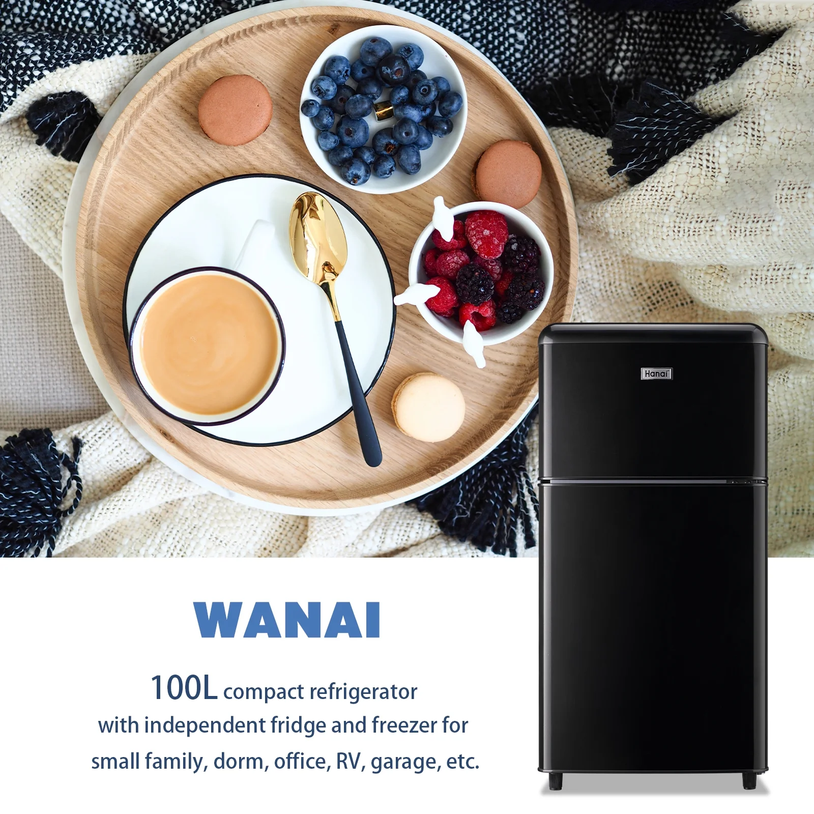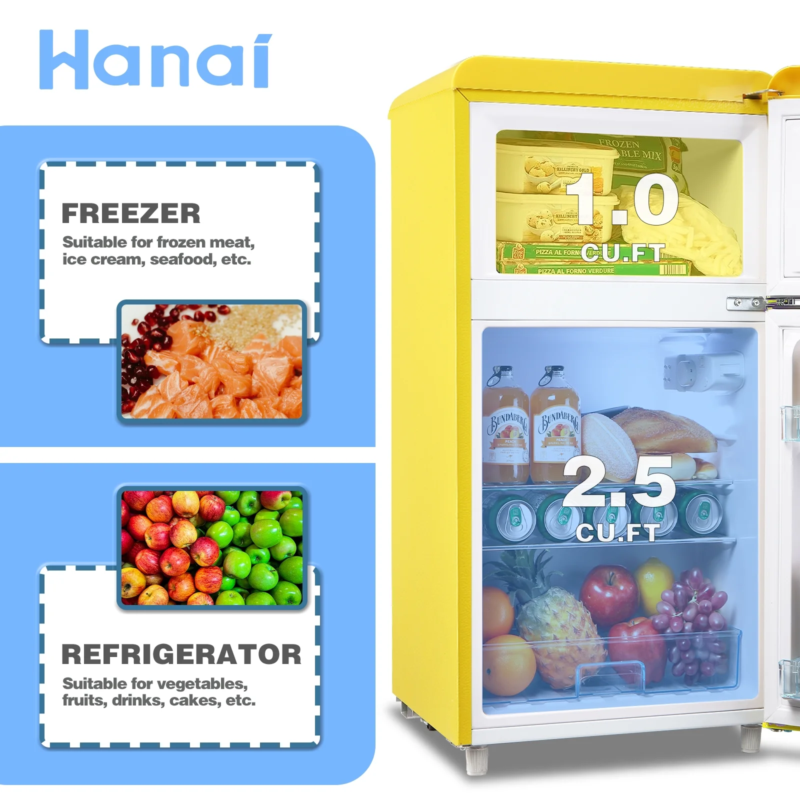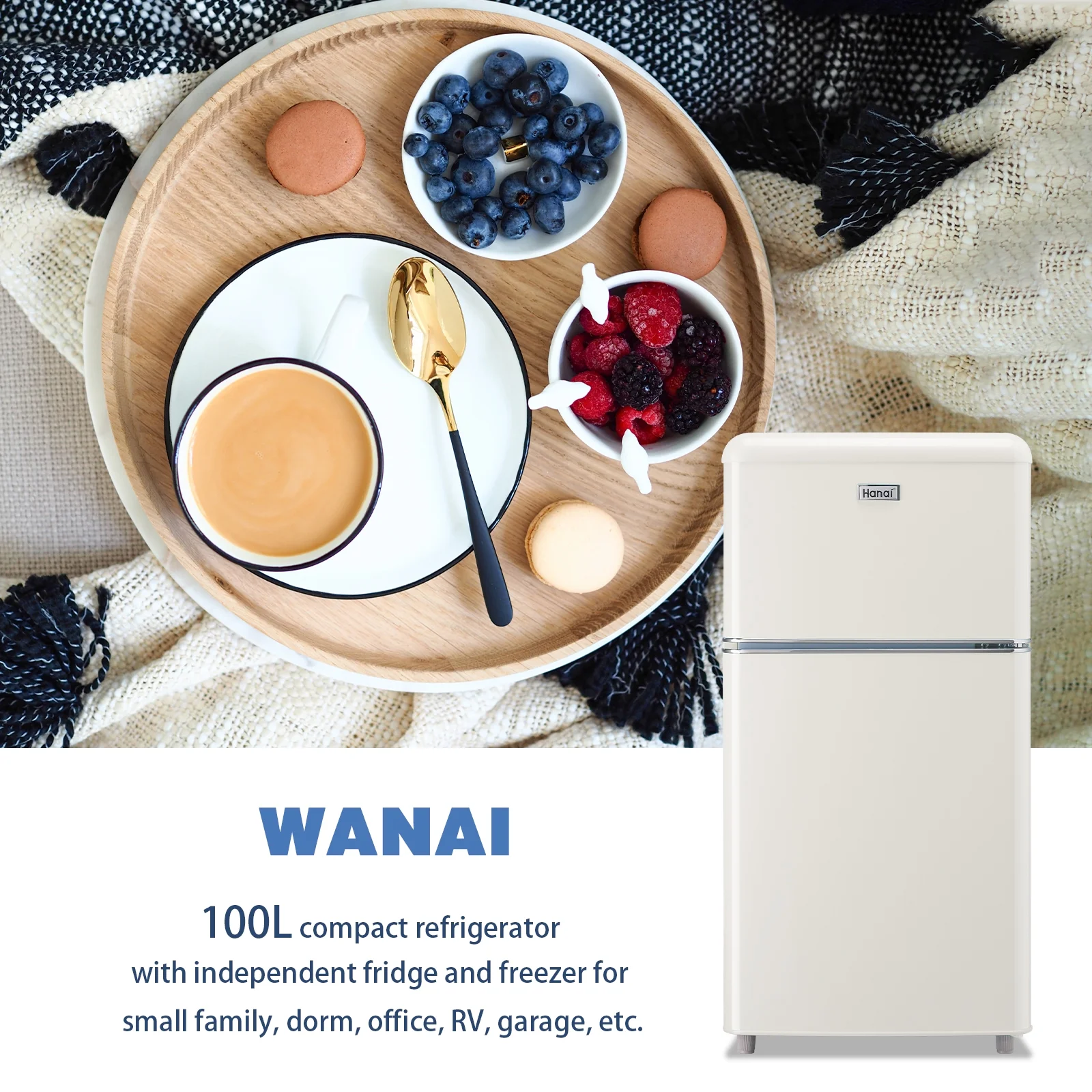 WANAI Mini Fridge with Freezer 3.5 Cu.ft Refrigerator 7 Level Thermostat 2 Door Desgin Blue