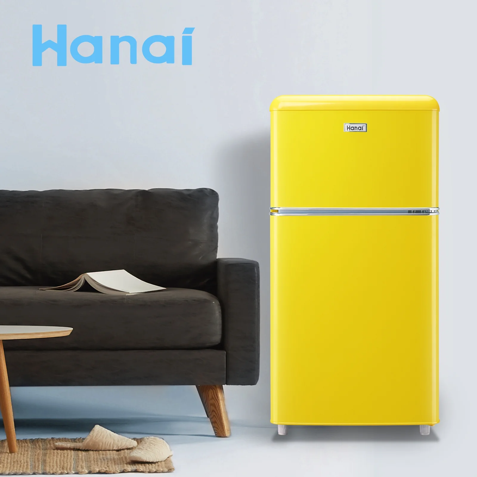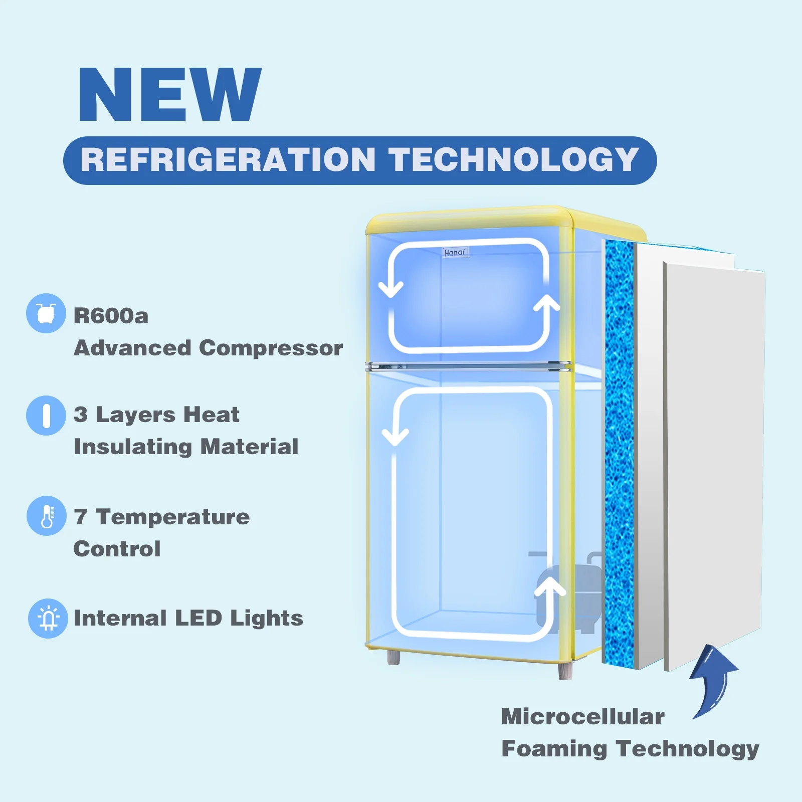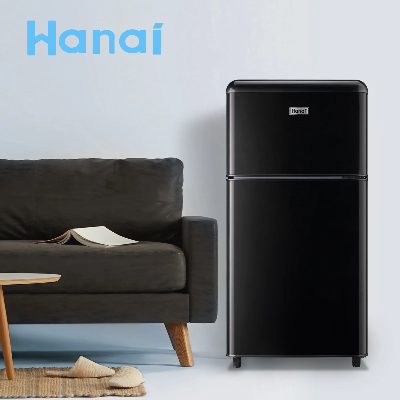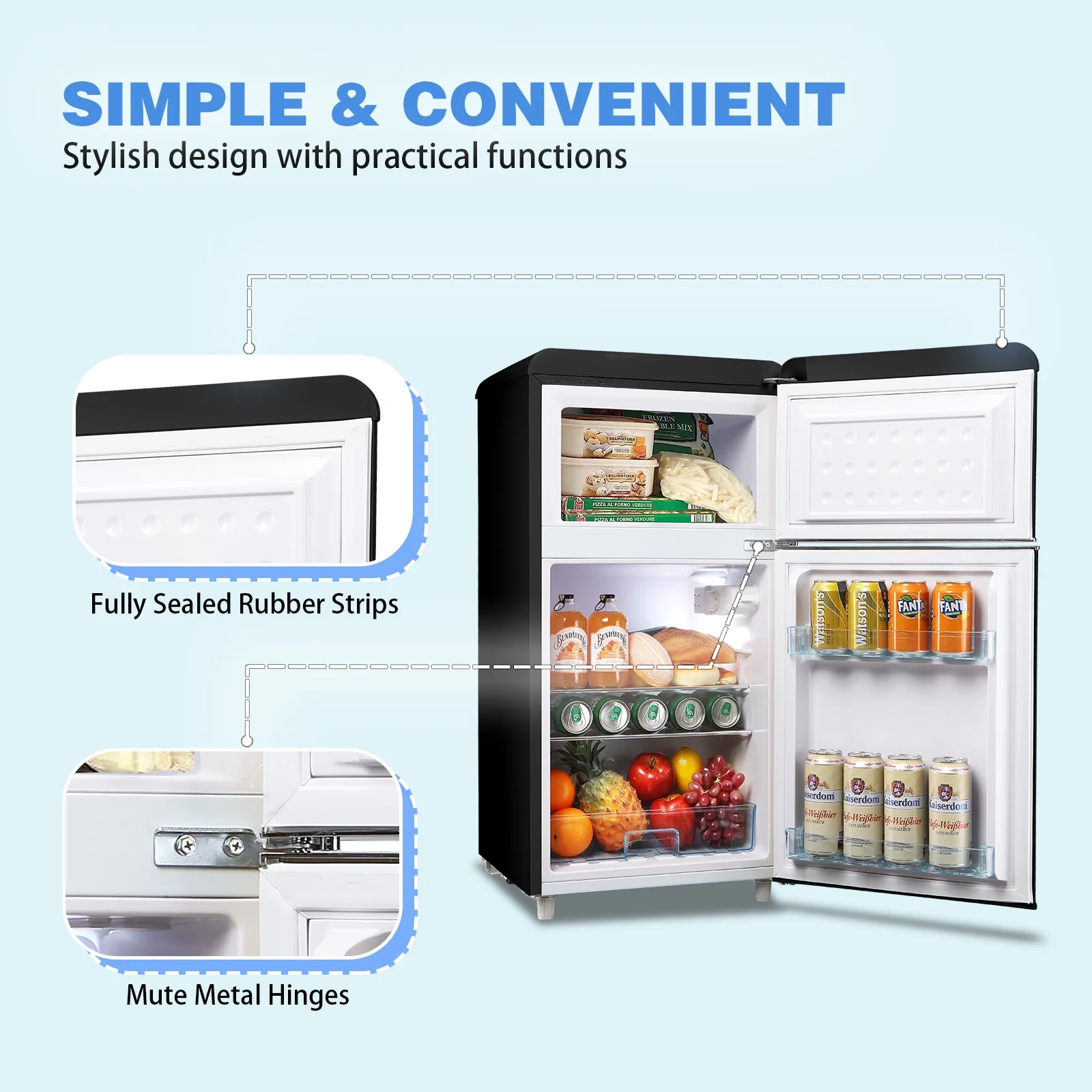 WANAI Mini Fridge with Freezer 3.5 Cu.ft Refrigerator 7 Level Thermostat 2 Door Desgin Blue