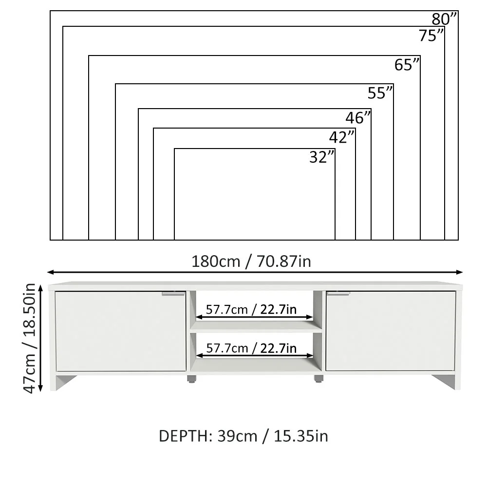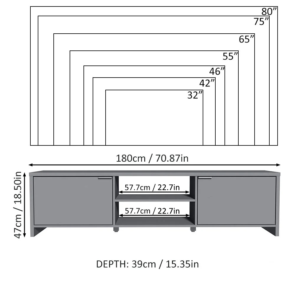 Madesa TV Stand, Entertainment Center, Console Table for TVs up to 80 Inches, with Wire Management and Storage Space - Black