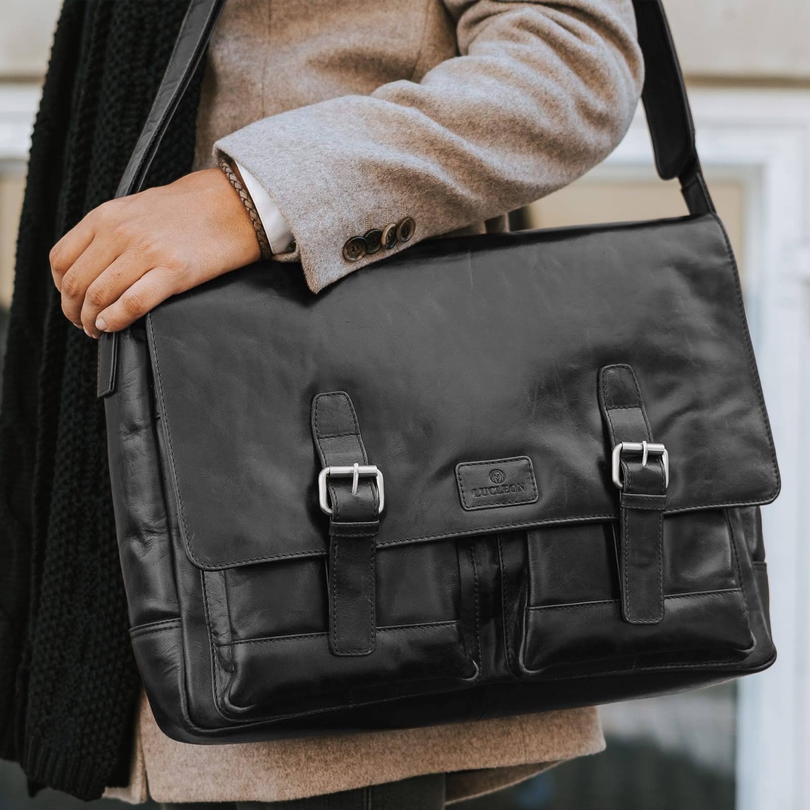 Black Jasper Messenger Leather Bag - Lucleon - Men - Megean