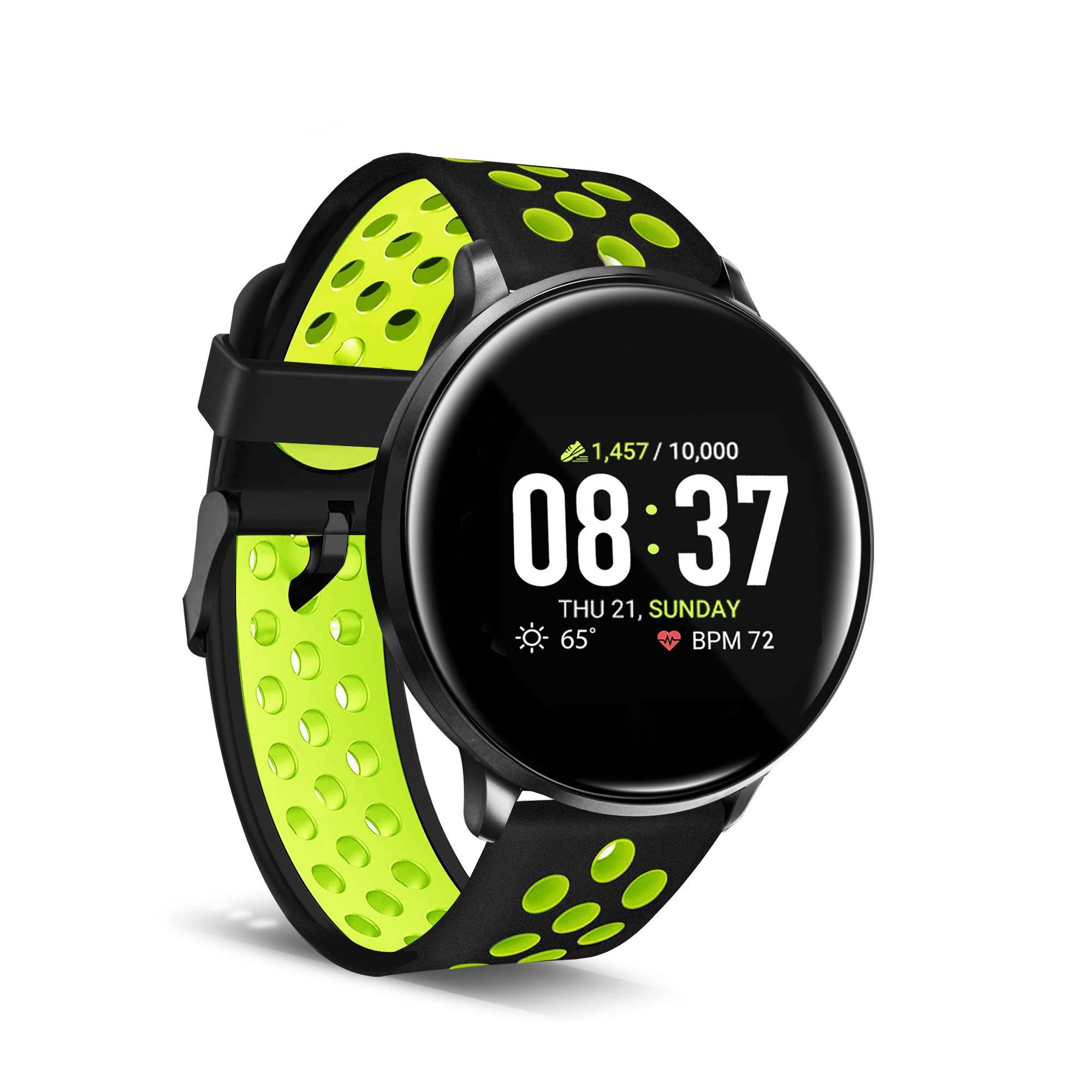 iTouch Sport Smartwatch: Black Case with Black/Lime Perforated Strap - Megean