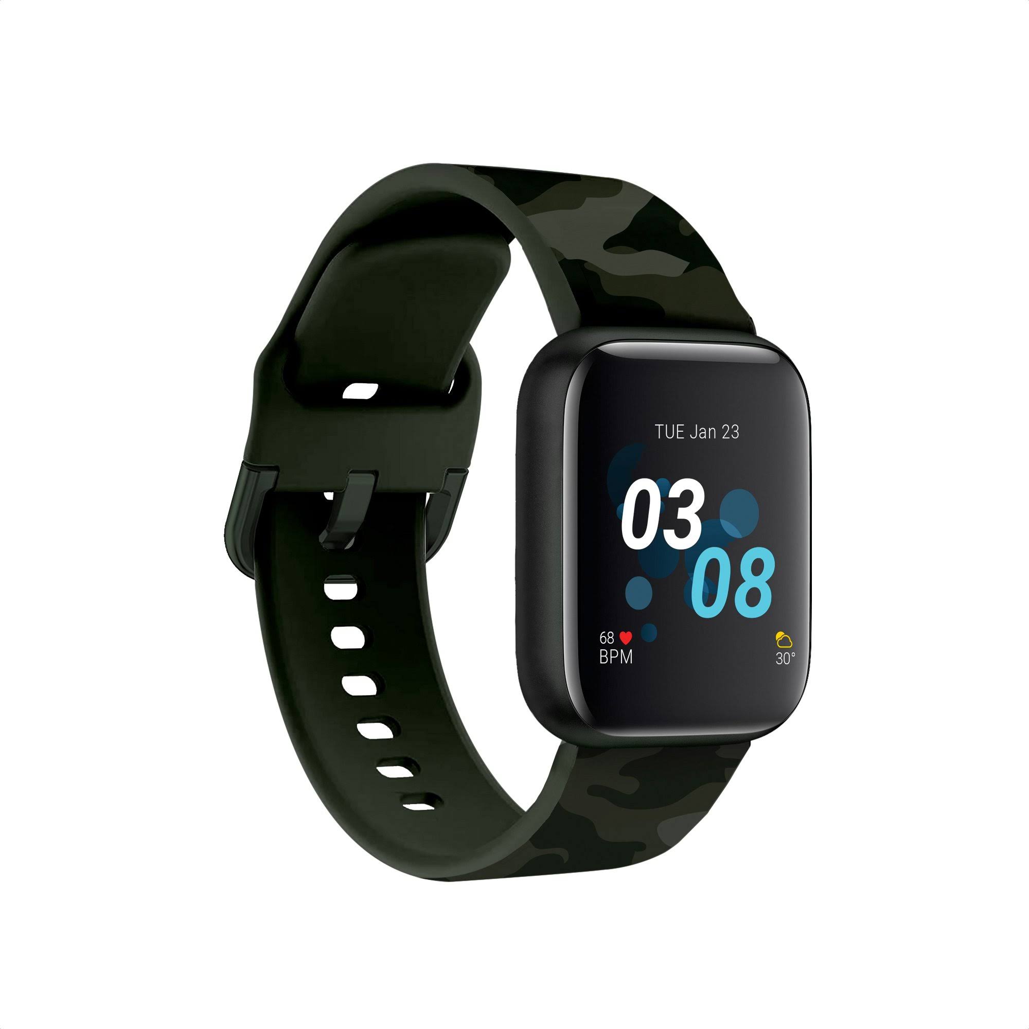 iTouch Air 3 Smartwatch: Black Case with Green Camouflage Strap - Megean
