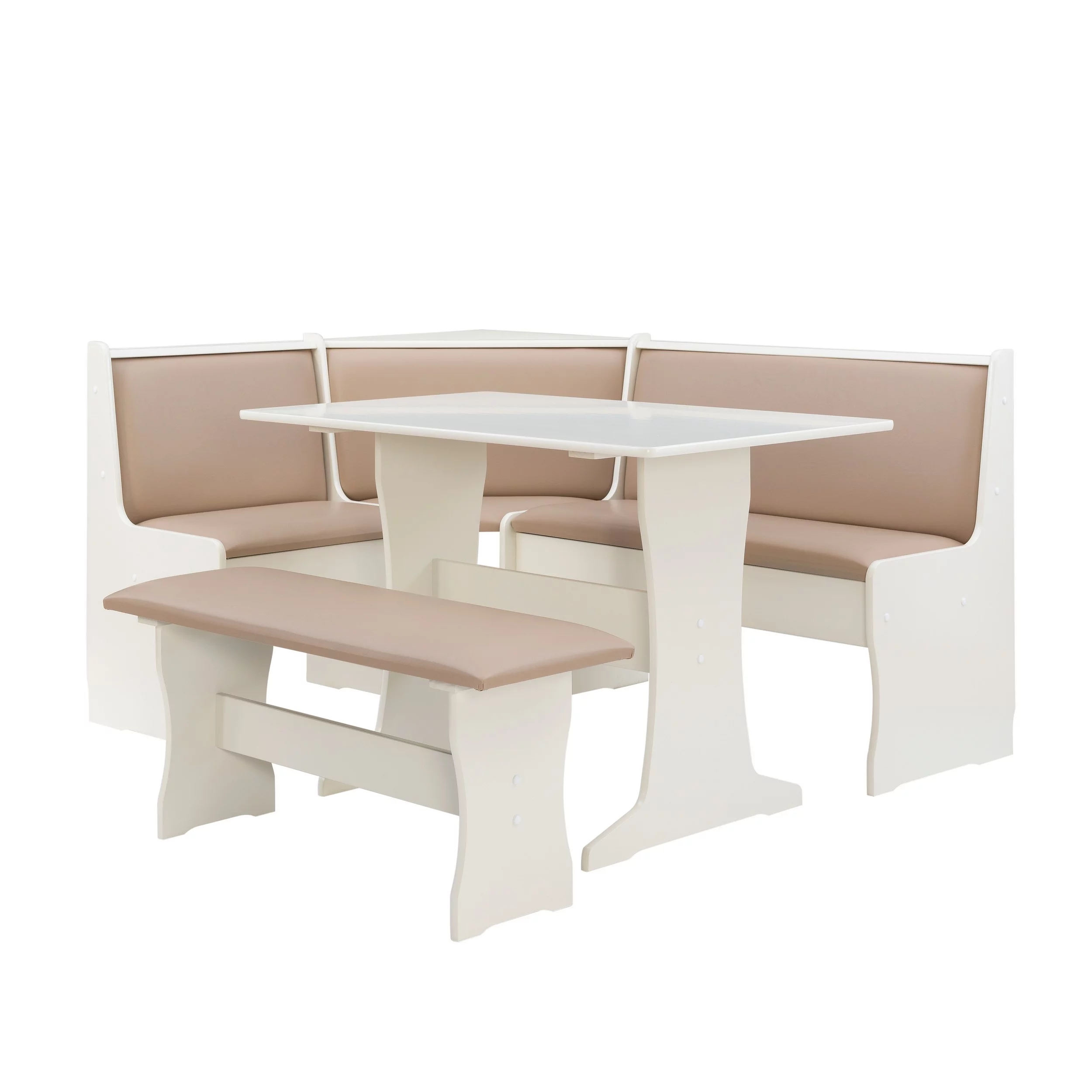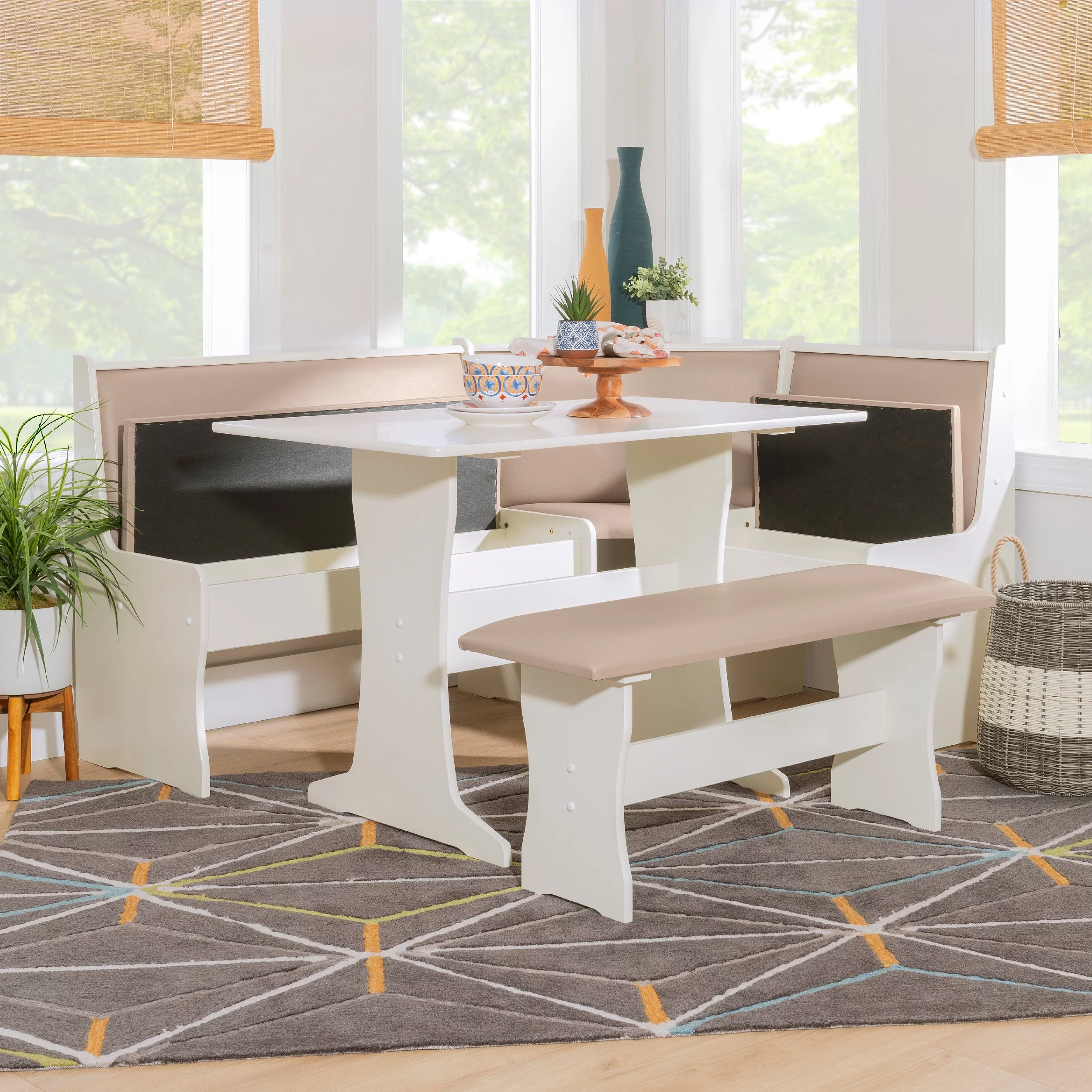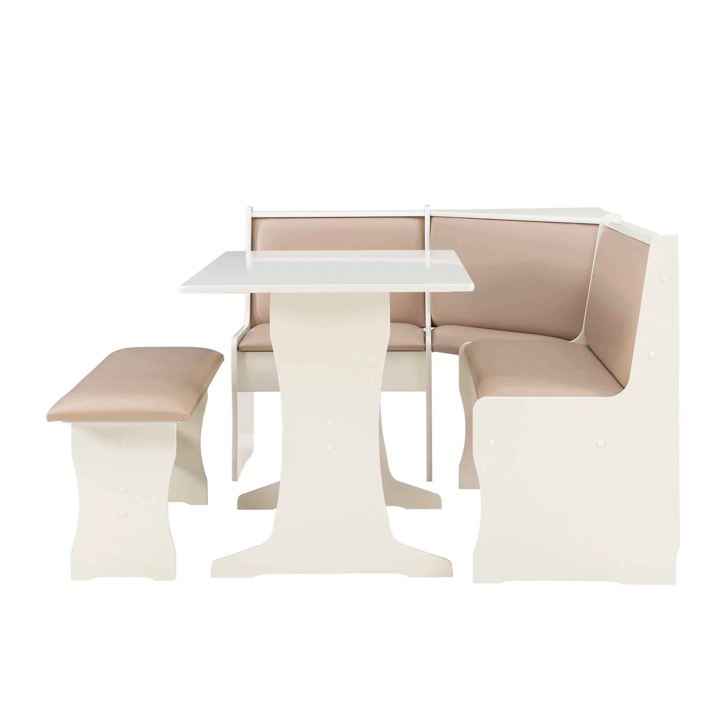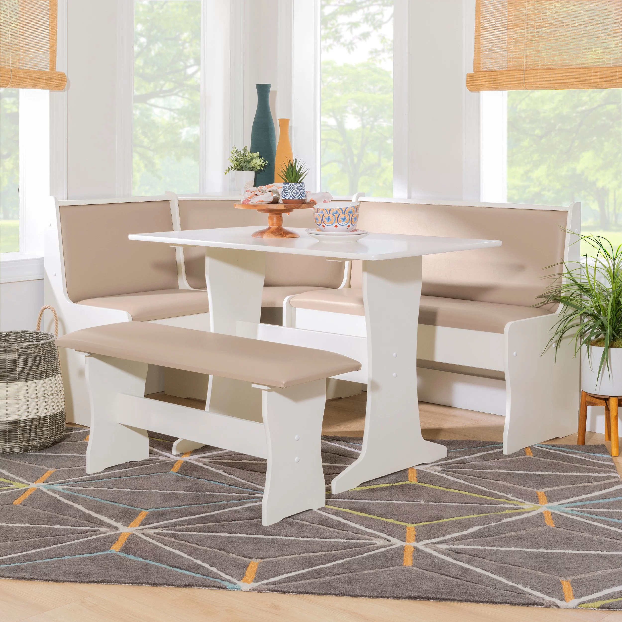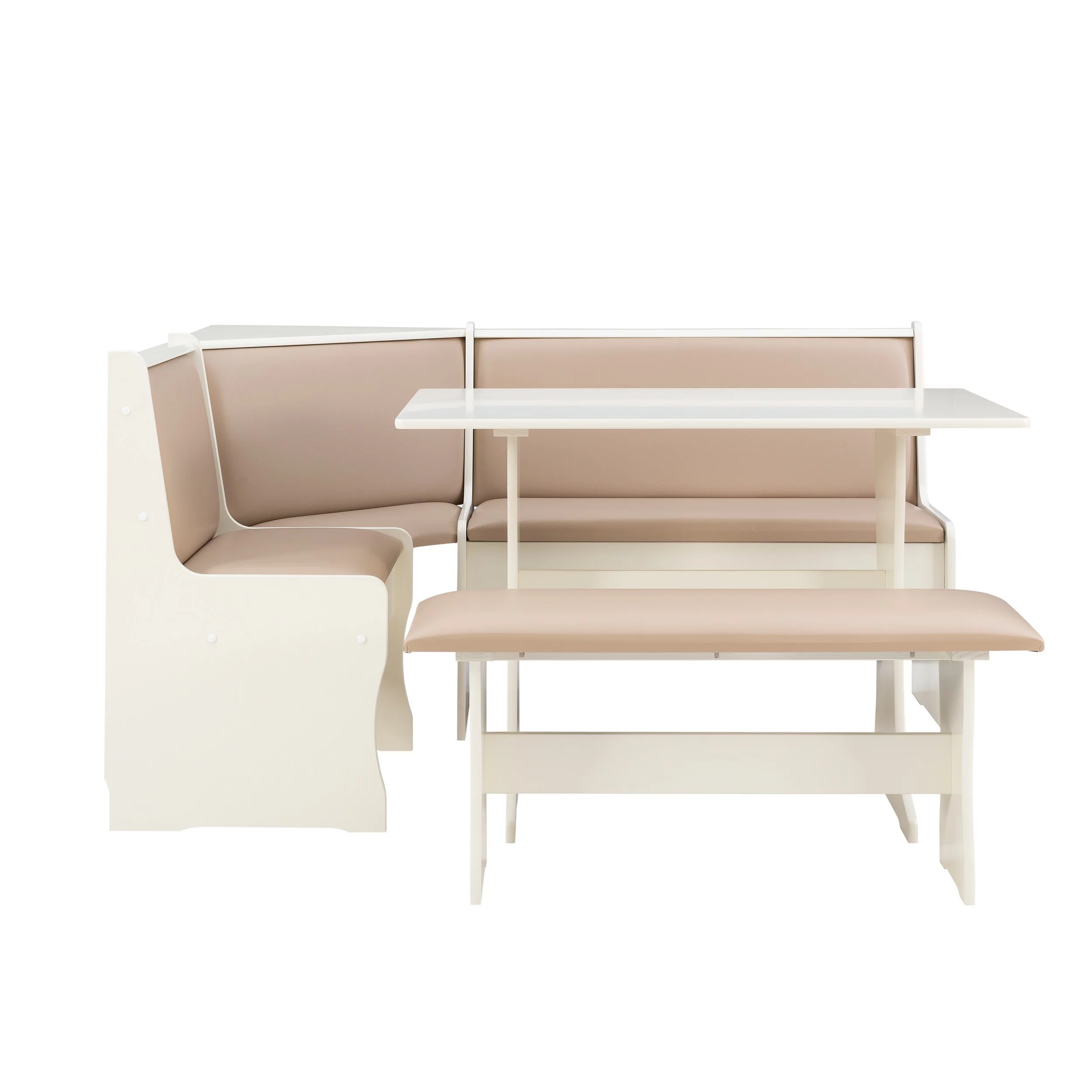 Linon Stella Dining Nook, Table, and Bench Set with Storage, Seats 5, Tan/Tan