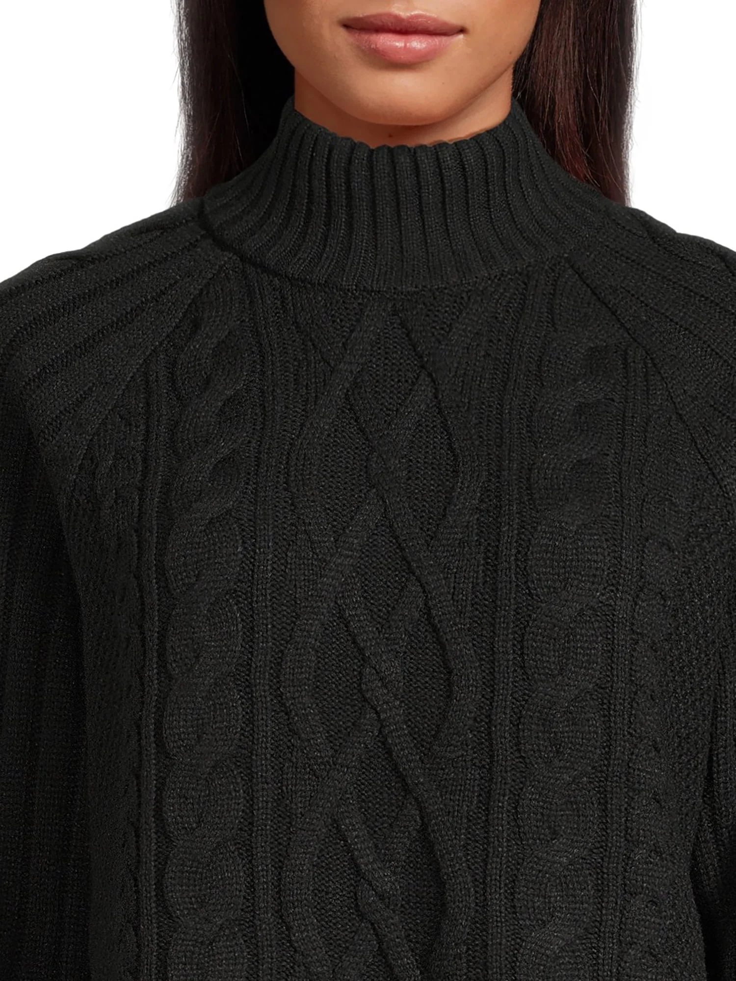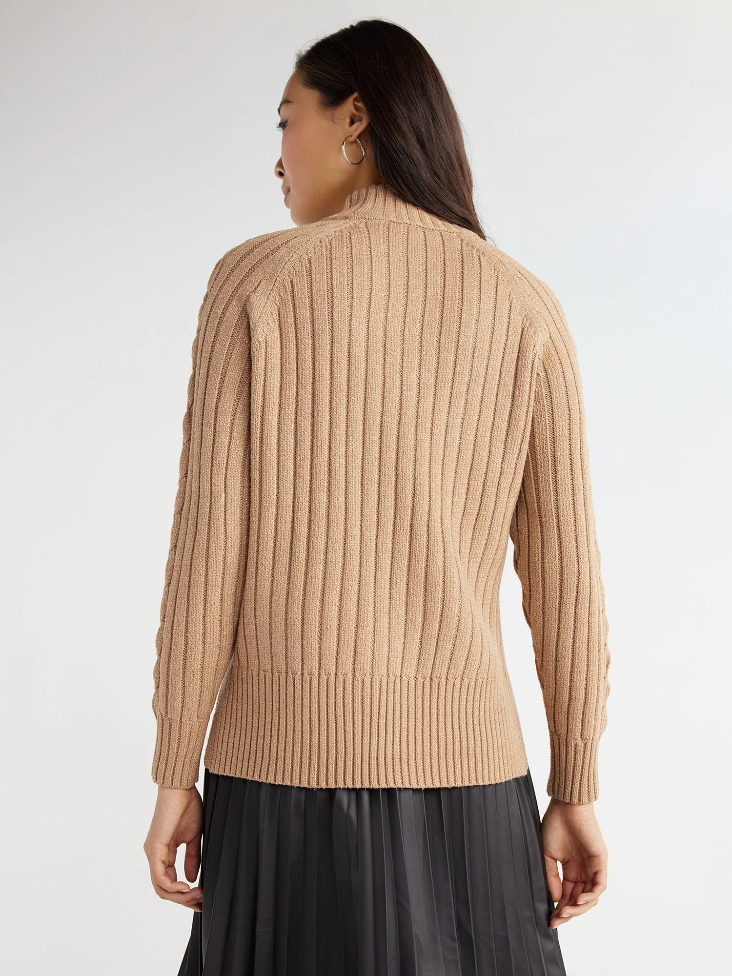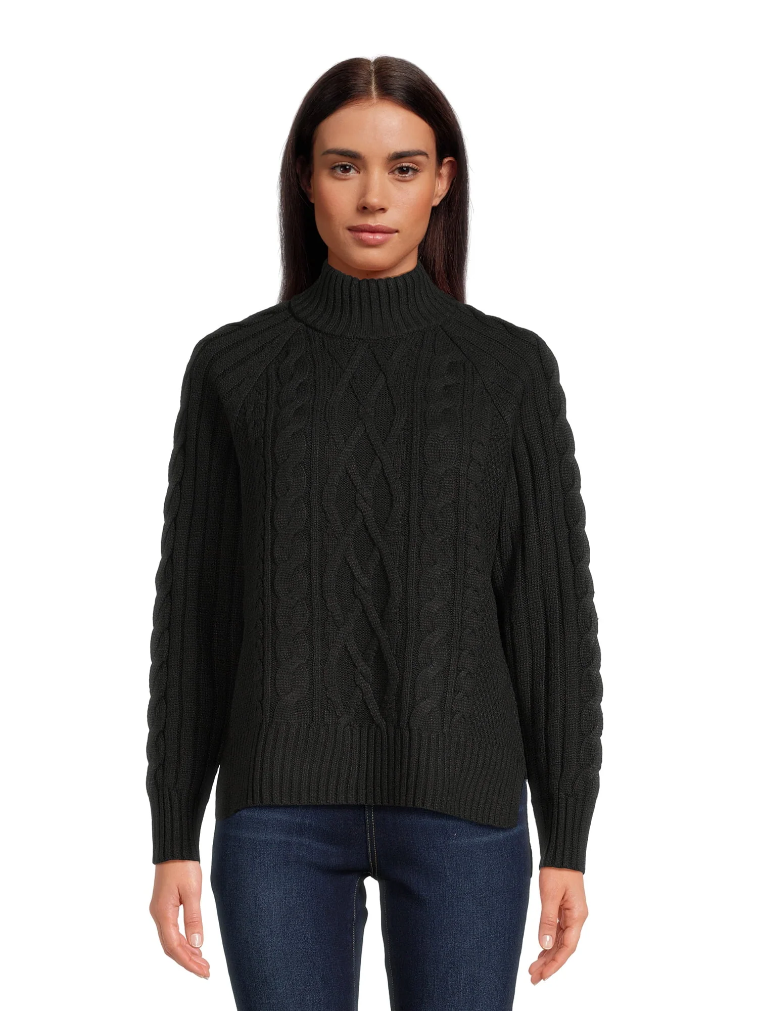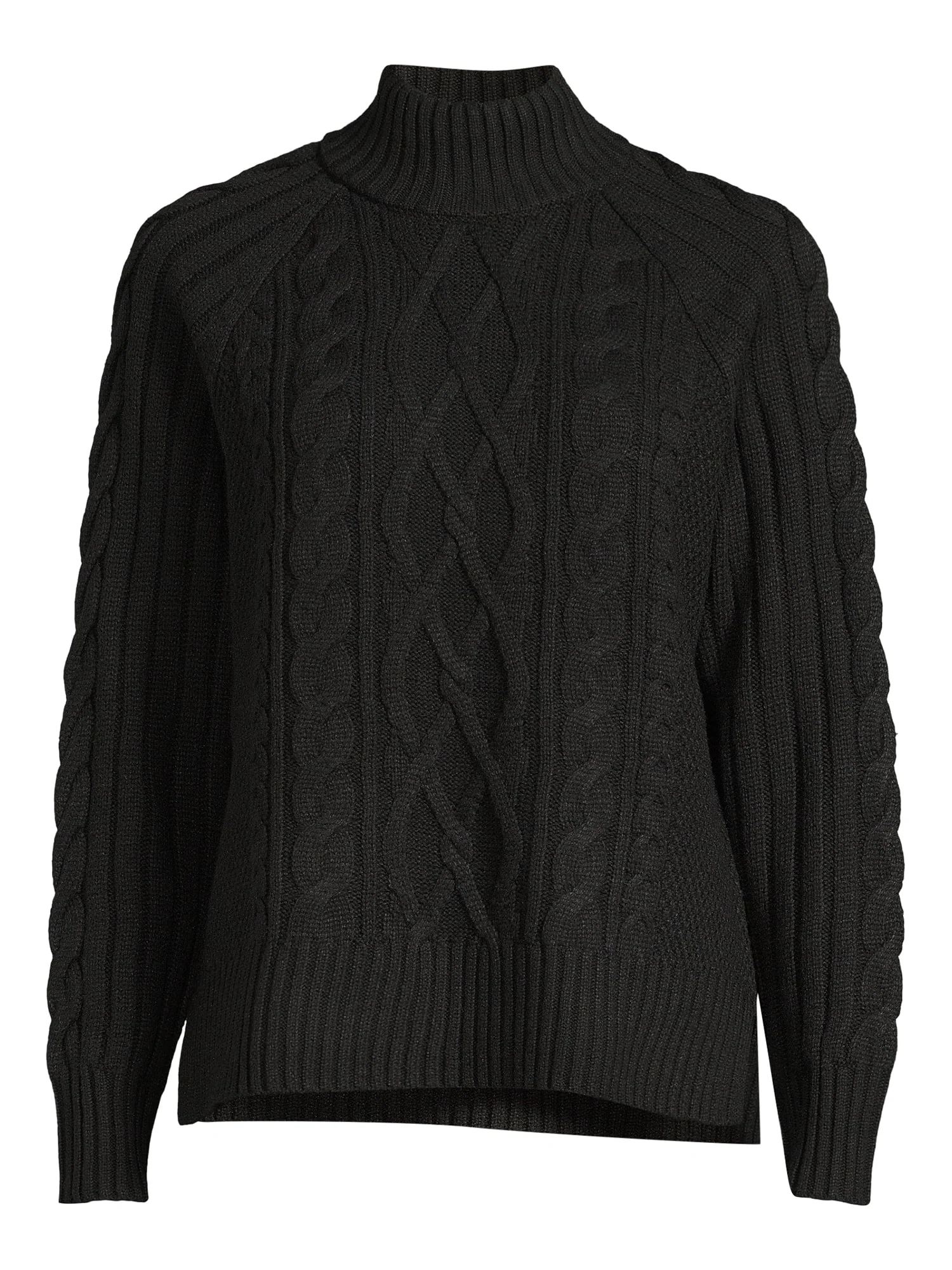 Time and Tru Women's Mock Neck Cable Pullover Sweater, Midweight, Sizes S-XXXL