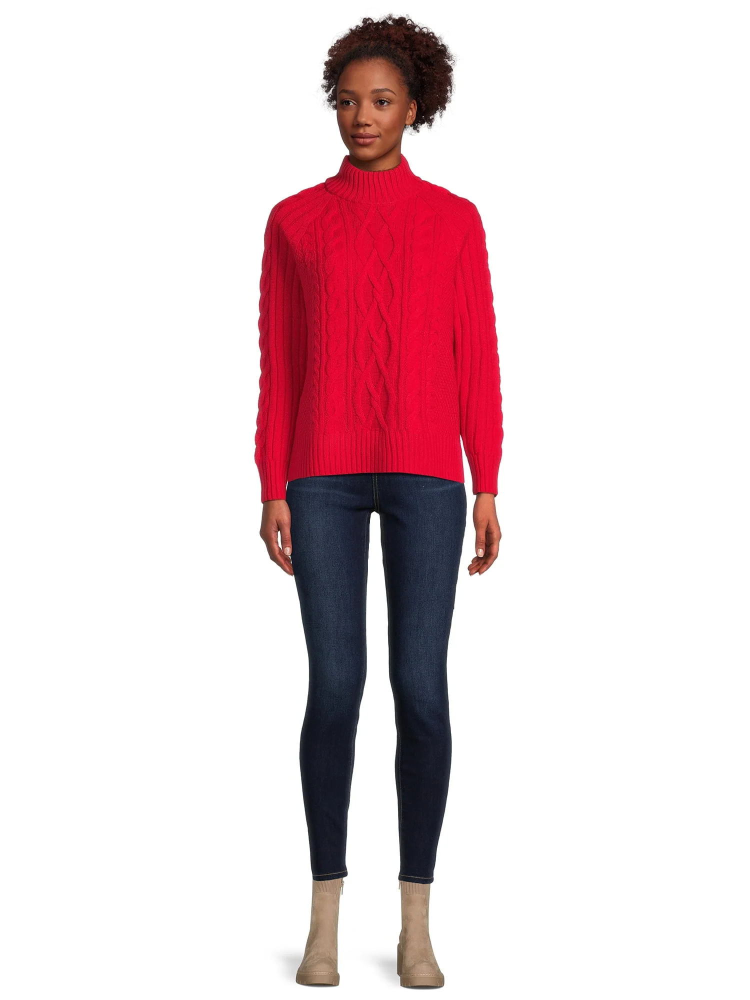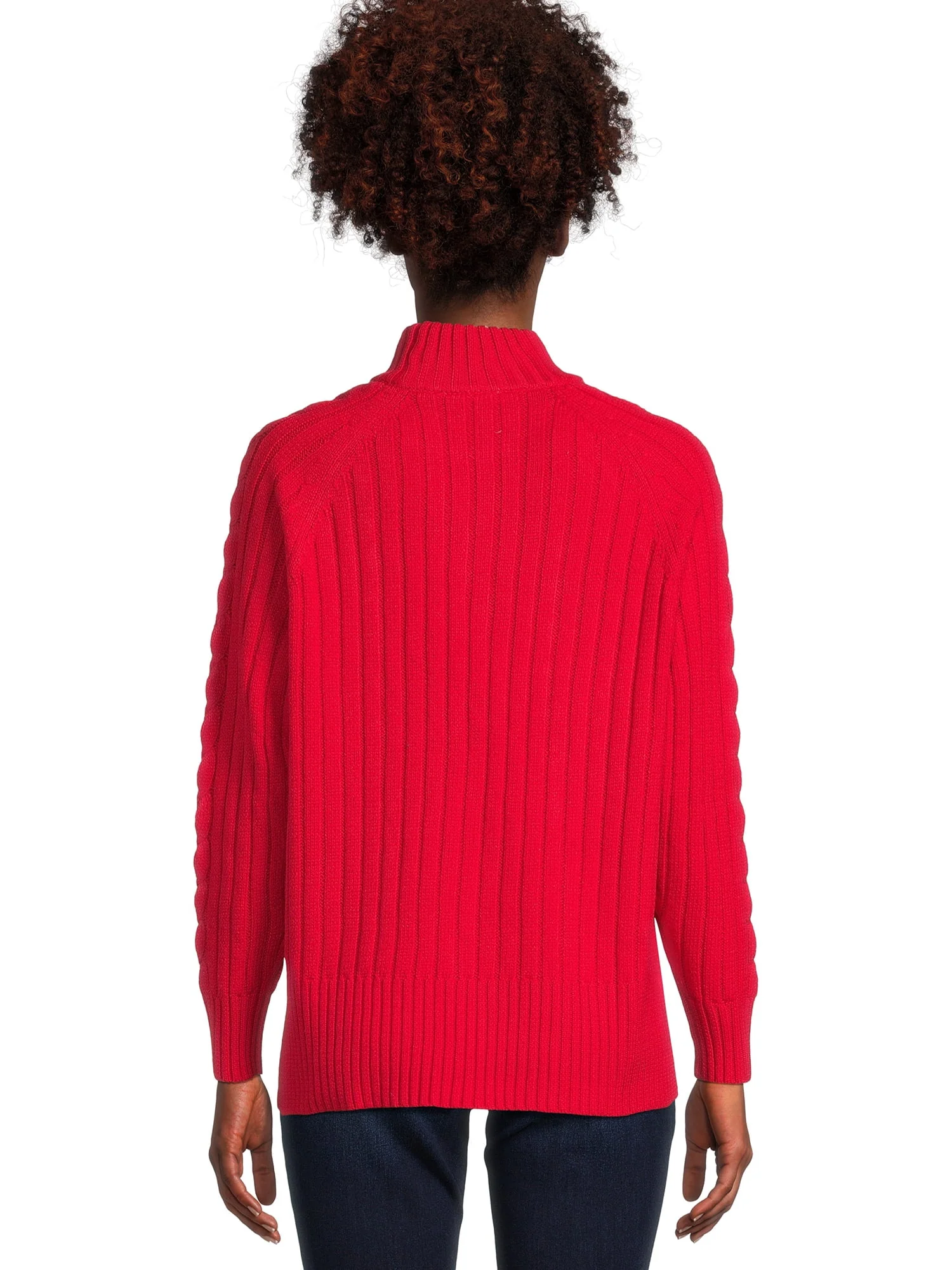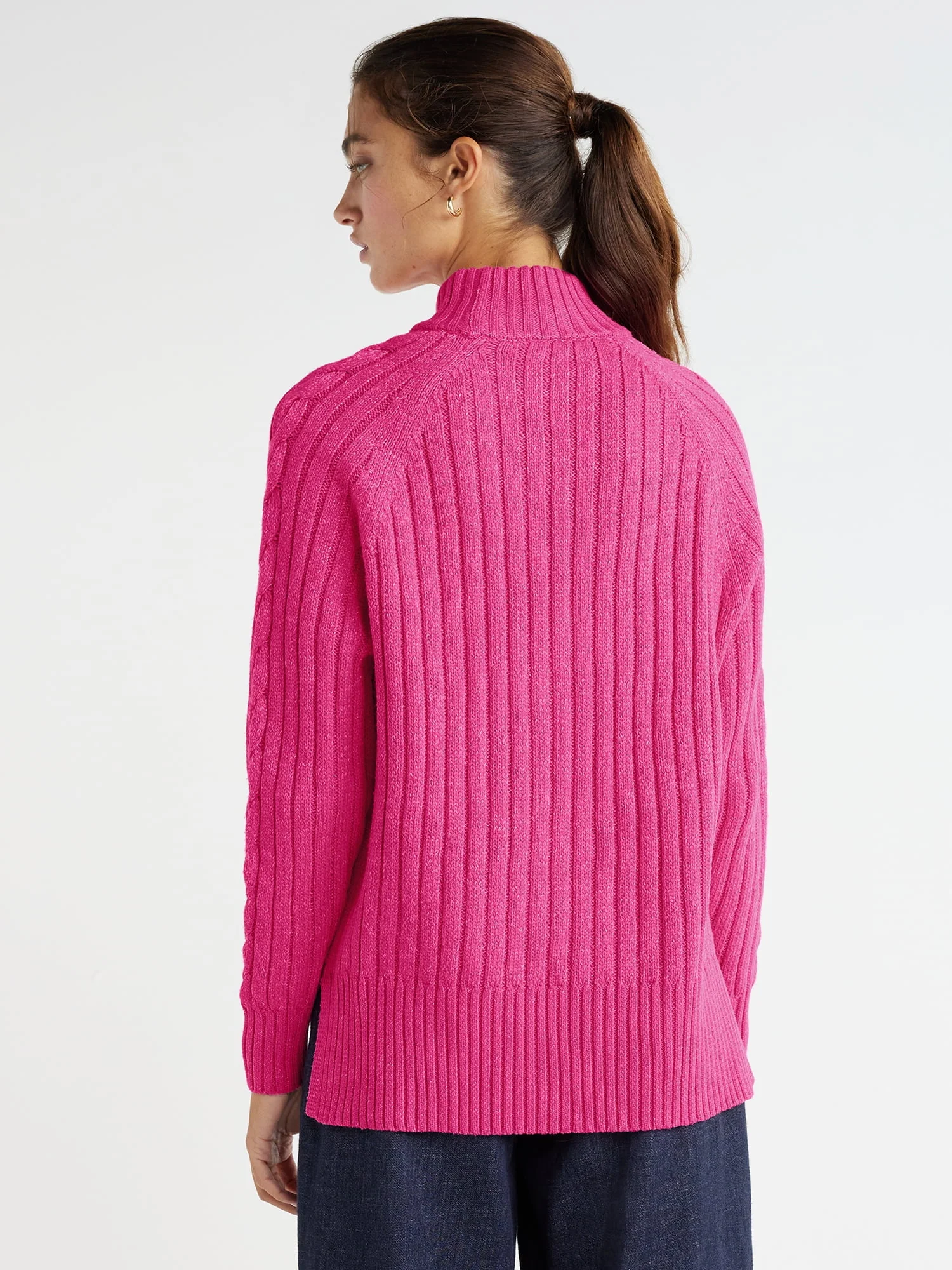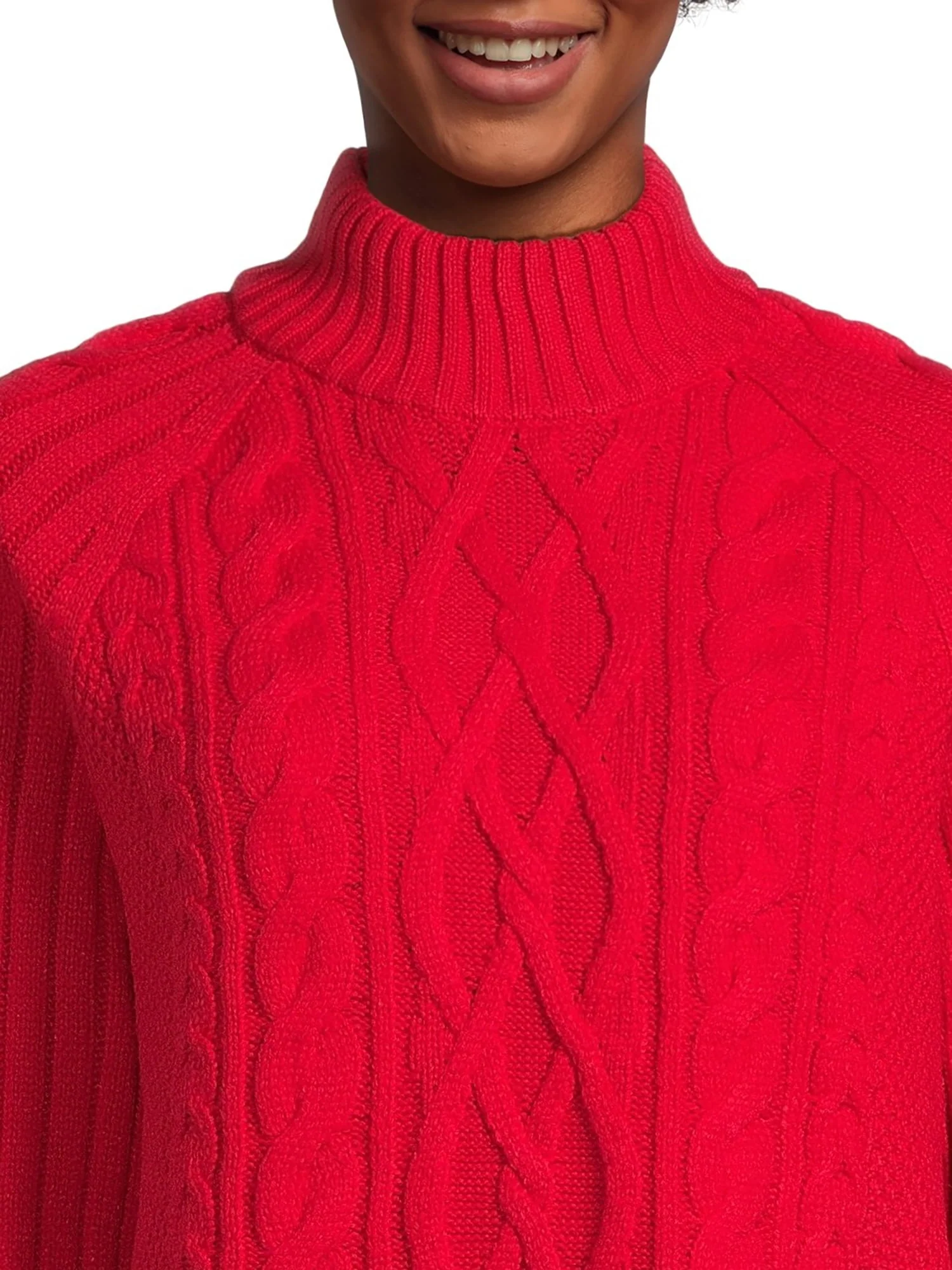 Time and Tru Women's Mock Neck Cable Pullover Sweater, Midweight, Sizes S-XXXL