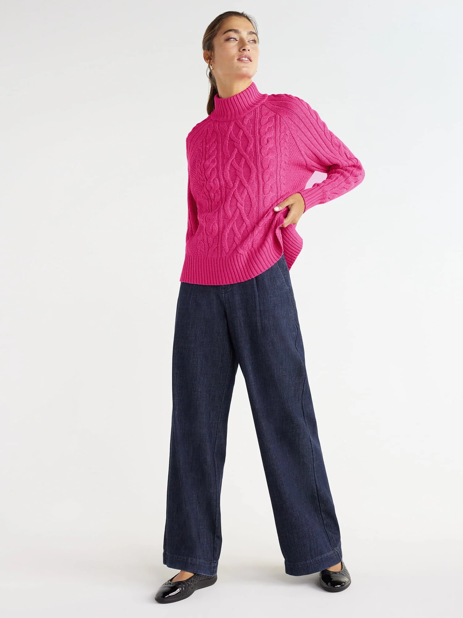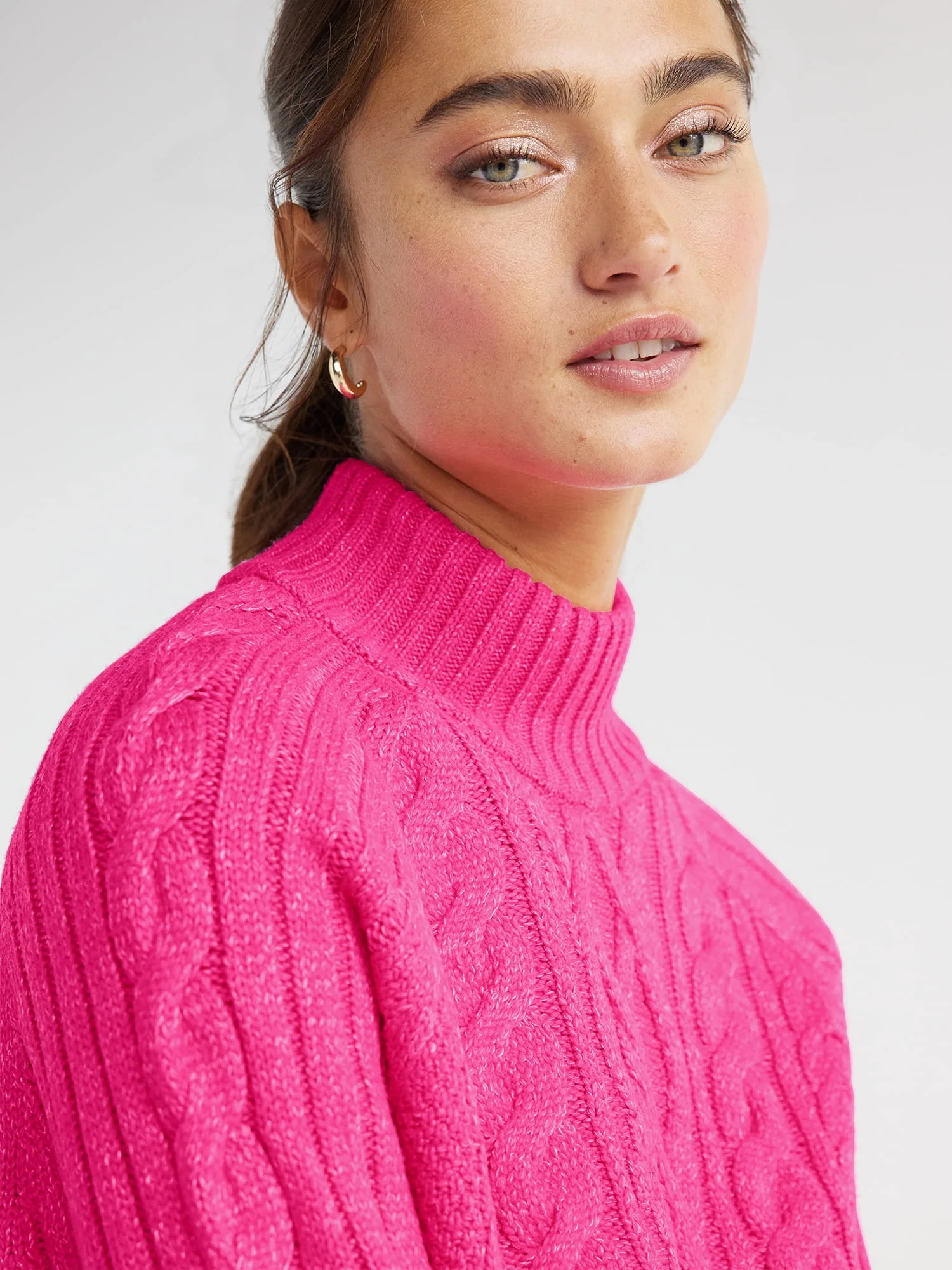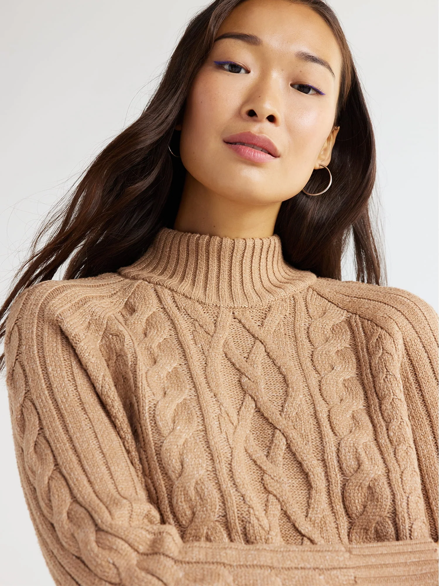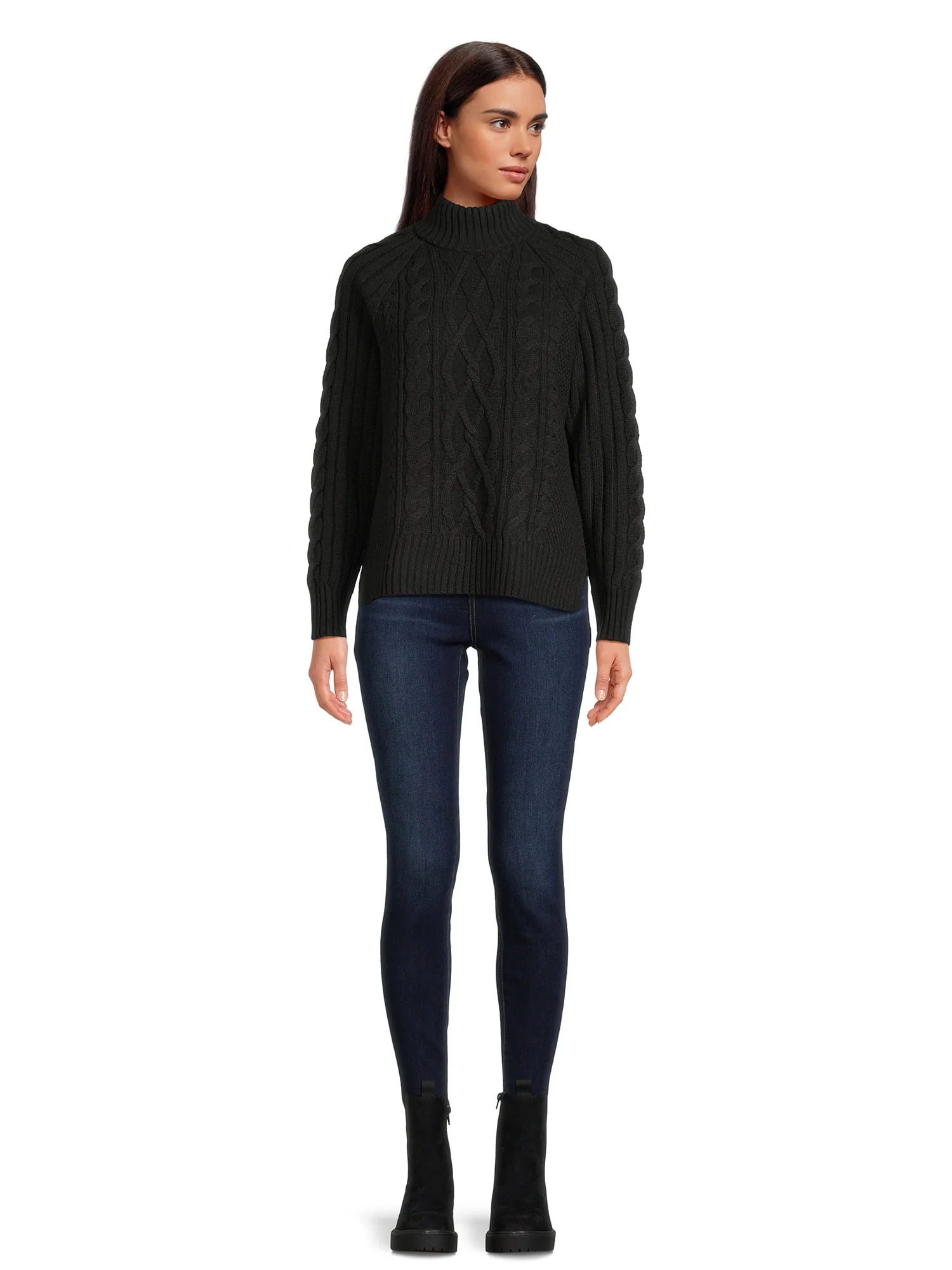 Time and Tru Women's Mock Neck Cable Pullover Sweater, Midweight, Sizes S-XXXL
