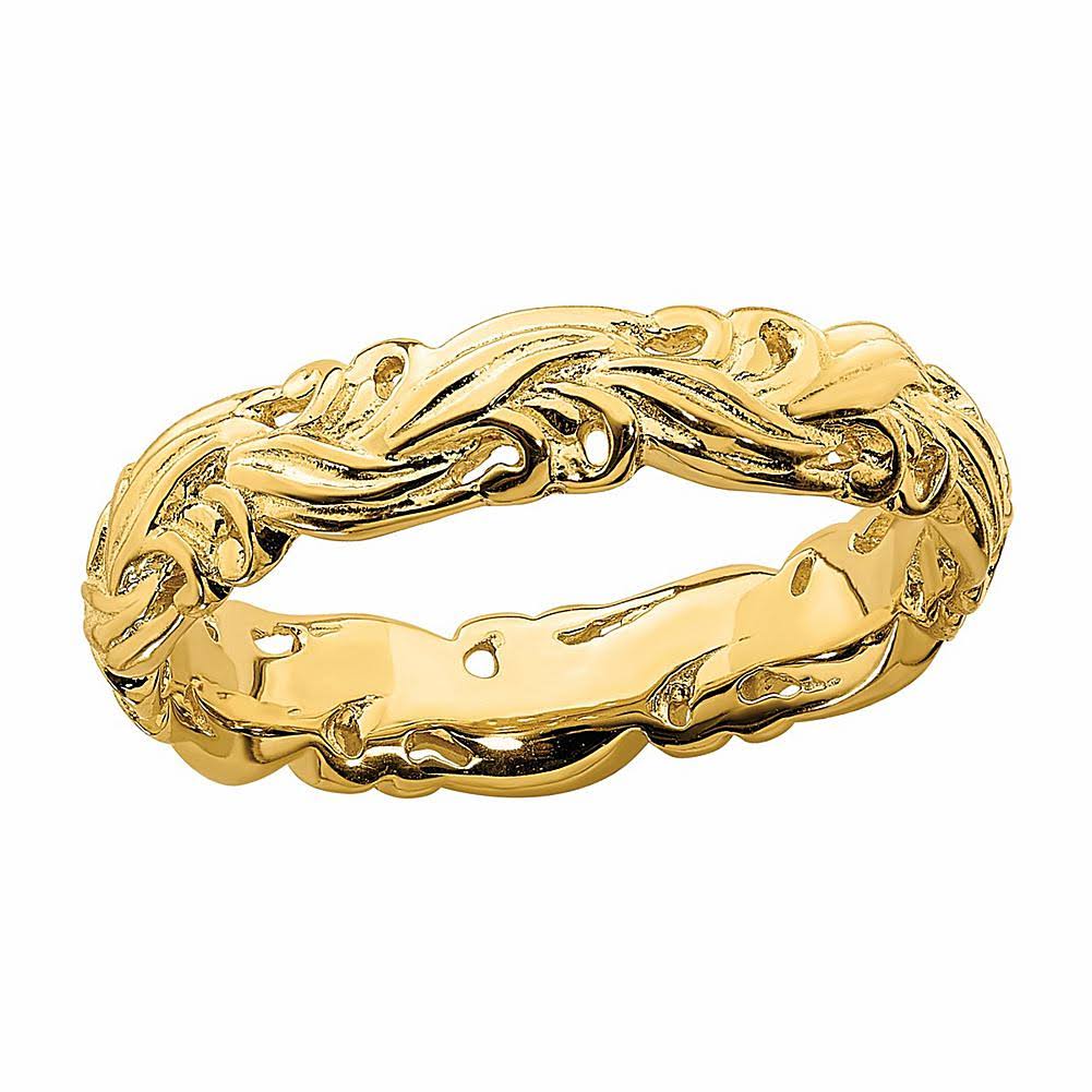 Stackable Expressions Sterling Silver Gold-Plated Carved Band, Size: 9 - Megean
