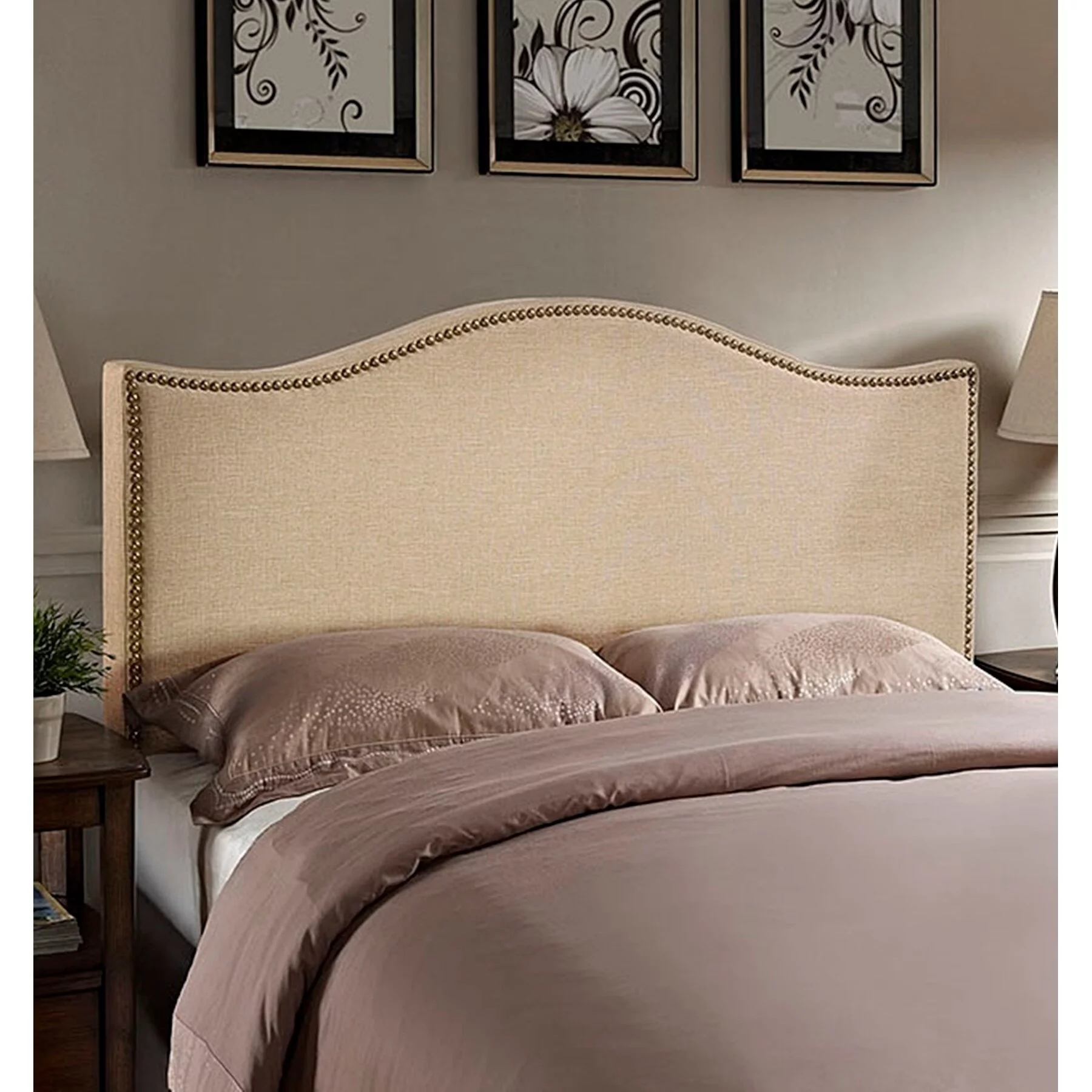 BSD National Supplies Bayton Queen Size Cafe Fabric Headboard with Nailhead Trim