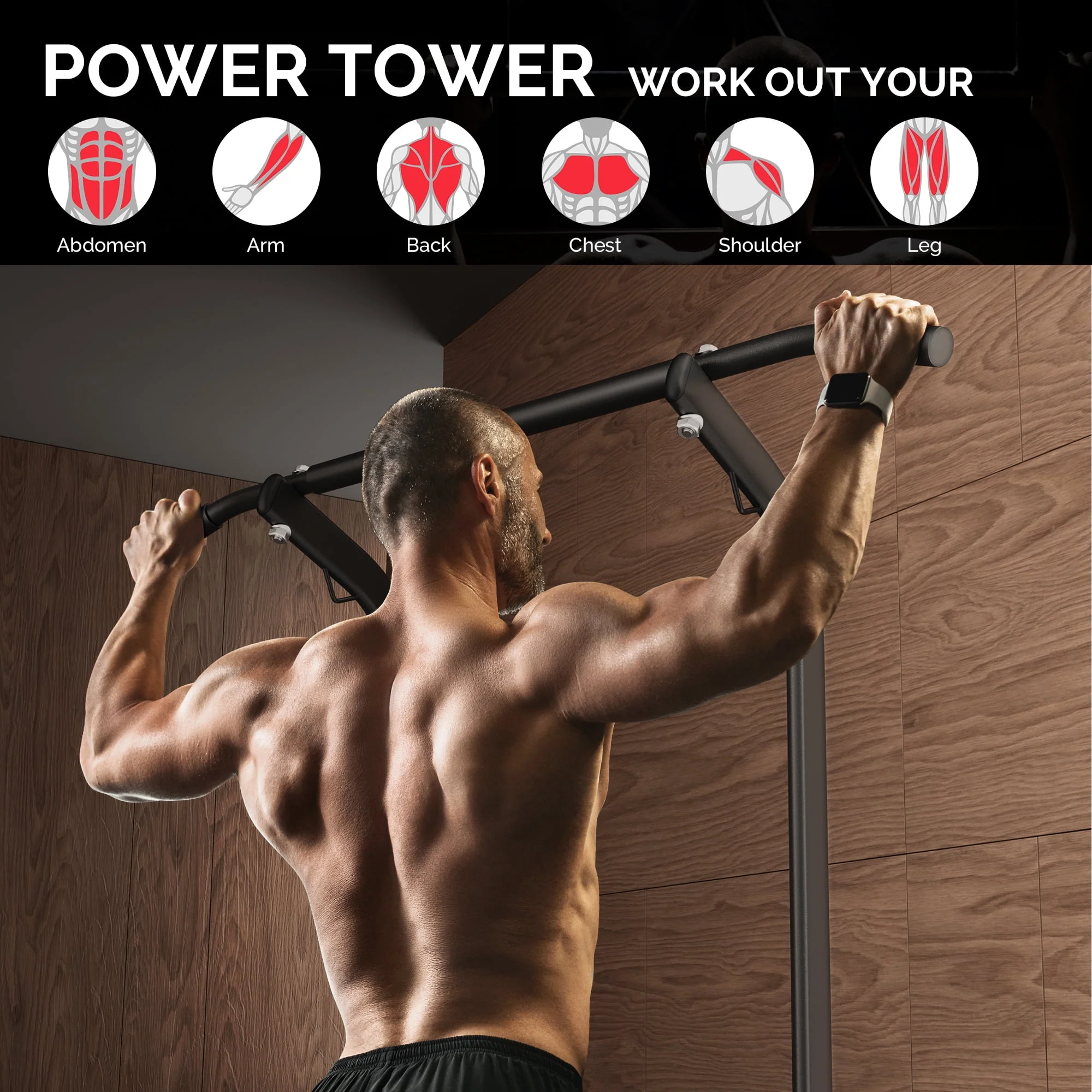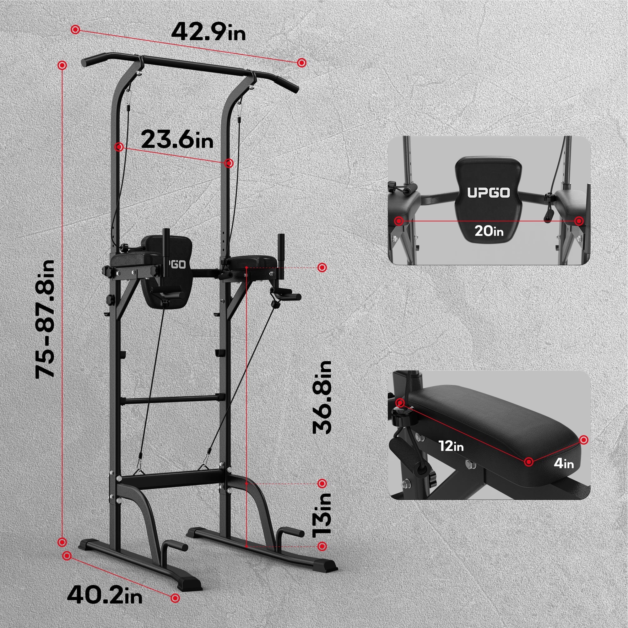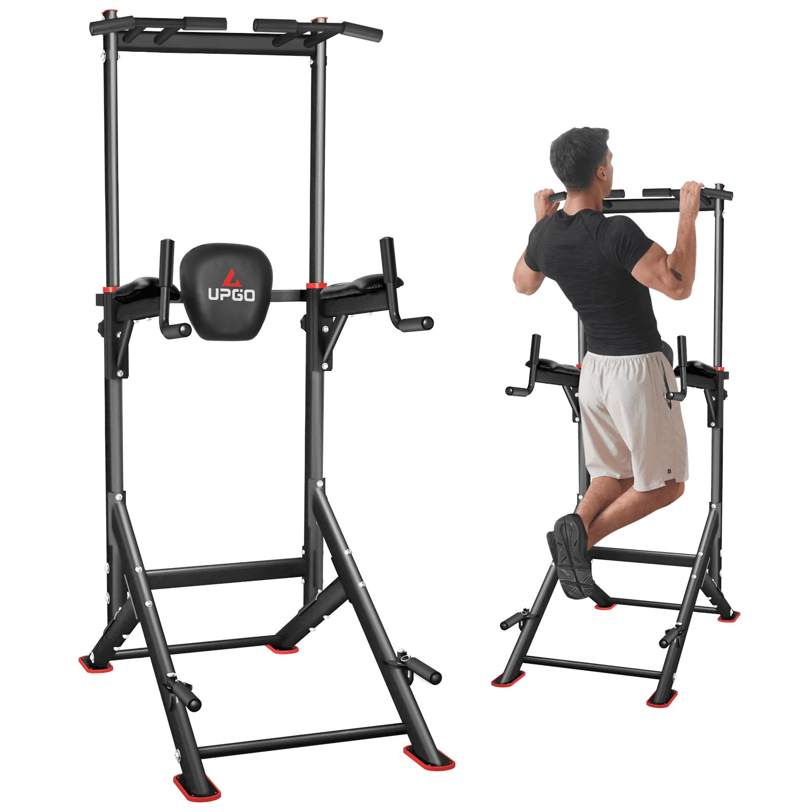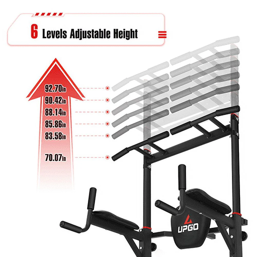 UPGO Adjustable Power Tower 400lbs Max Weight Dip Station Pull up Bar Power Rack Push up Resistance Band for Home Gym Strength Training Workout Equipment