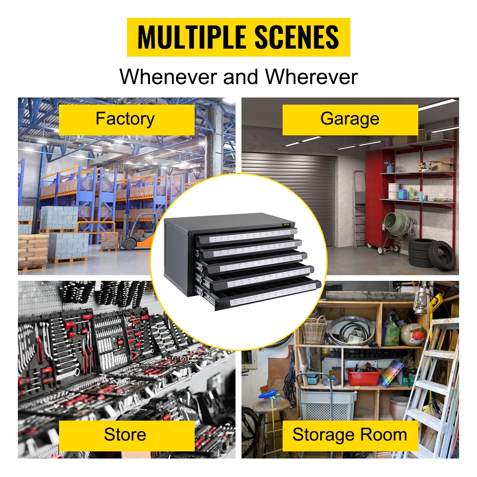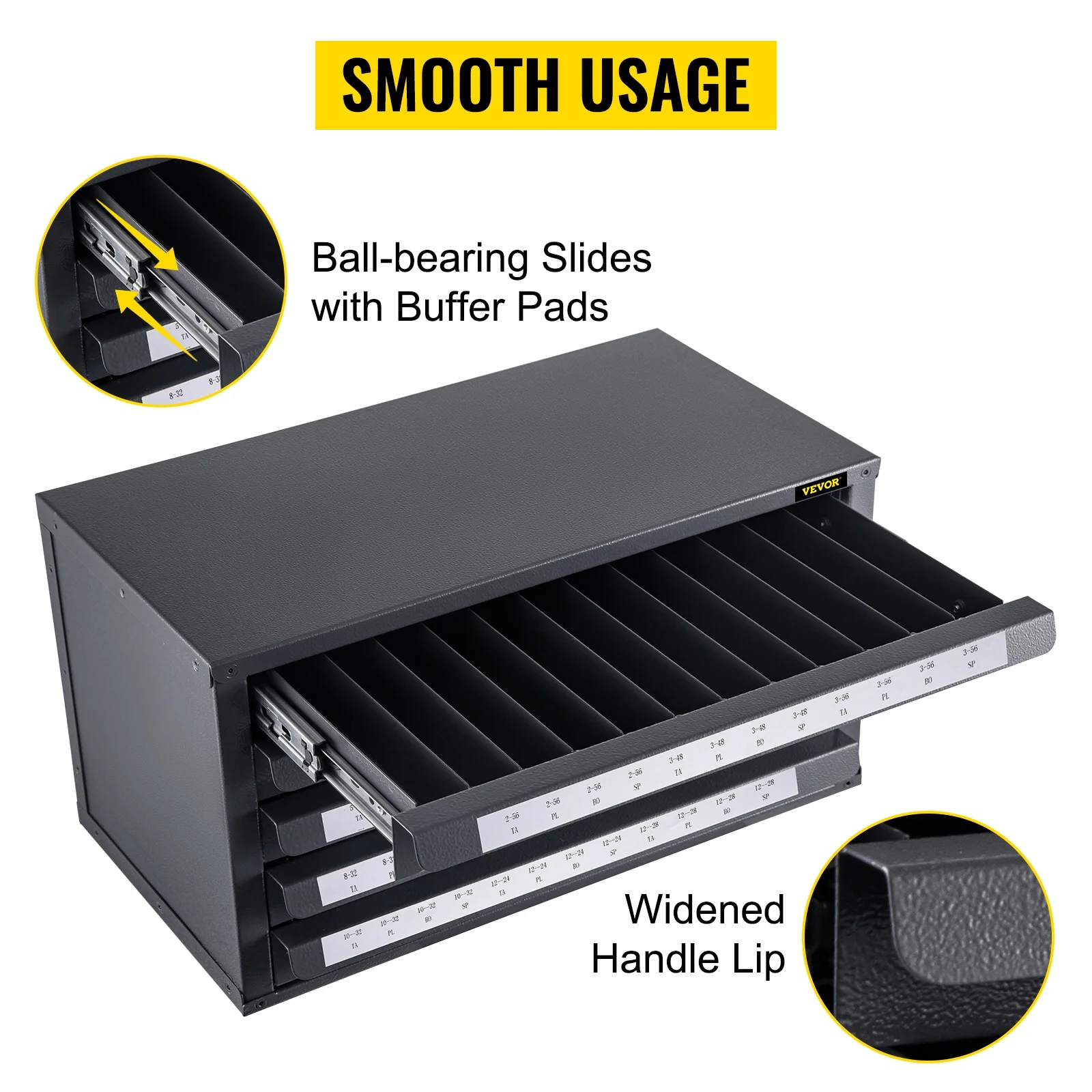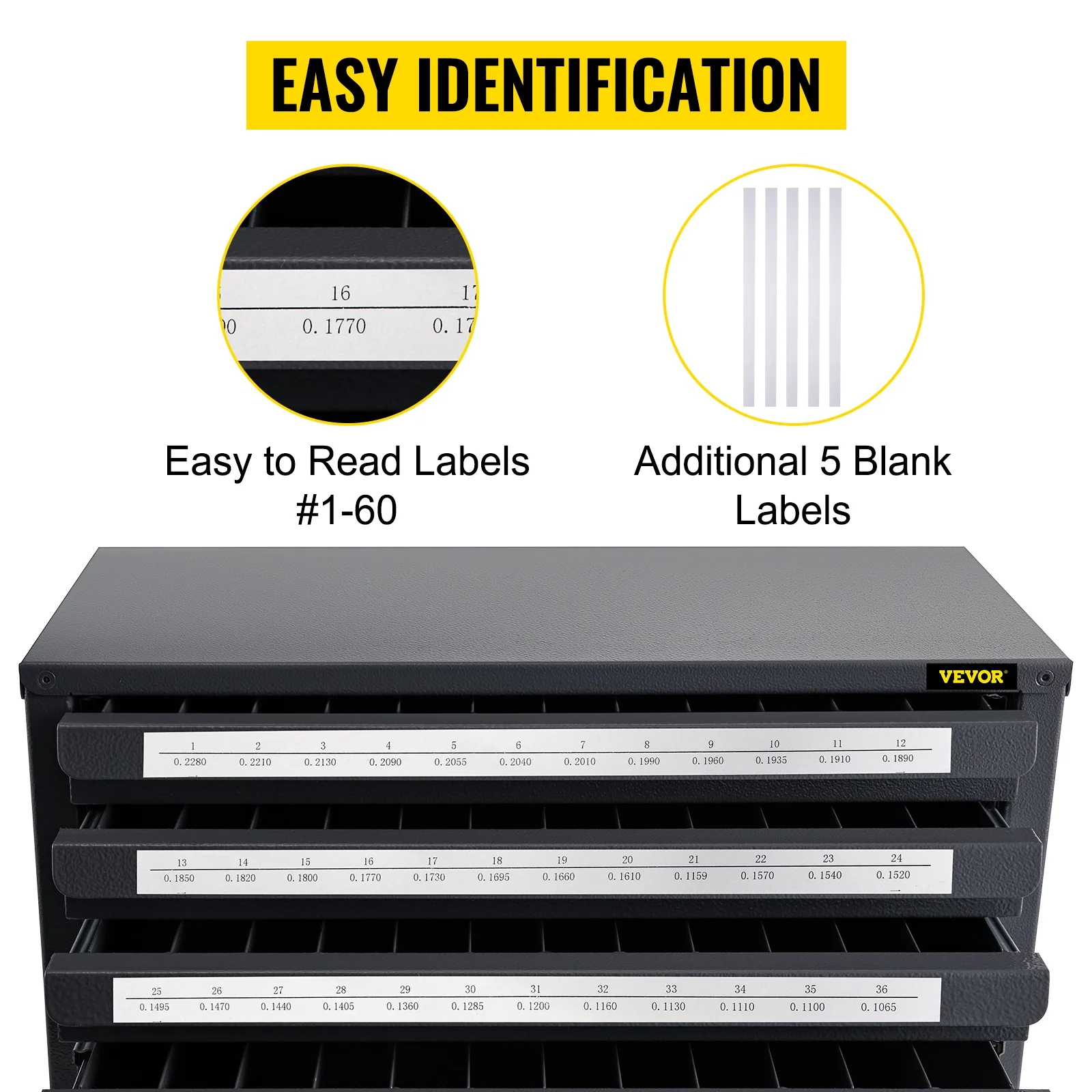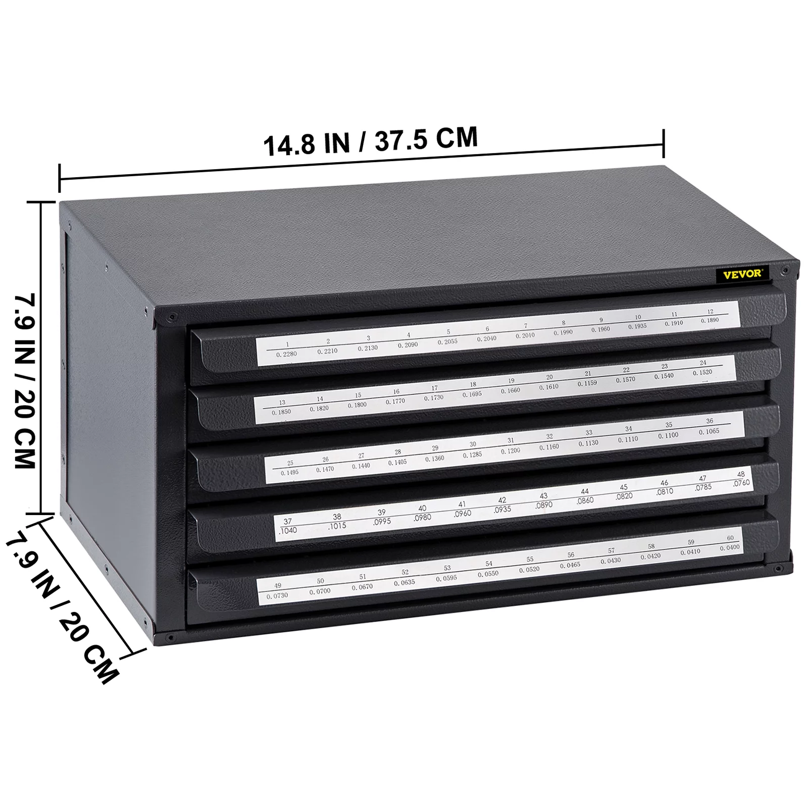 VEVOR Drill Bit Dispenser Cabinet, Five-Drawer Drill Bit Dispenser, 1/2 Reduced Shank Drill Bit Organizer Cabinet, Drill Dispenser Organizer Cabinet for Sizes 33/64 to 63/64 in 1/64 Increments