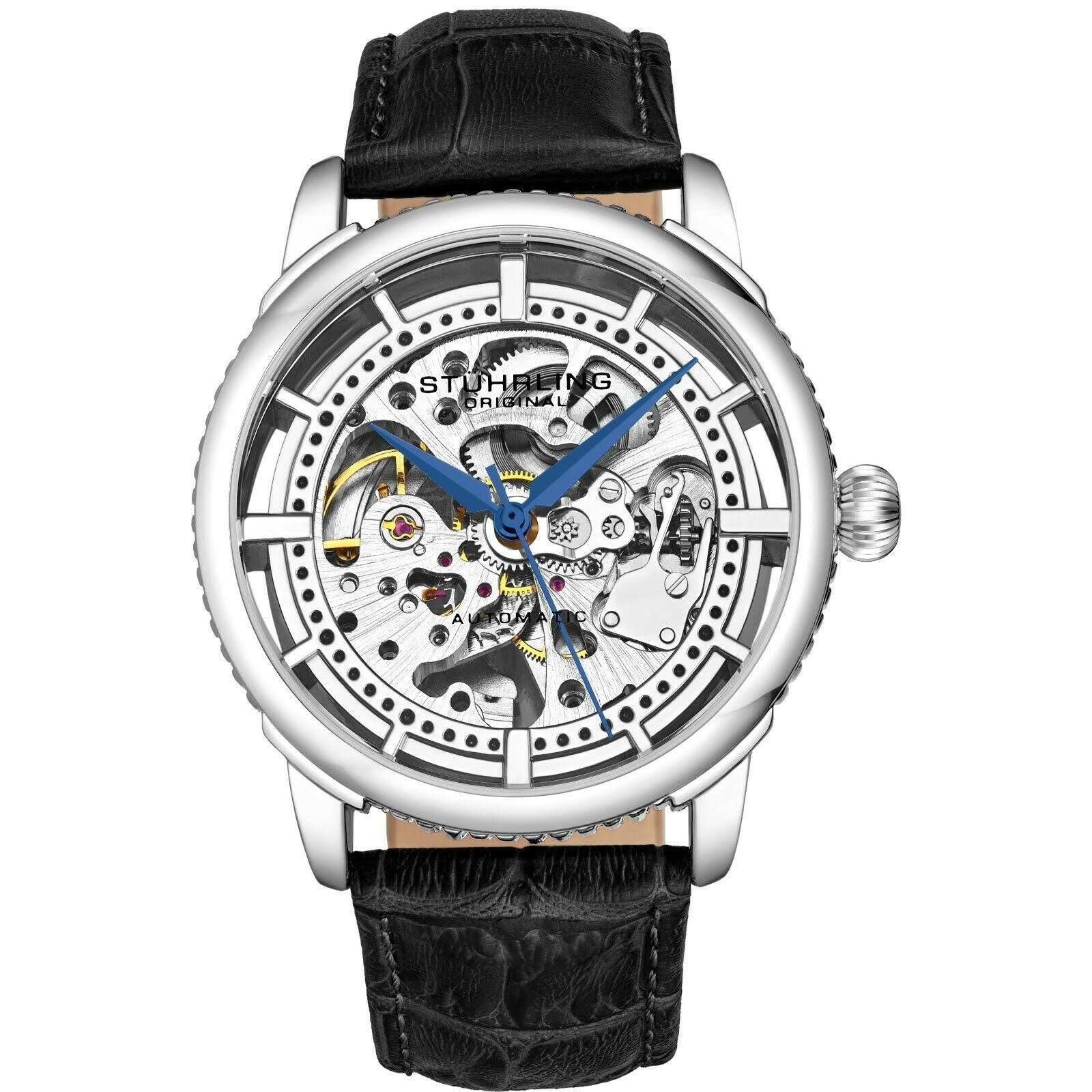 Stuhrling 3933 1 Winchester Automatic Skeleton Black Leather Strap Mens Watch - Megean