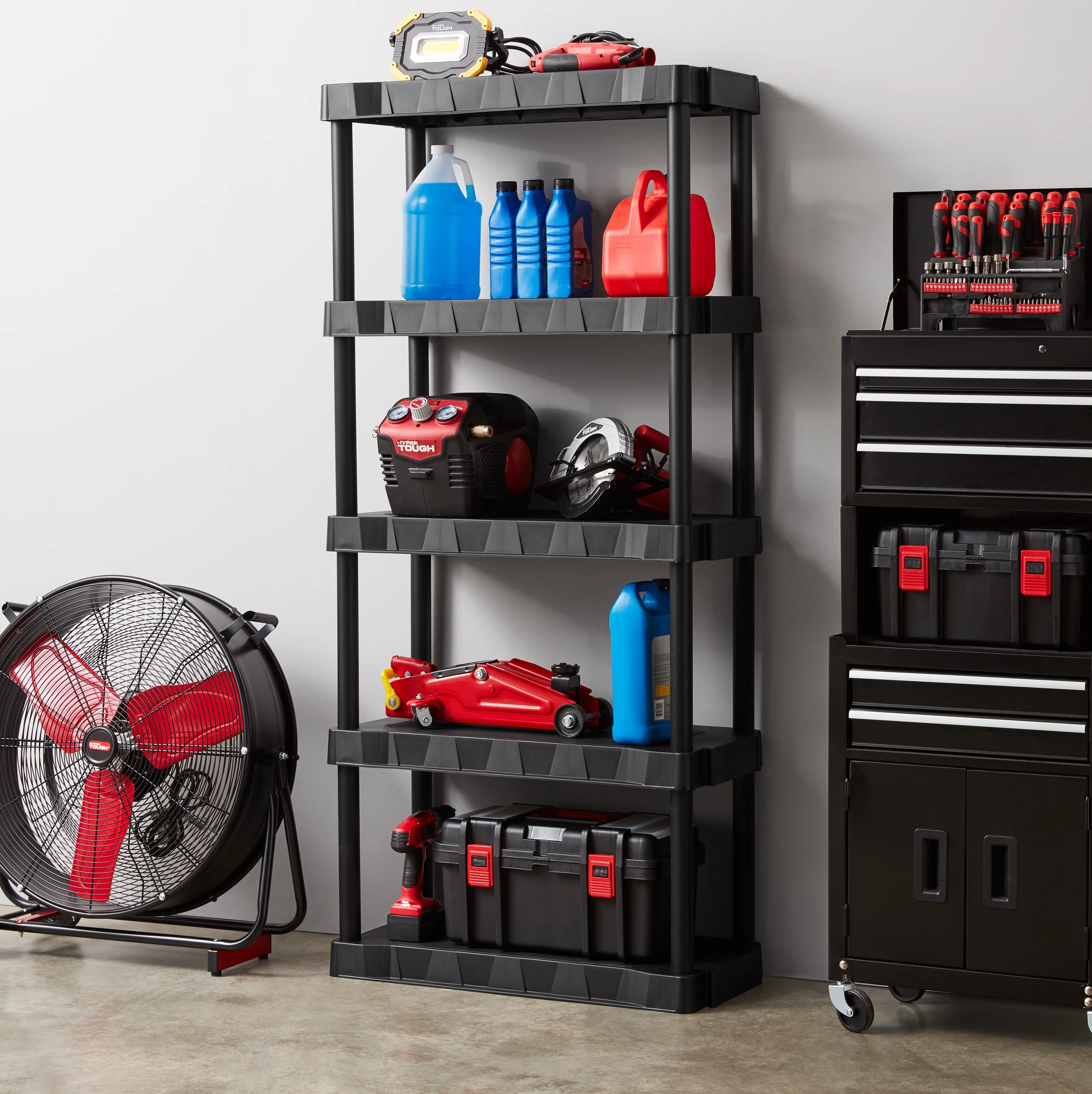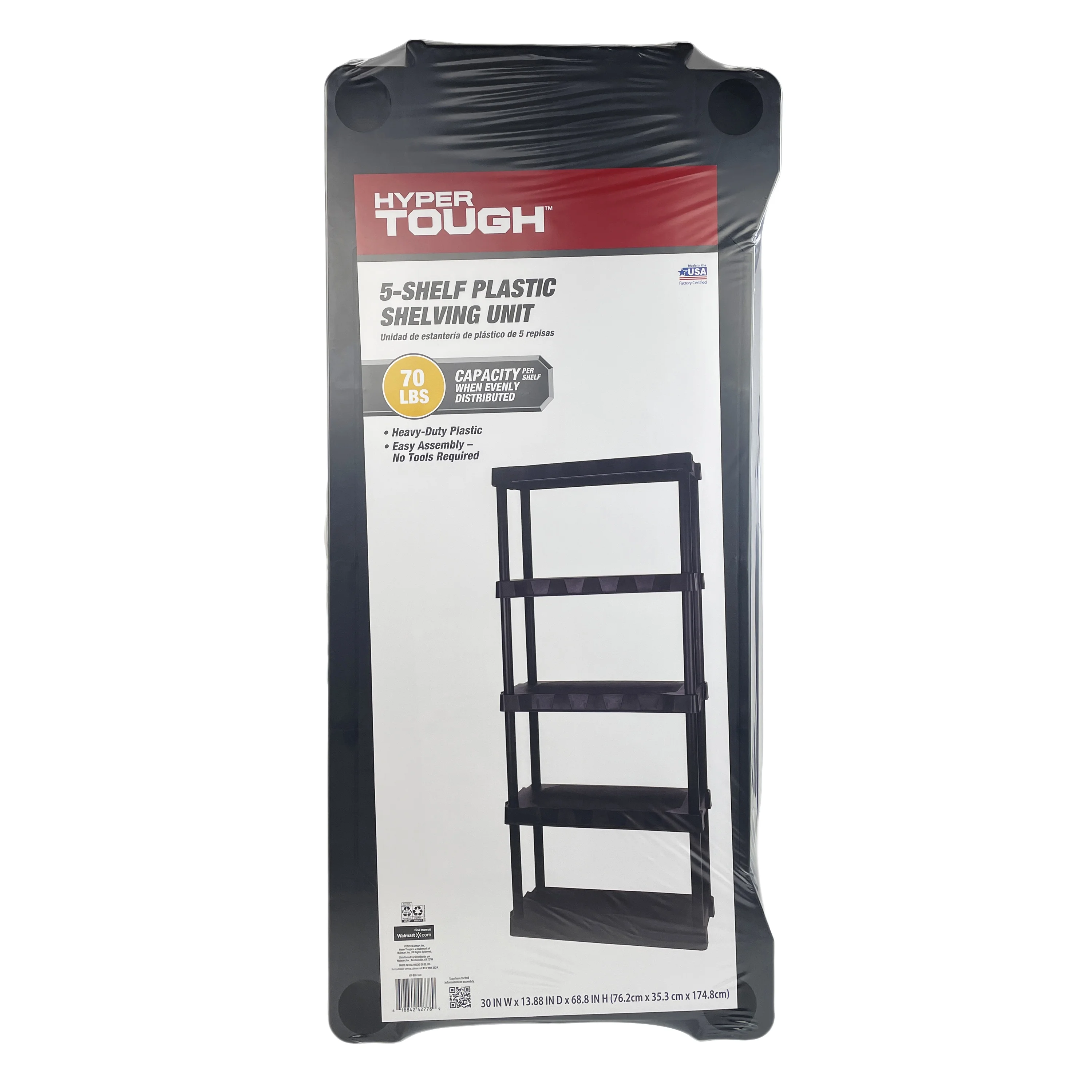 Hyper Tough Black 5-Tier Plastic 68 H x 30 W x 13.8D, 350lb Total Capacity