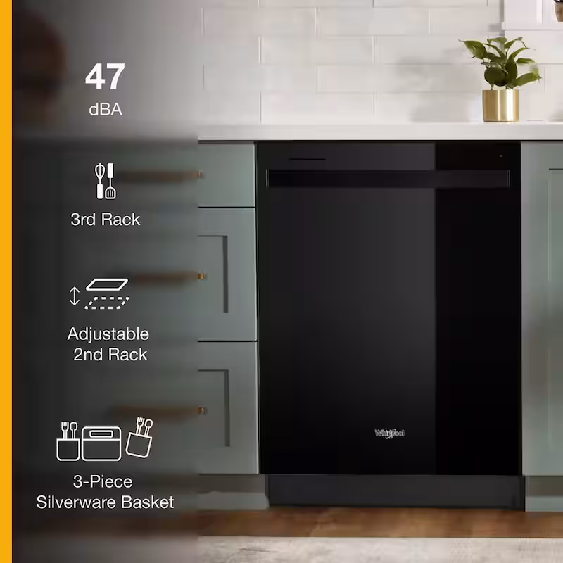 24 in. Black Top Control Built-In Tall Tub Dishwasher with Third Level Rack, 47 dBA