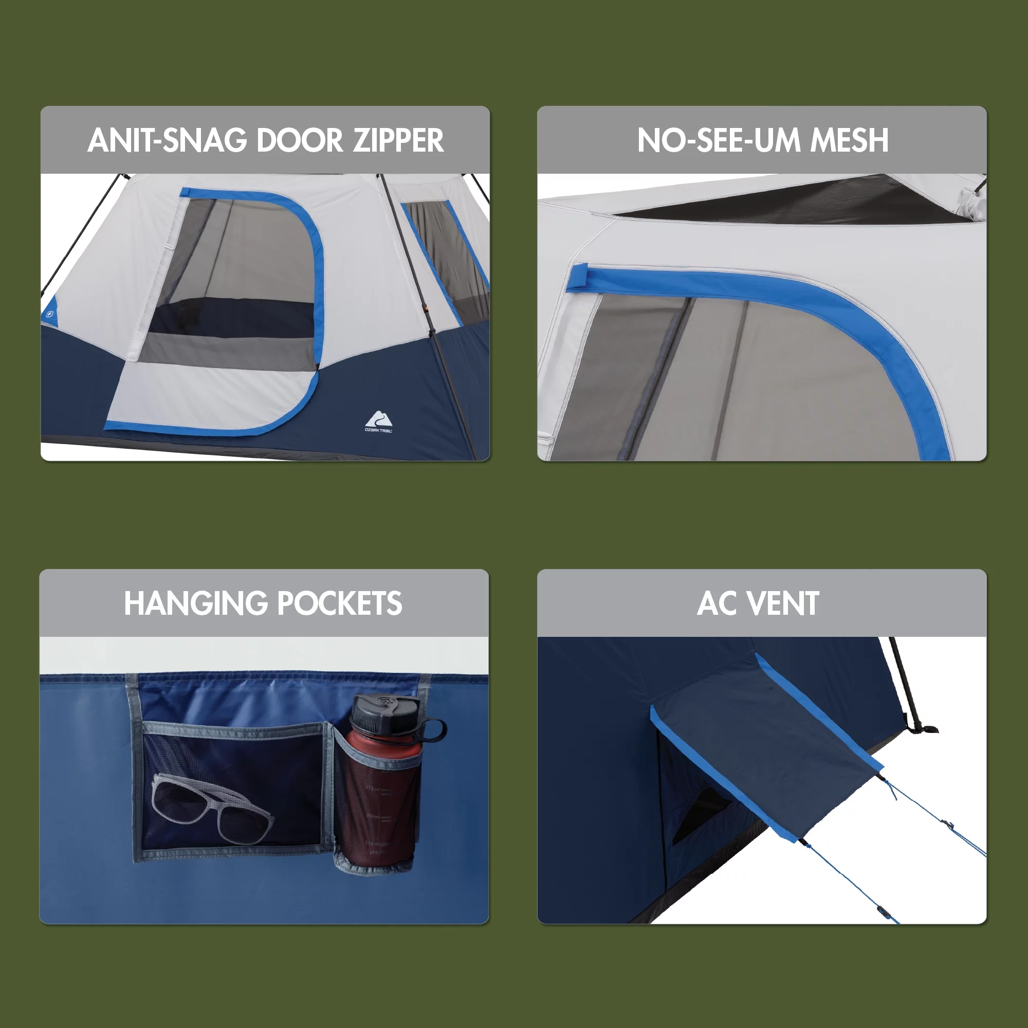 Ozark Trail 10' x 9' 6-Person Instant Cabin Tent with LED Lighted Hub, 25 lbs