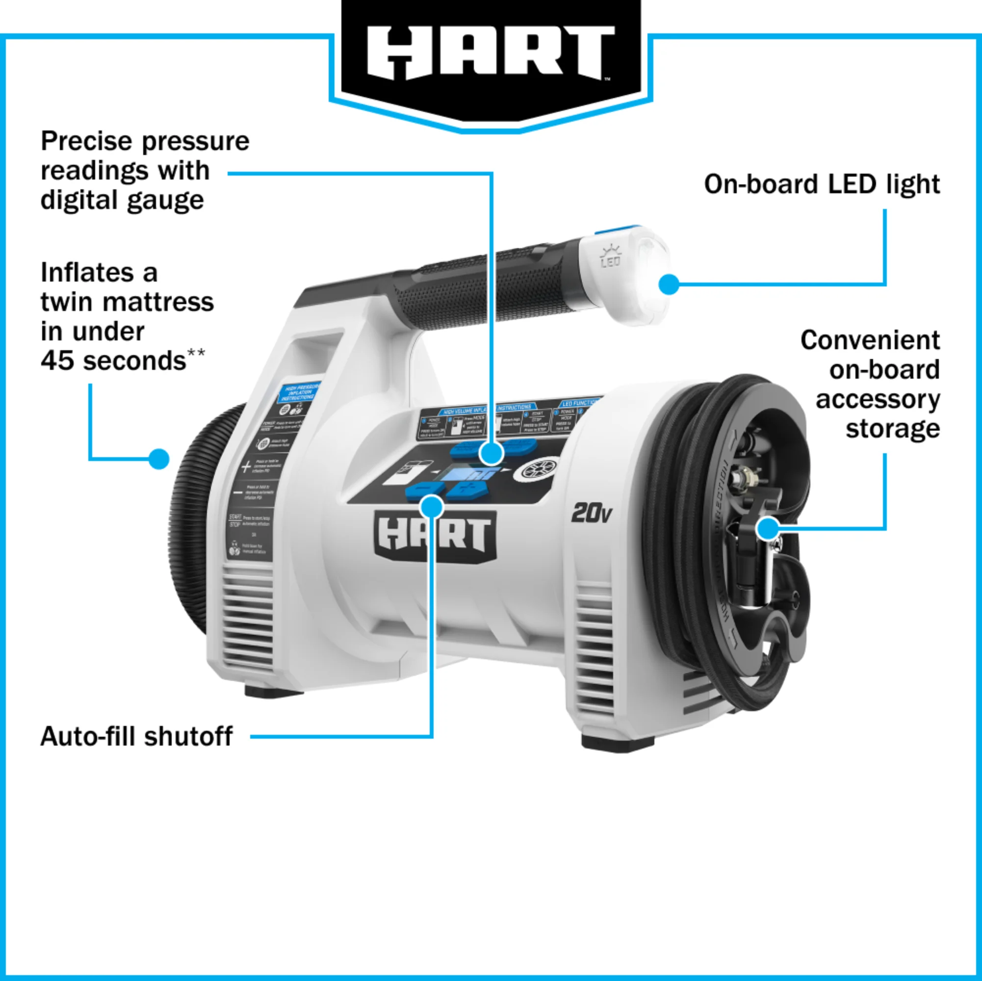 HART 20-Volt Cordless Air Pump Dual Function Digital Inflator Kit (1) 20-Volt 1.5Ah Lithium-Ion Battery