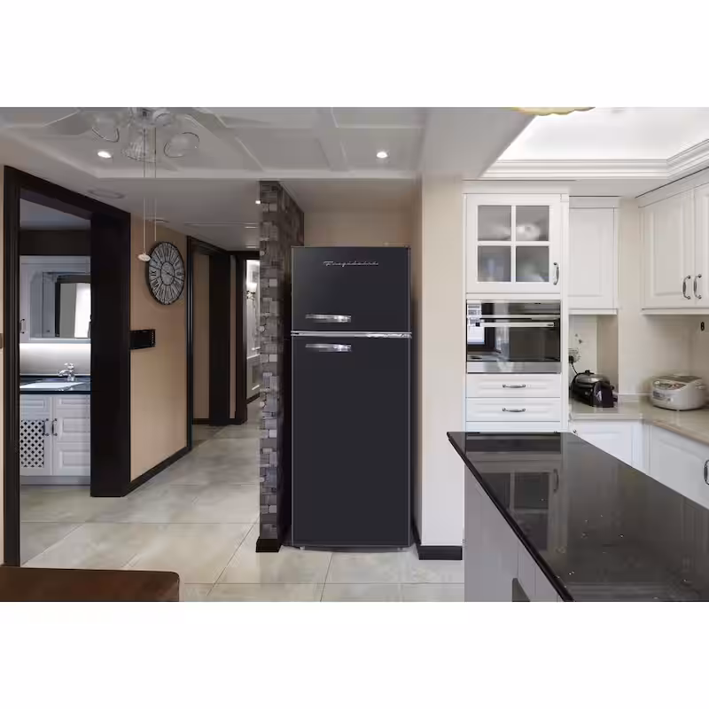 7.5 cu. ft. Retro Mini Fridge in Black with Top Freezer