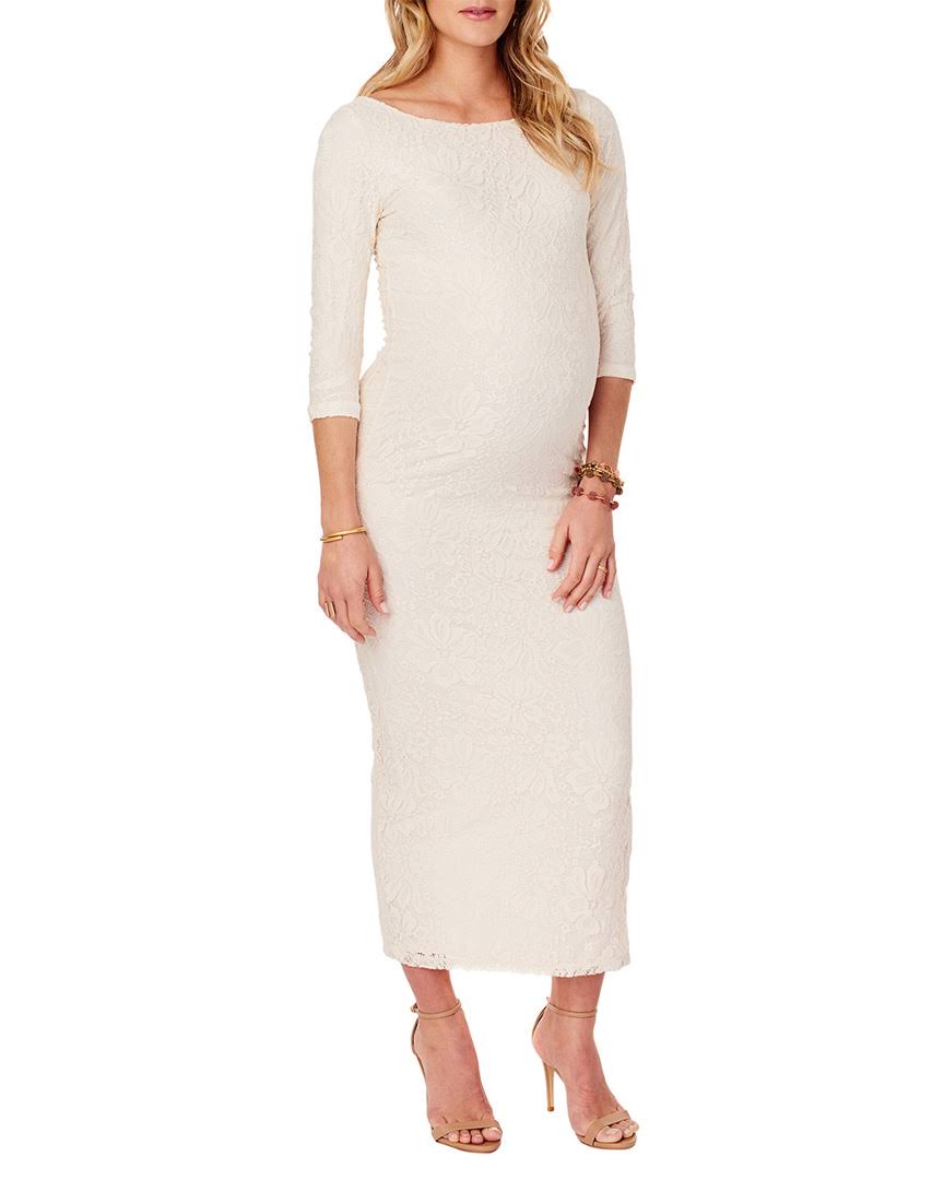 Ingrid & Isabel Lace Ballet Neck Maternity Column Dress Ivory / XL - Megean