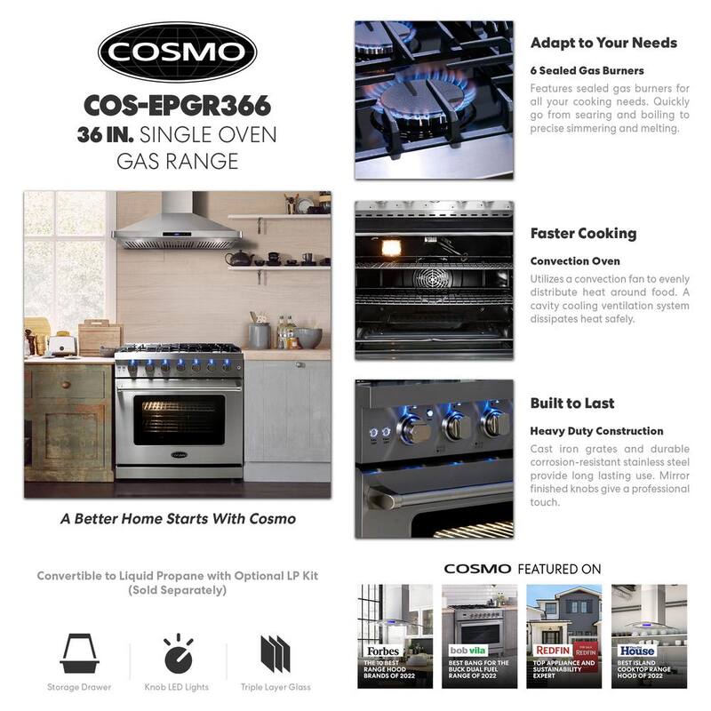 36 in. 6.0 cu. ft. Commercial-Style Gas Range with Convection Oven in Stainless Steel with Storage Drawer