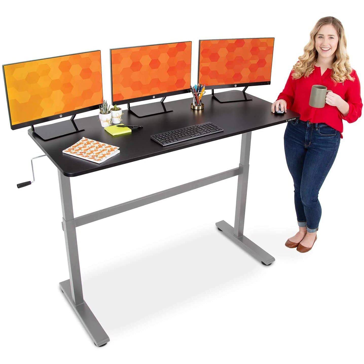Stand Steady Tranzendesk Standing Desk - 55 inch Long - Easily Crank from Sitting to Standing (Black Top/Silver Frame) - Megean