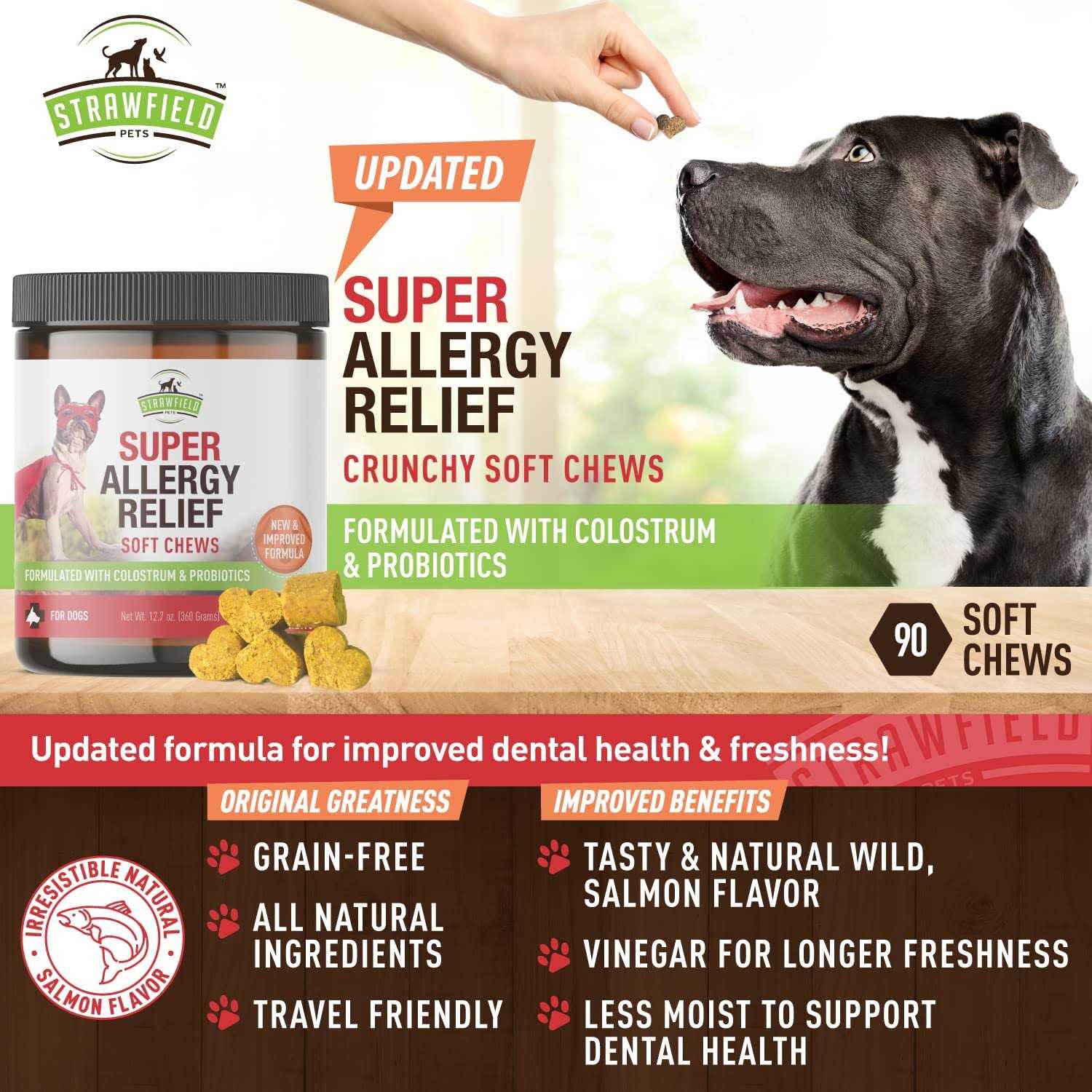 Strawfield Pets Super Dog Allergy Relief Soft Chews with Pre & Probiotics & Colostrum More Salmon Fish Oil for Dogs Natural Supplement for Dry Itch