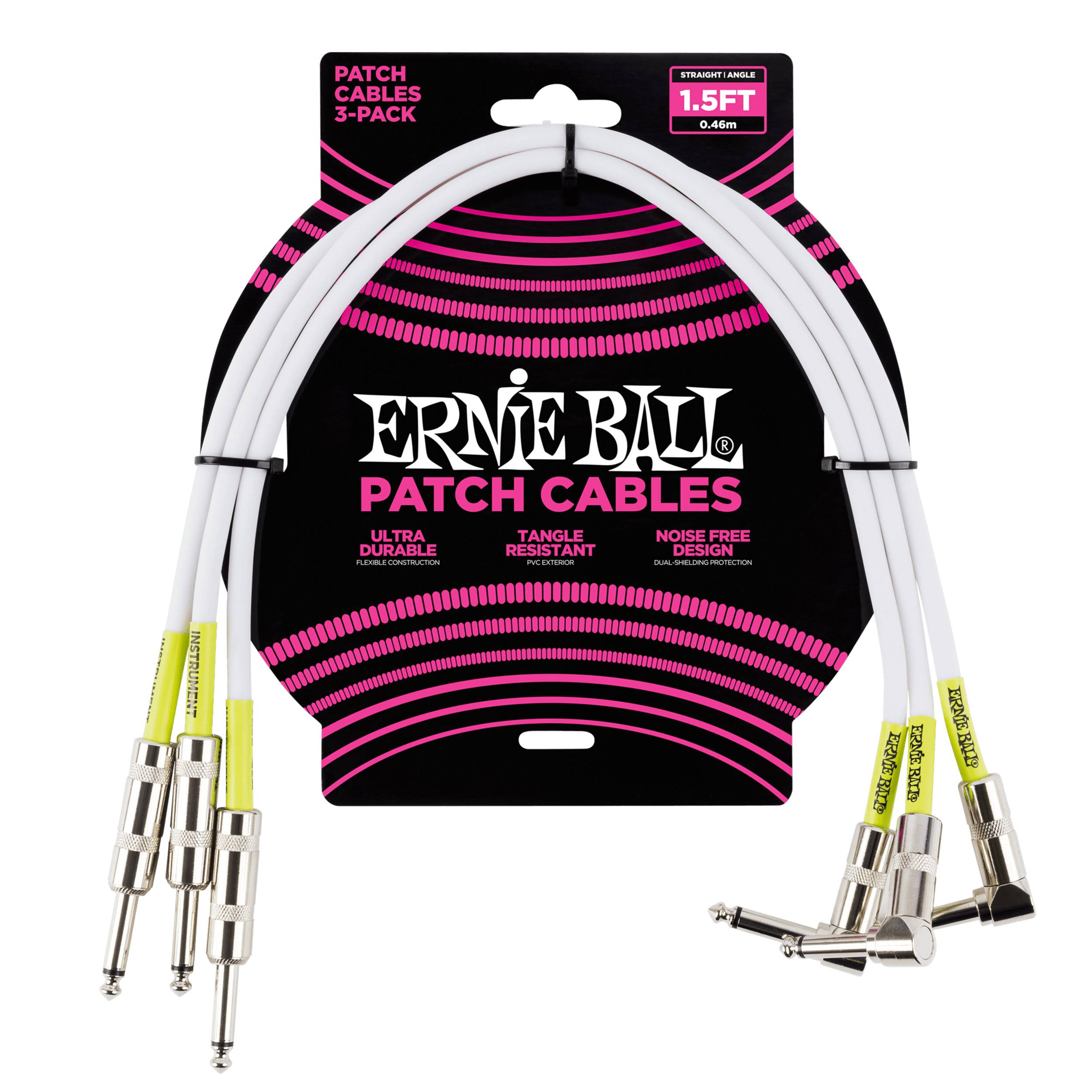 Ernie Ball 1.5' Straight / Angle Patch Cable 3-Pack - White - Megean