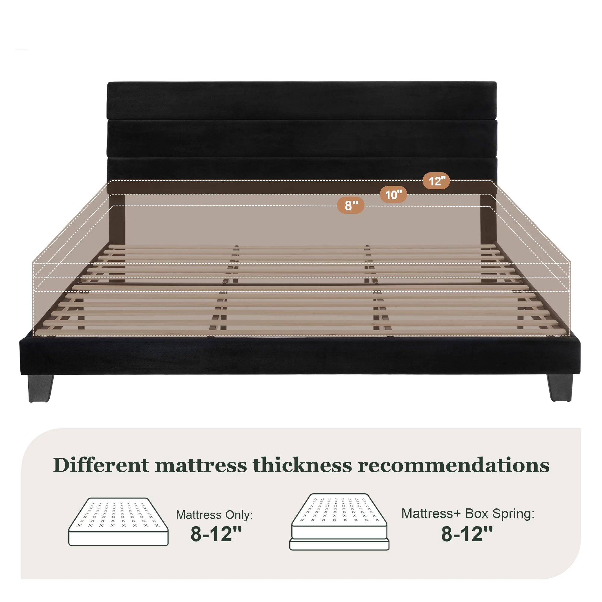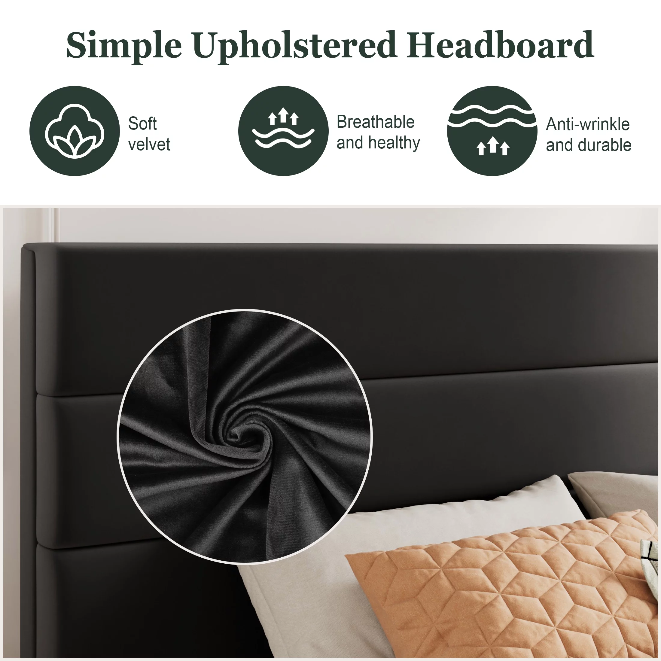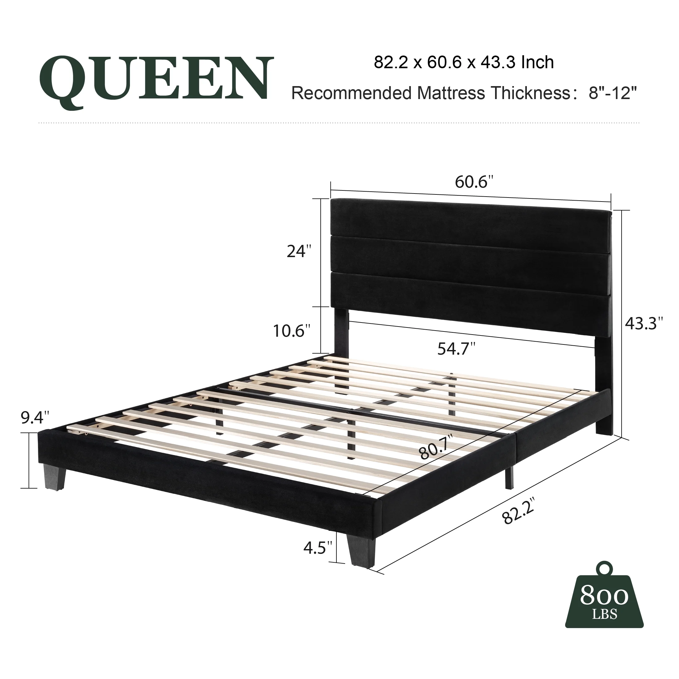 Amolife Queen Size Velvet Upholstered Platform Bed Frame with Headboard, Black