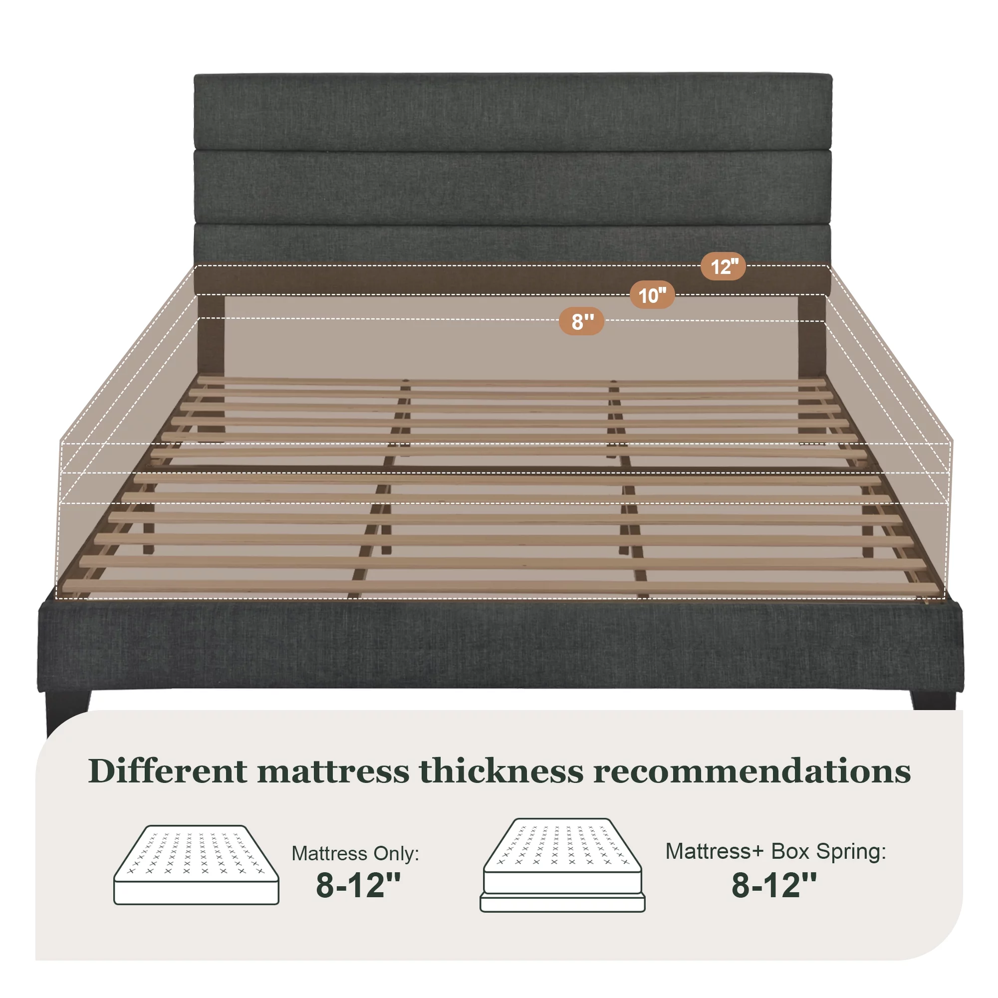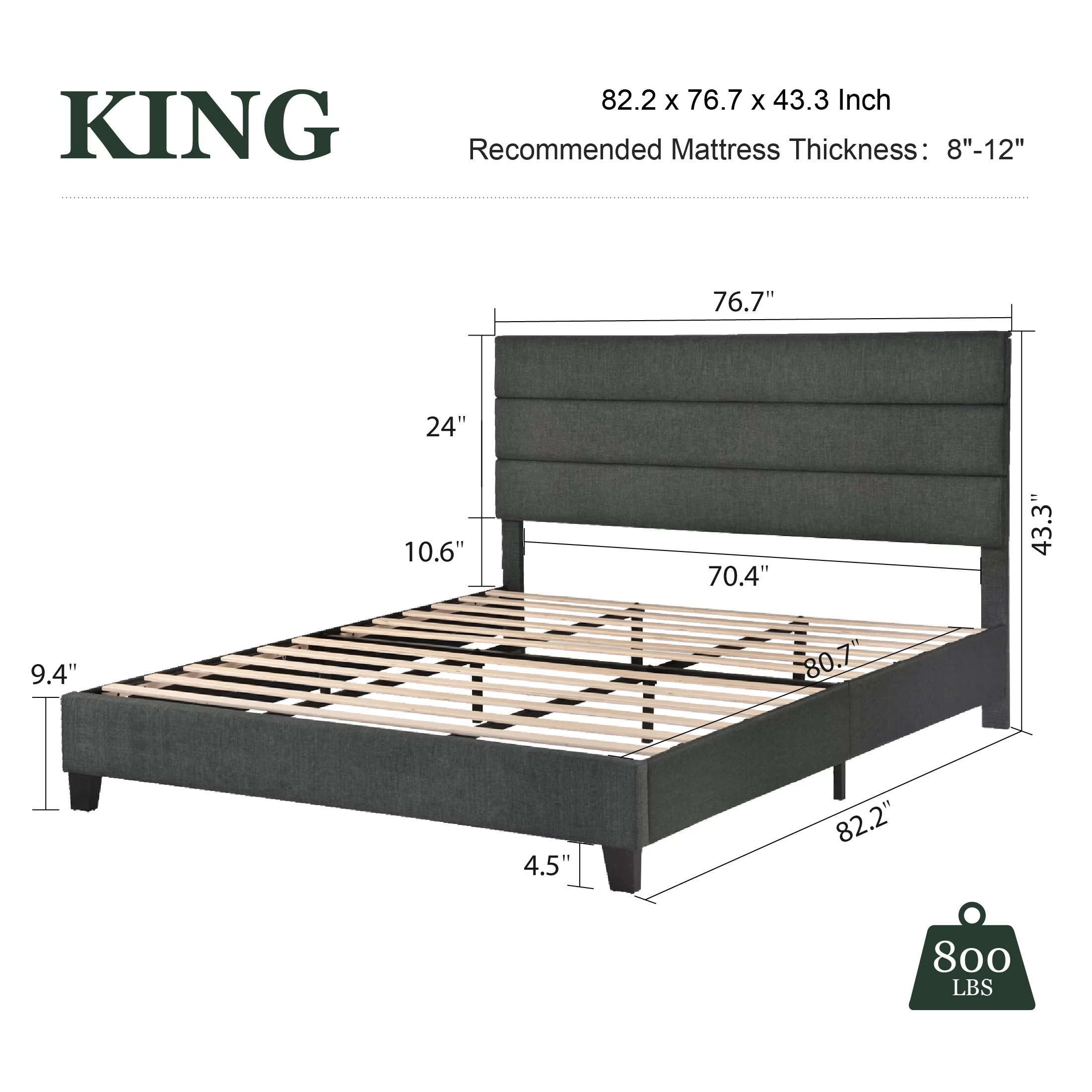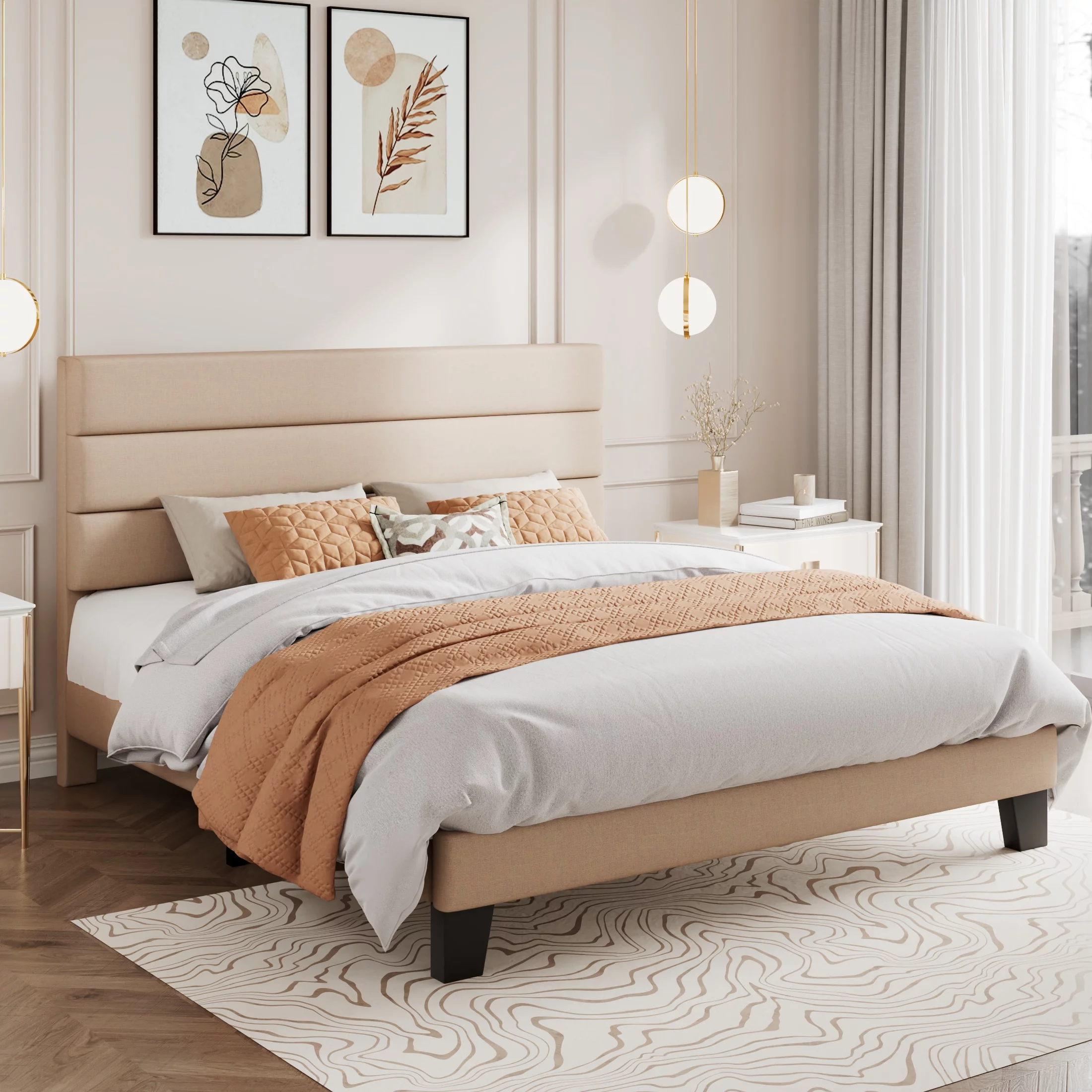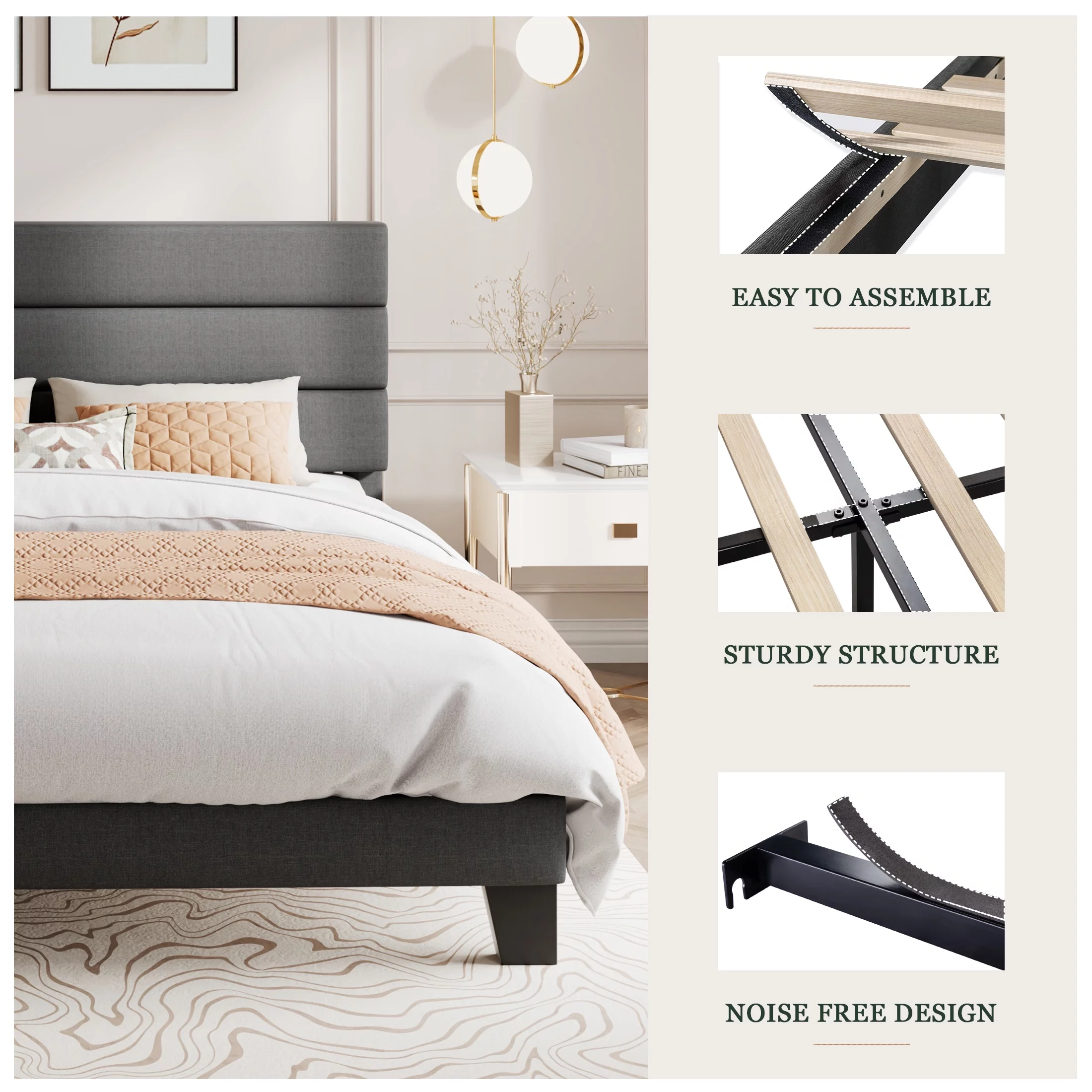 Amolife Queen Size Velvet Upholstered Platform Bed Frame with Headboard, Black