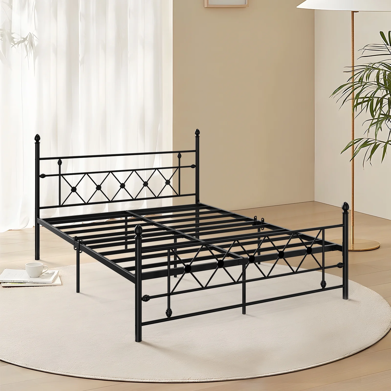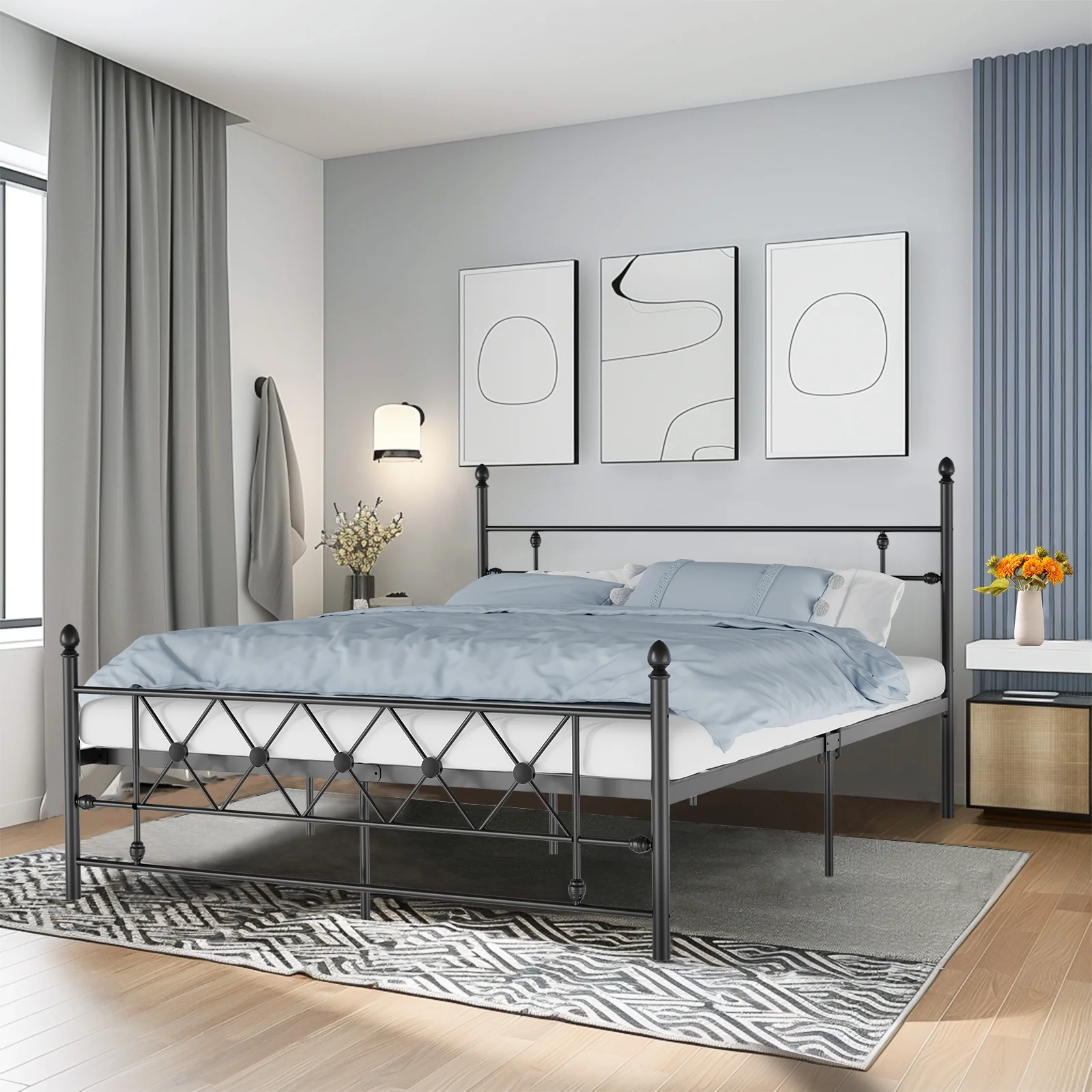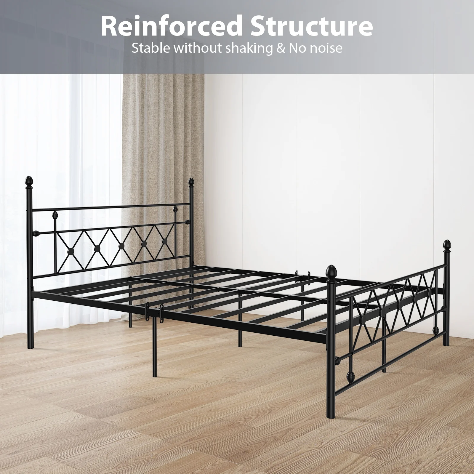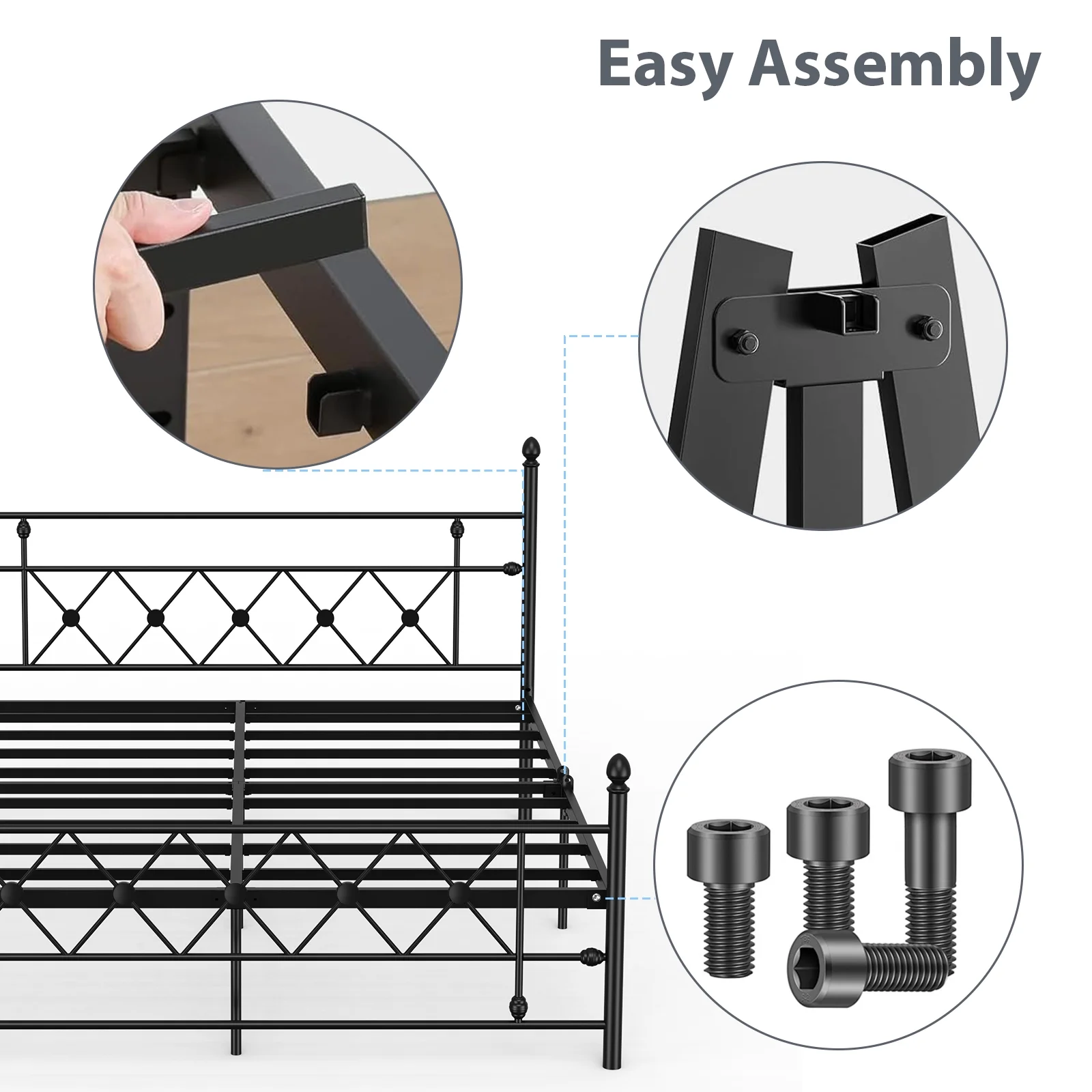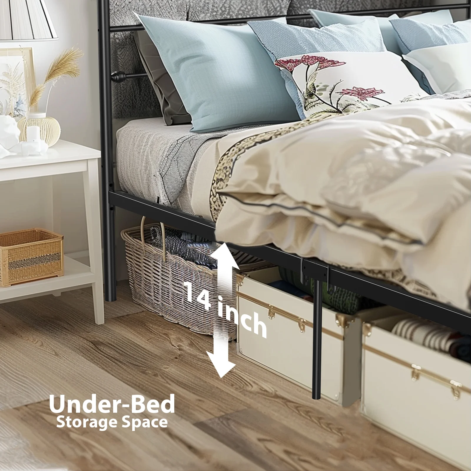 HOMWOO Metal Platform Bed Frame Queen Size with Headboard Storage Space,No Box Spring Needed Heavy Duty Mattress Foundation, Noise Free, Black