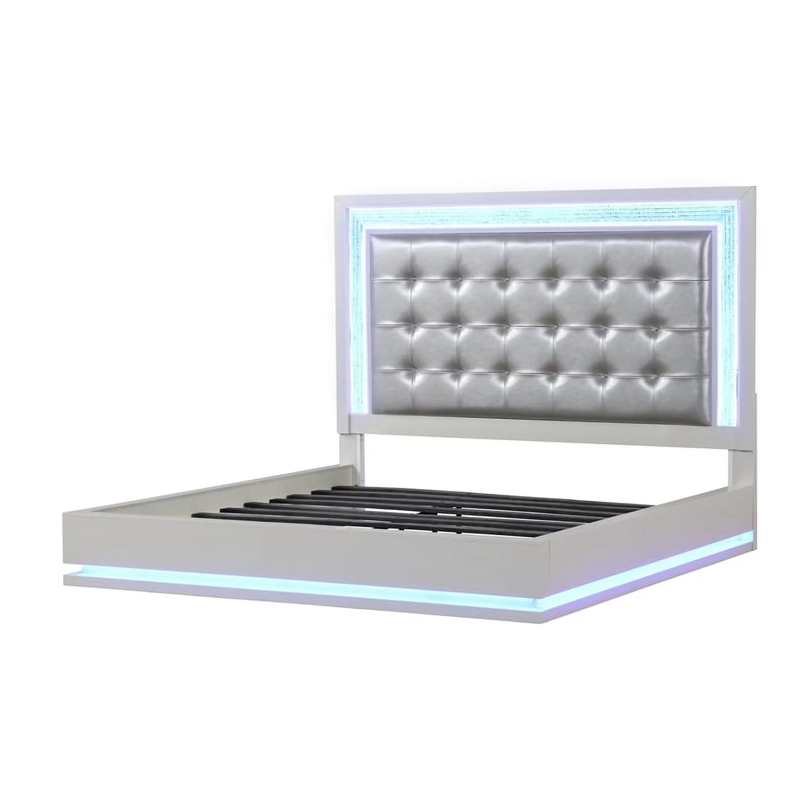 Atlin Designs Passion LED Queen Bed Made with Wood in Milky White - Curated Treasures Market