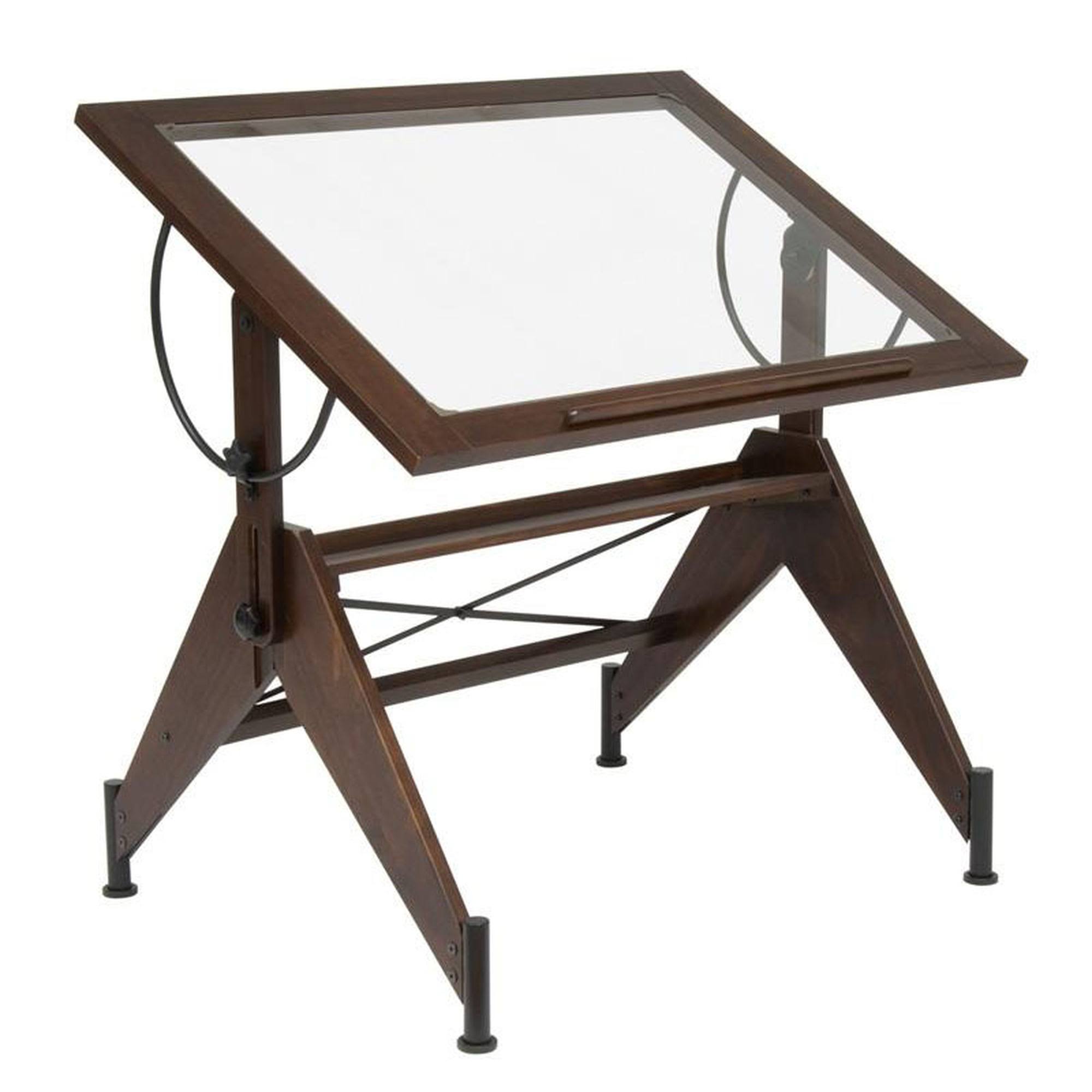 Studio Designs Aries Glass Top Drafting Table - Dark Walnut/Black - Megean
