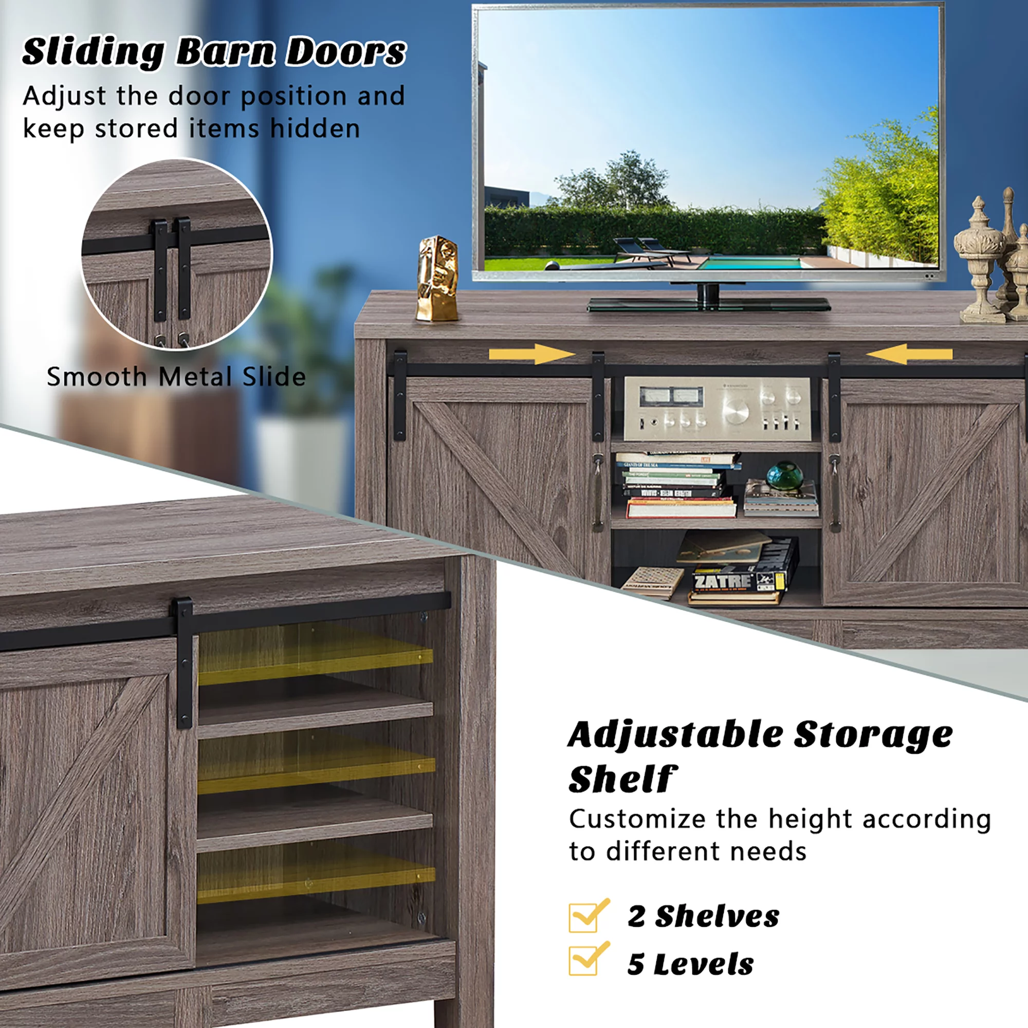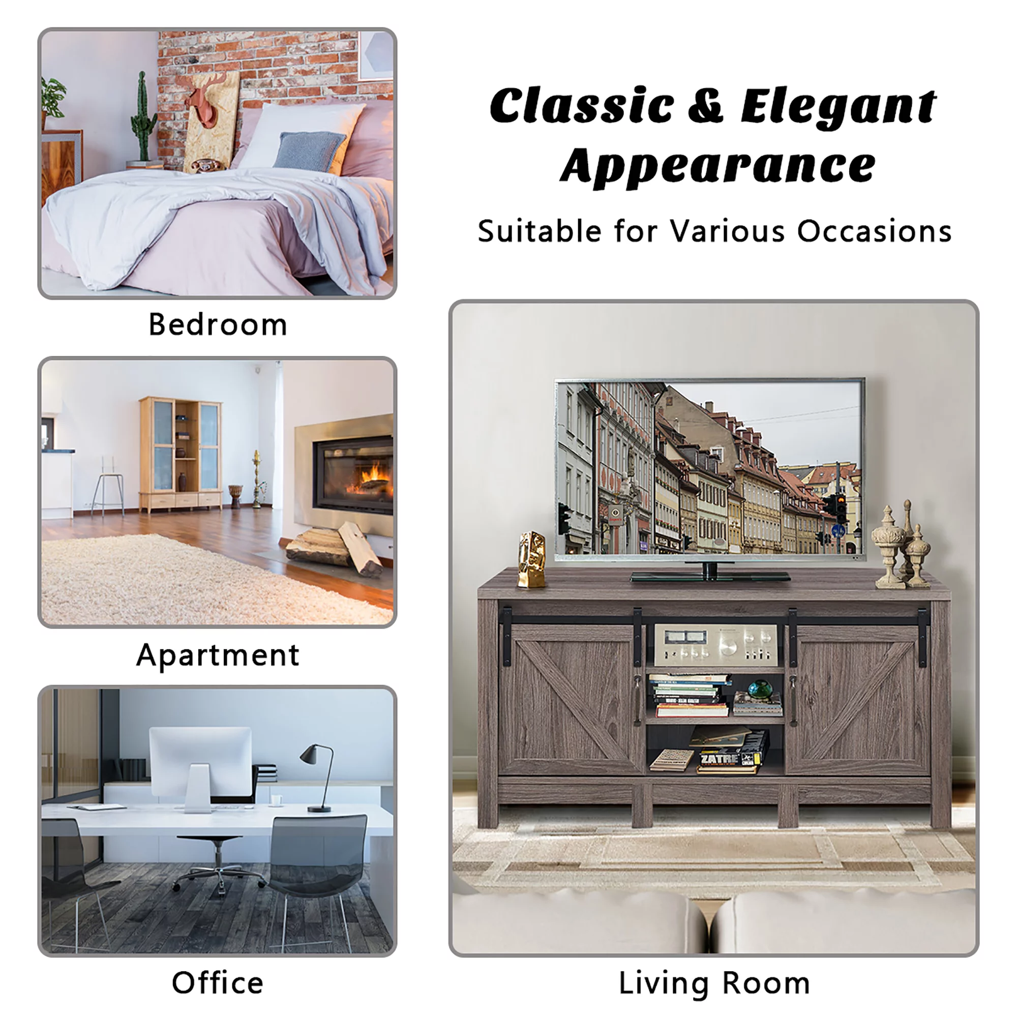 Costway TV Stand Sliding Barn Door Entertainment Center for TV's up to 55'' with Storage