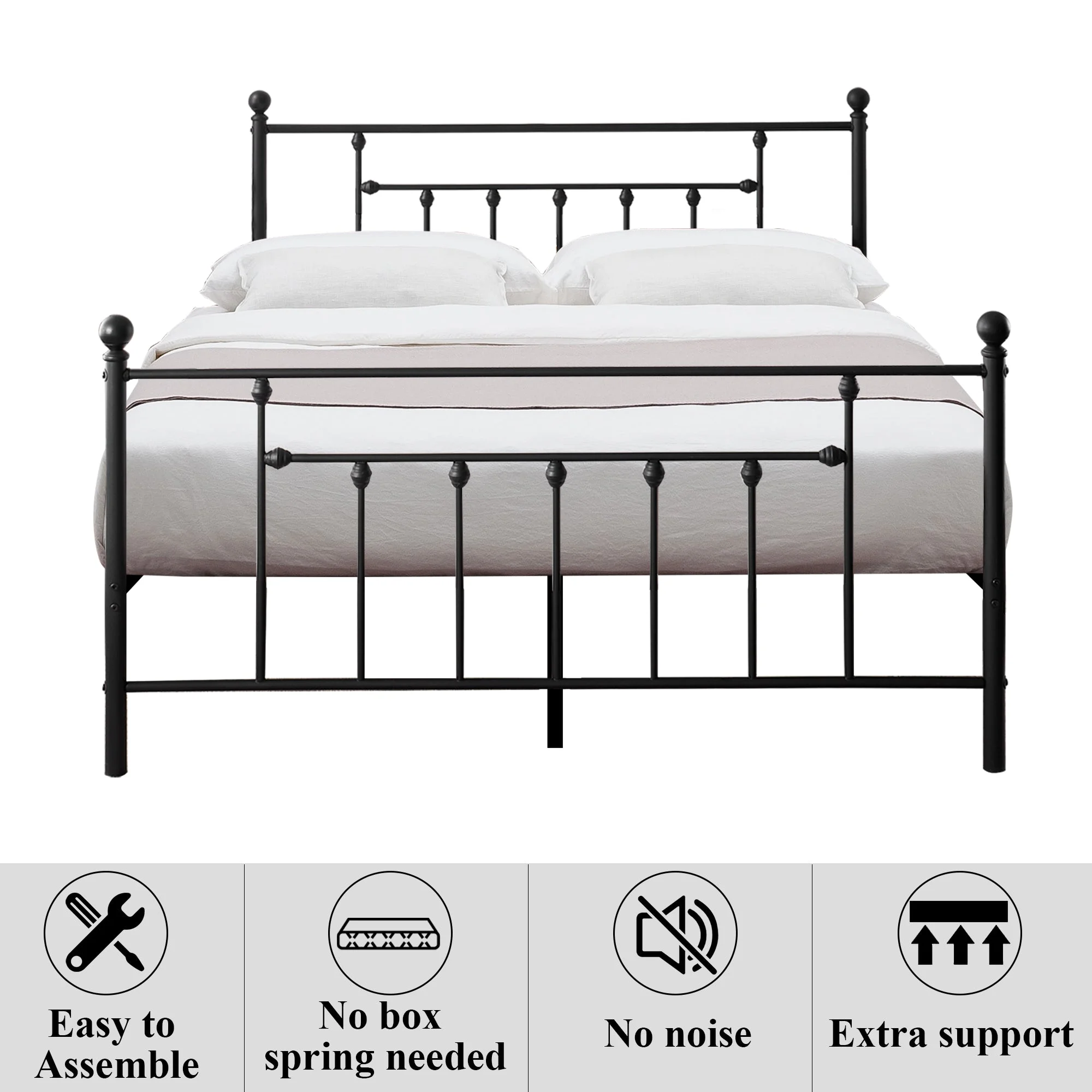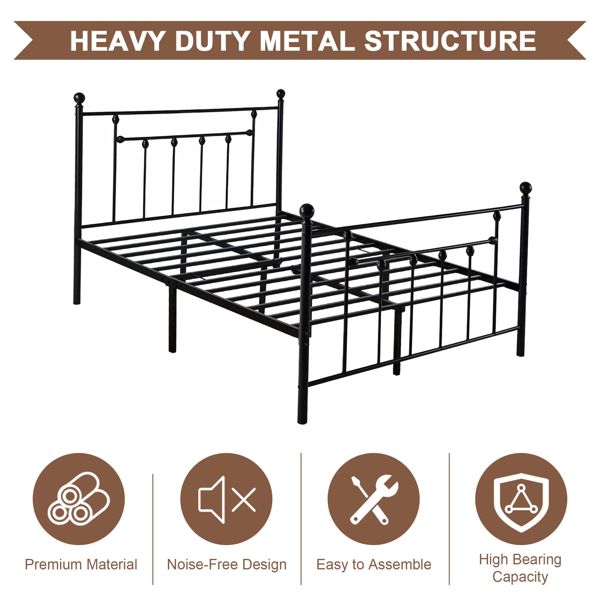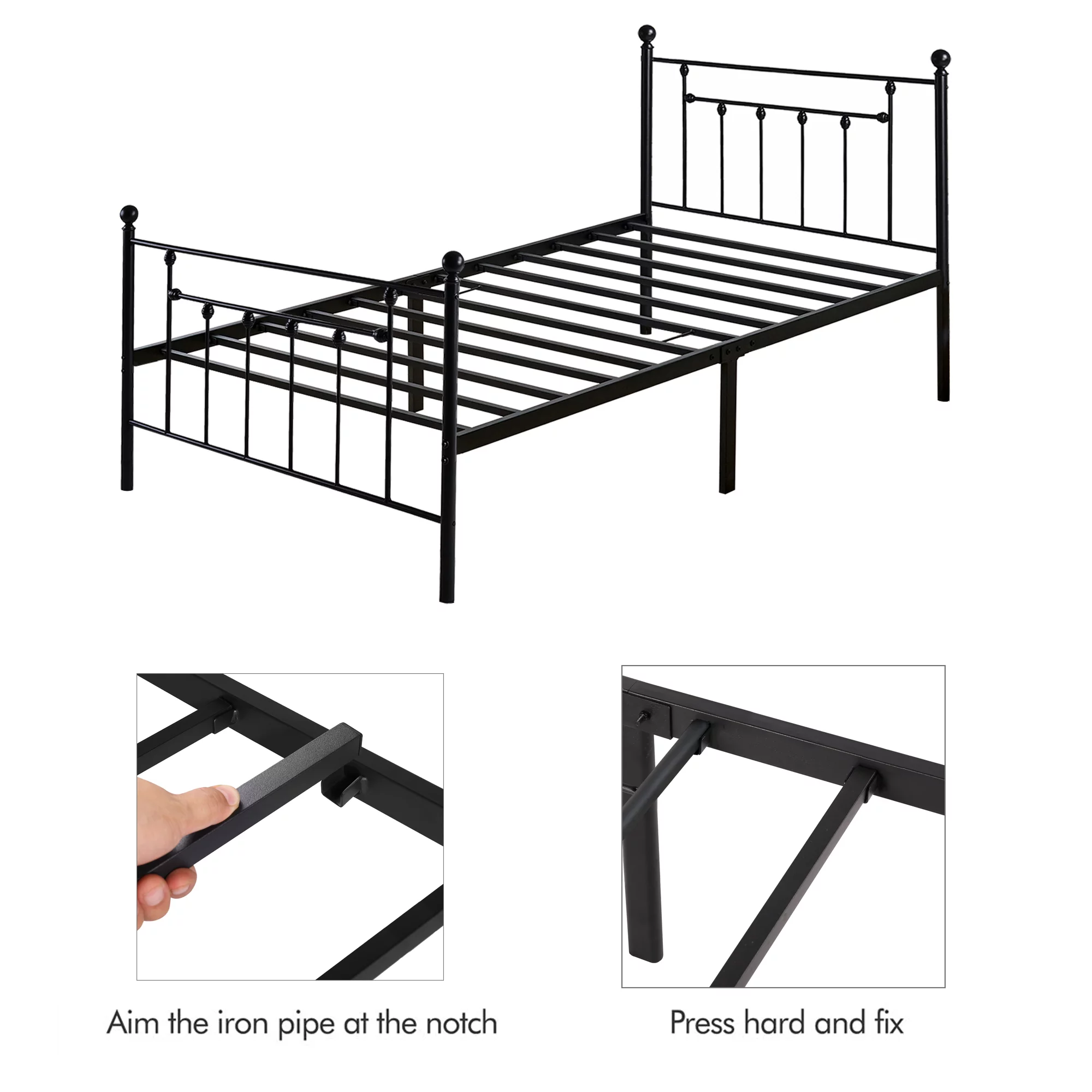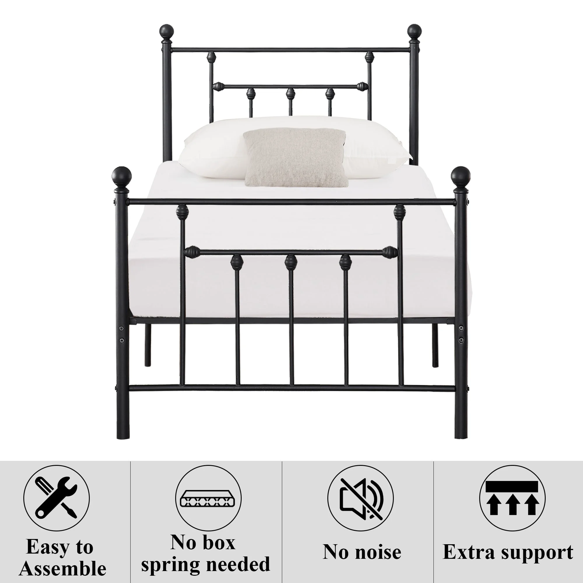 VECELO Twin Size Metal Platform Bed Frame with Victorian Vintage Headboard and Footboard, Under-Bed Storage, No Box Spring Needed, Easy Assembly, Black