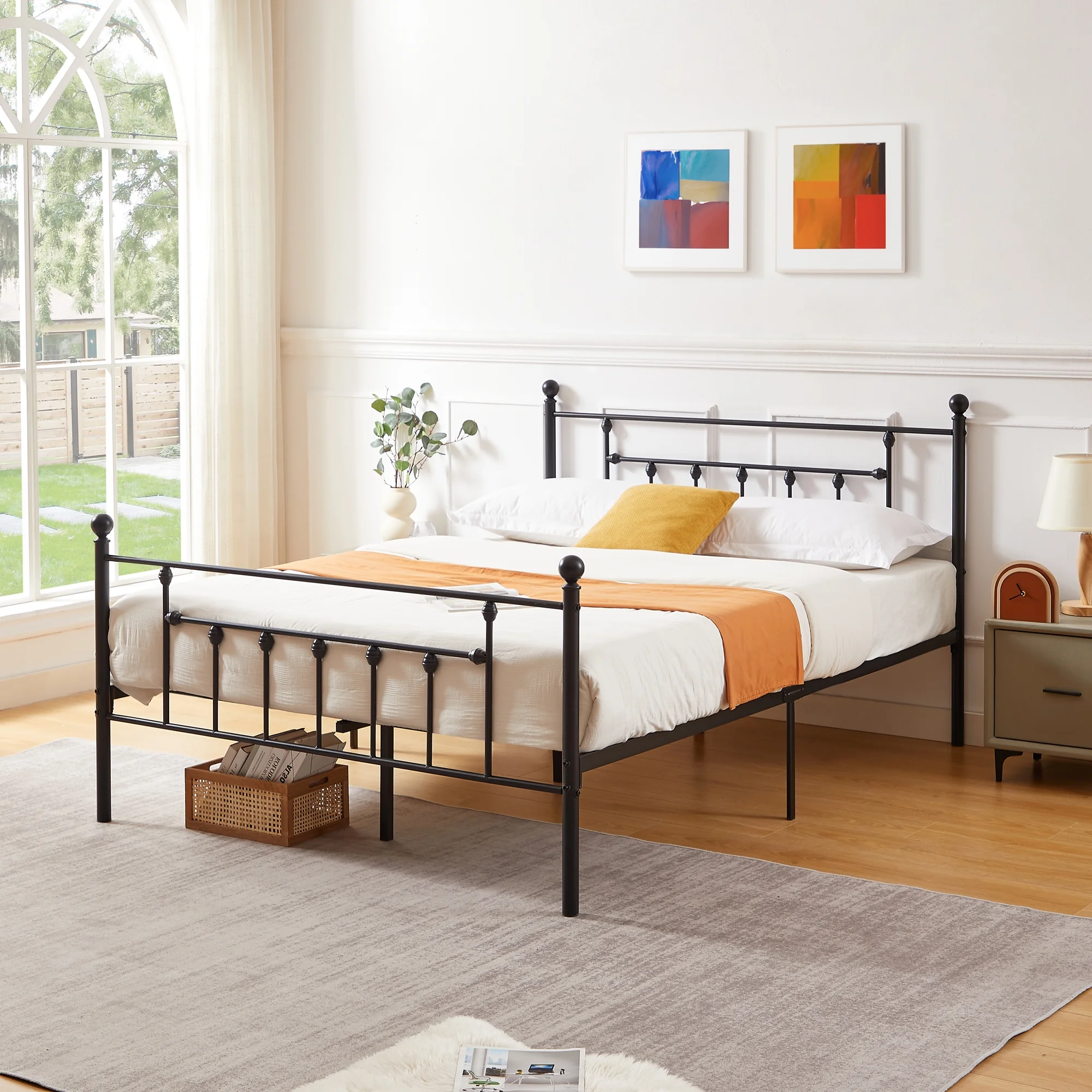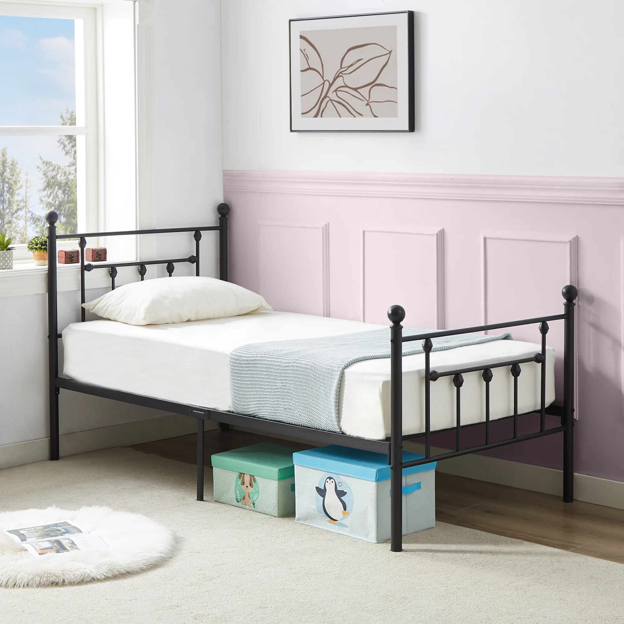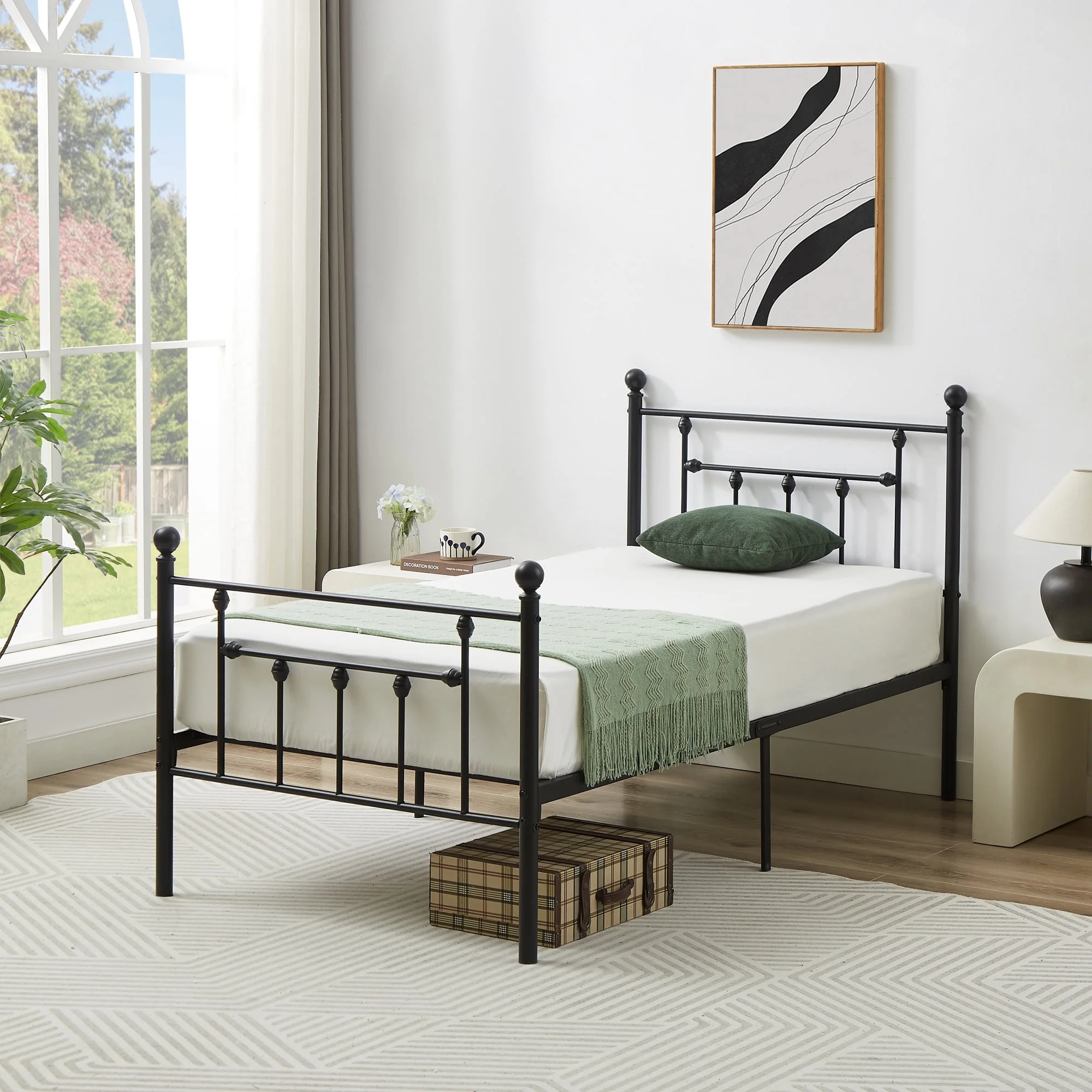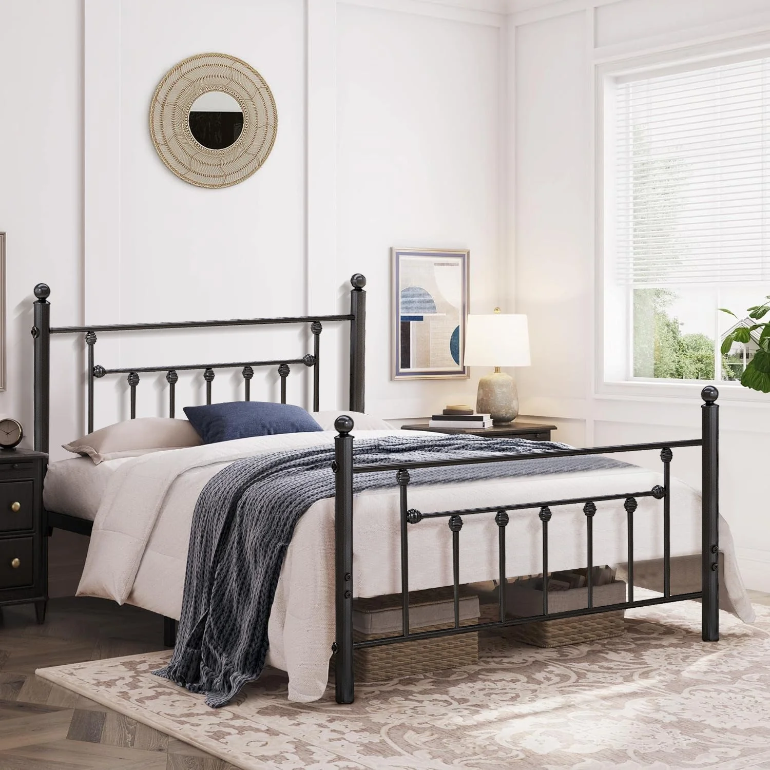 VECELO Twin Size Metal Platform Bed Frame with Victorian Vintage Headboard and Footboard, Under-Bed Storage, No Box Spring Needed, Easy Assembly, Black