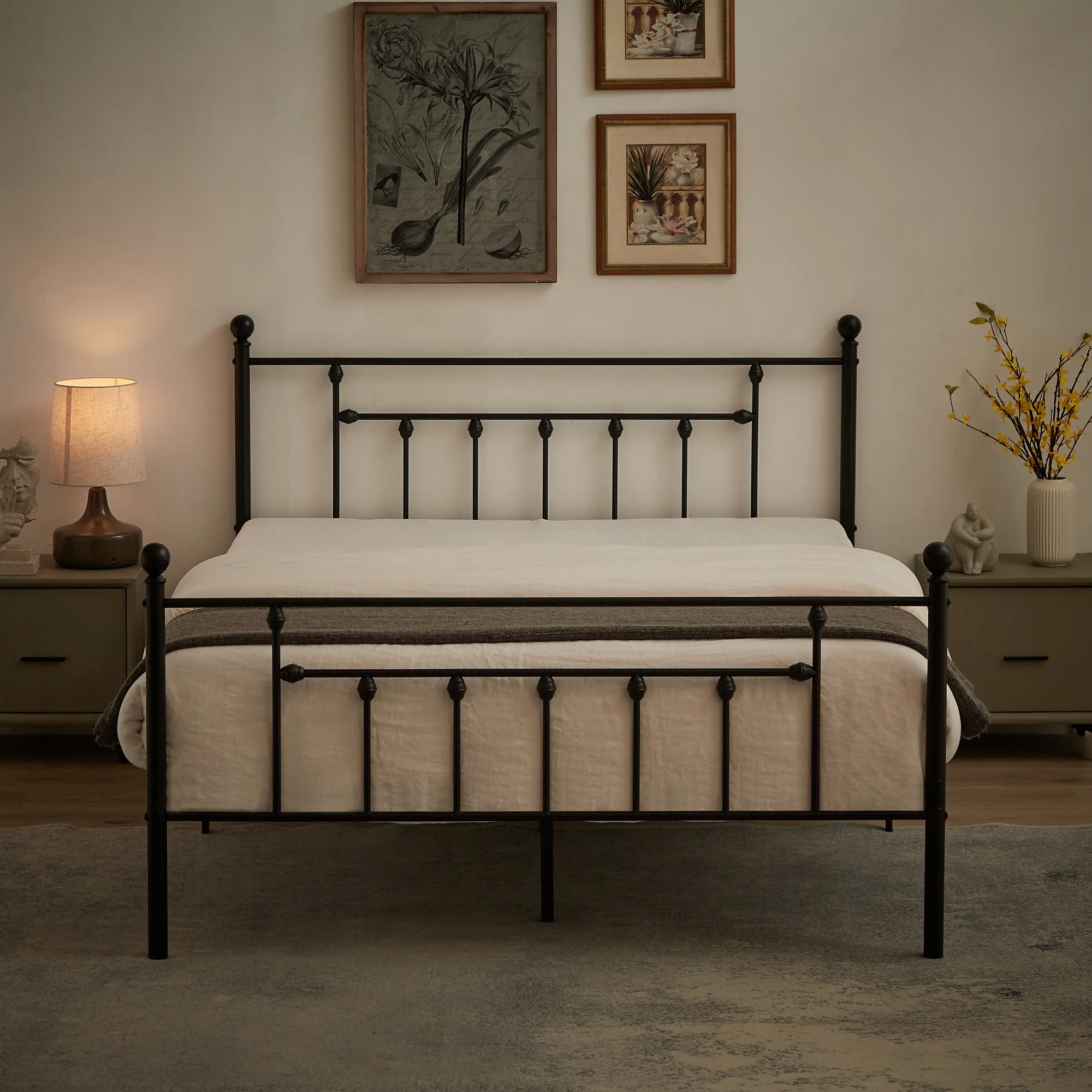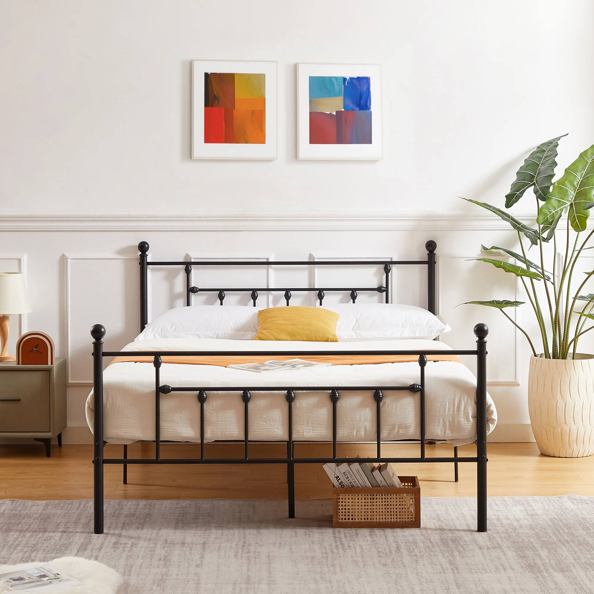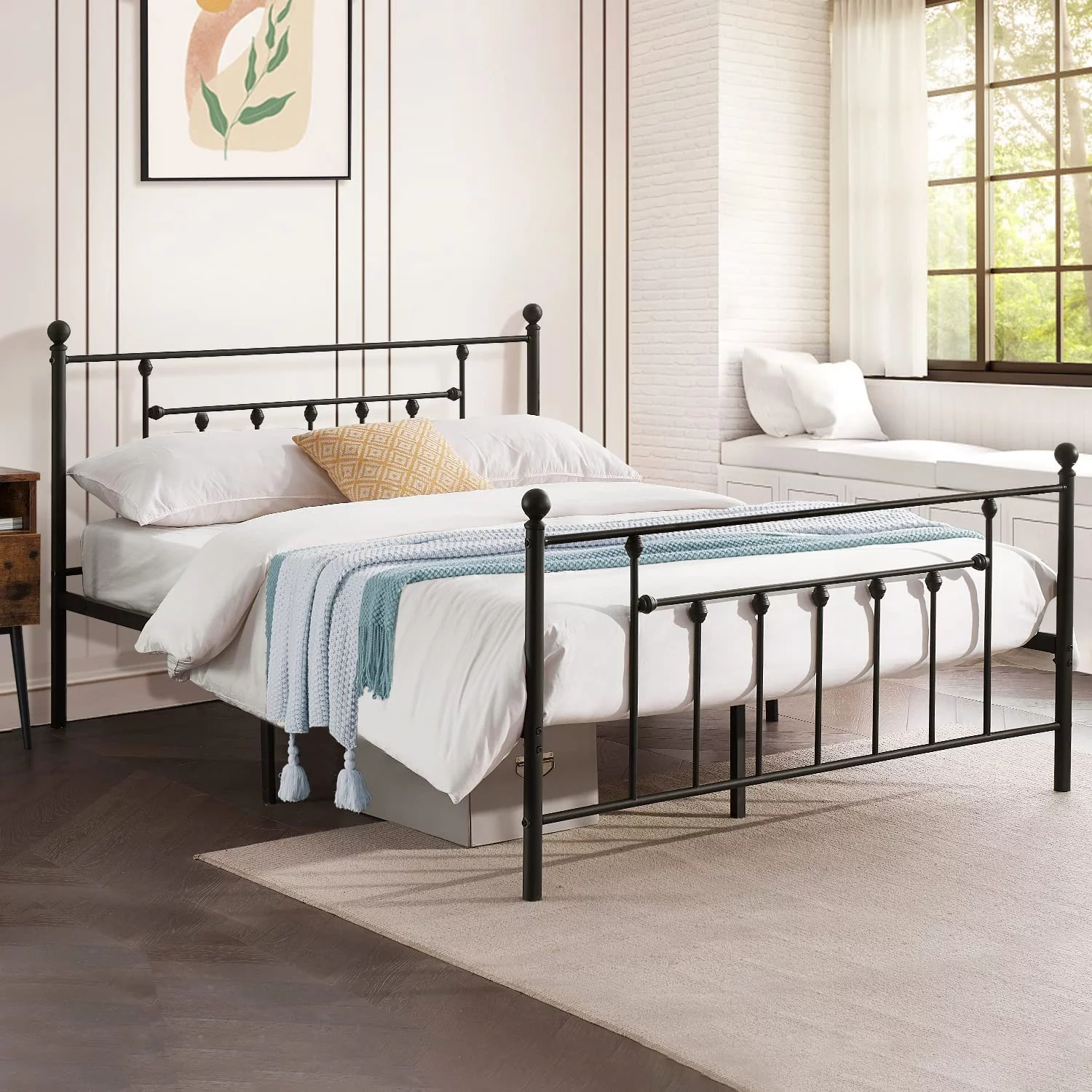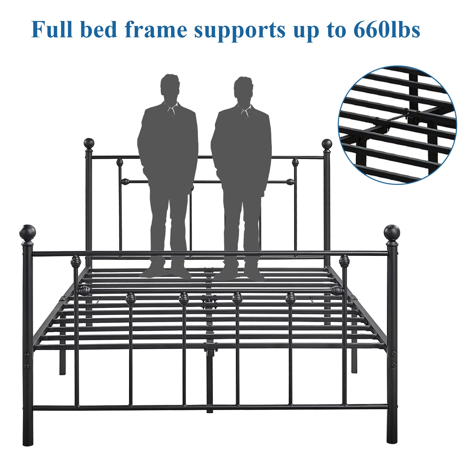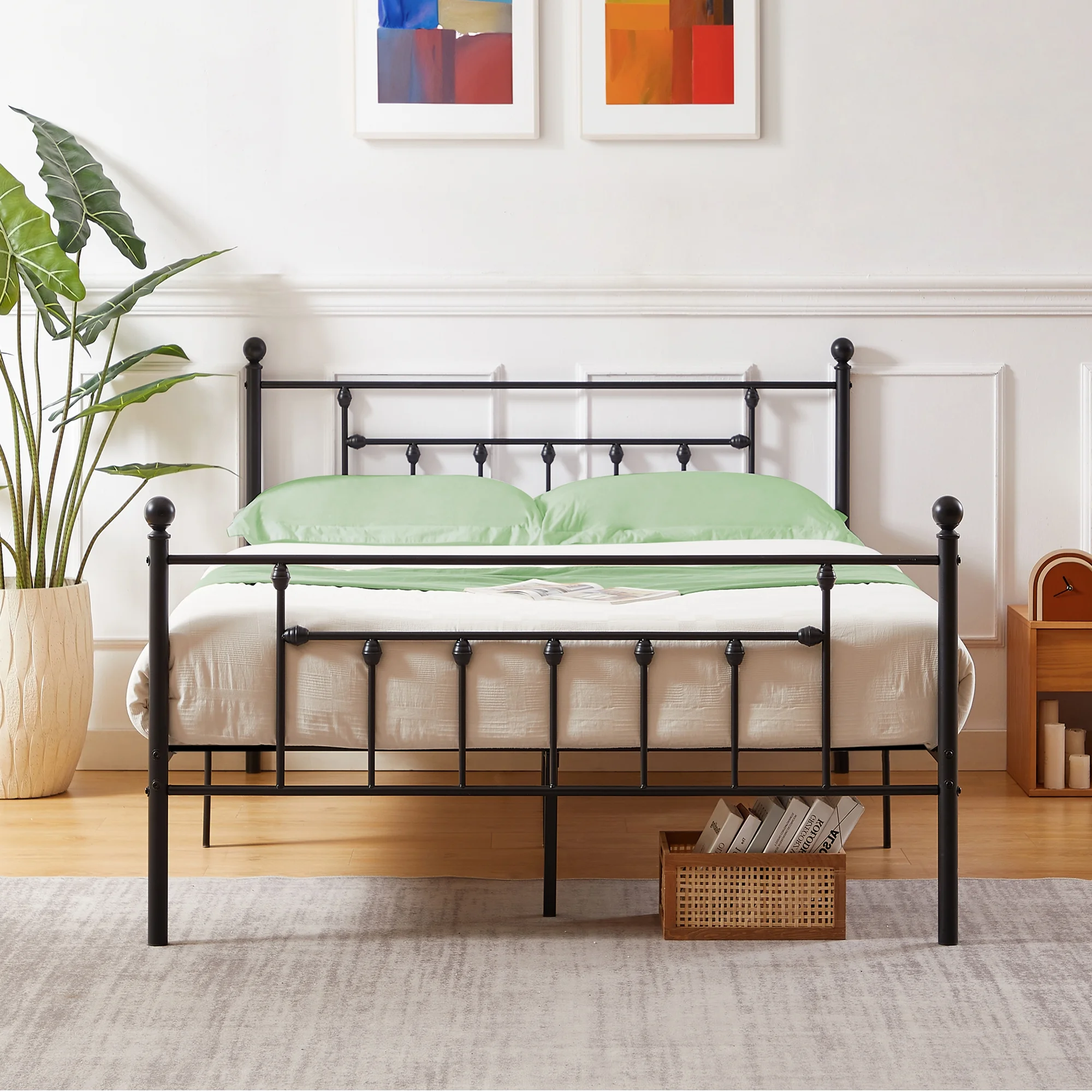 VECELO Twin Size Metal Platform Bed Frame with Victorian Vintage Headboard and Footboard, Under-Bed Storage, No Box Spring Needed, Easy Assembly, Black