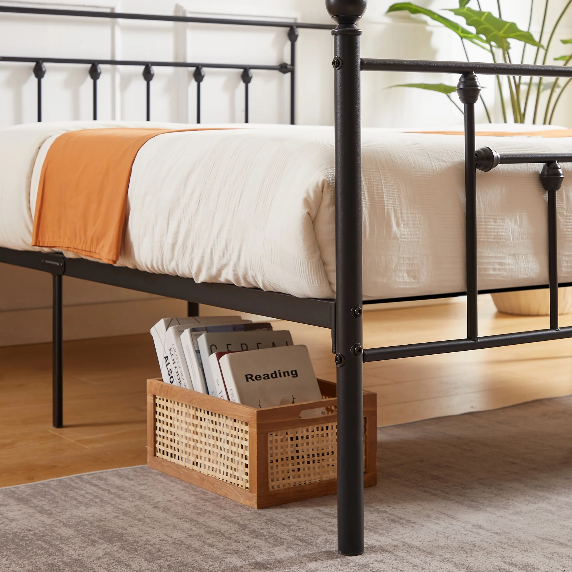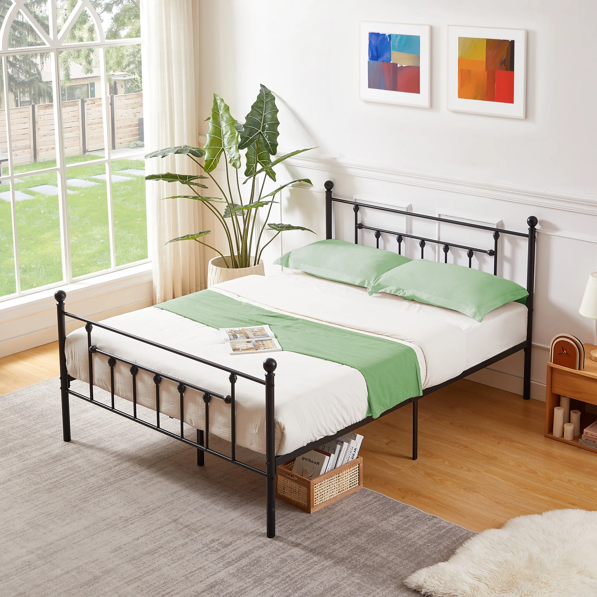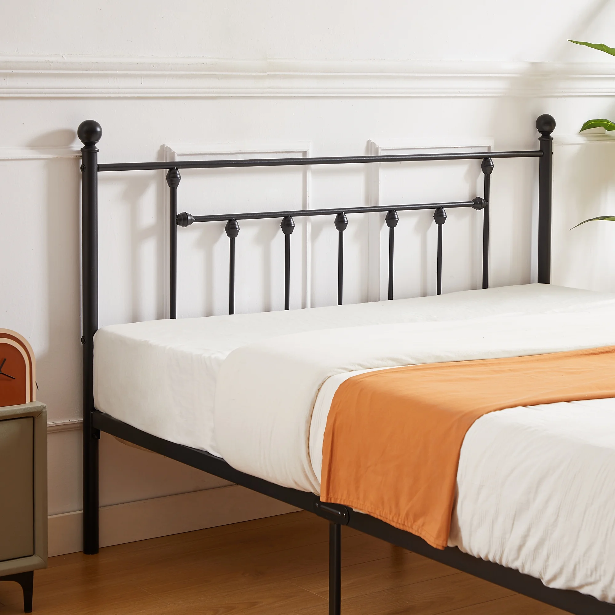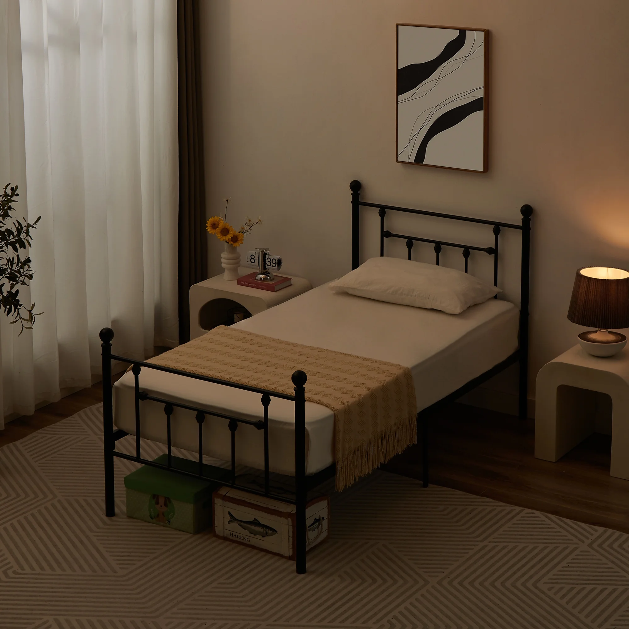 VECELO Twin Size Metal Platform Bed Frame with Victorian Vintage Headboard and Footboard, Under-Bed Storage, No Box Spring Needed, Easy Assembly, Black