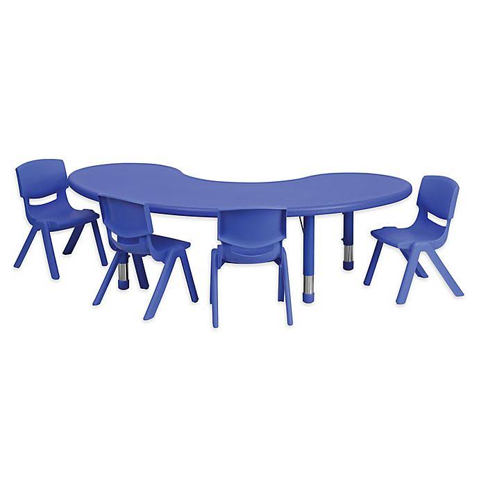 Flash Furniture Half-Moon Activity Table with 4 Stack Chairs in Blue - Megean