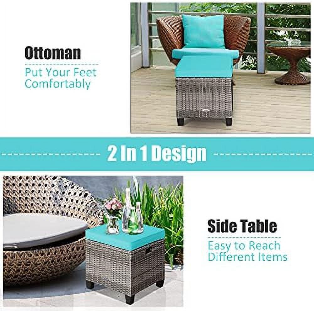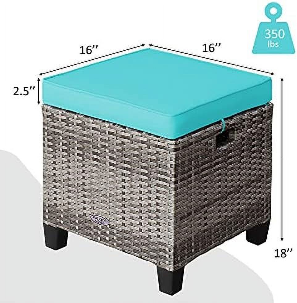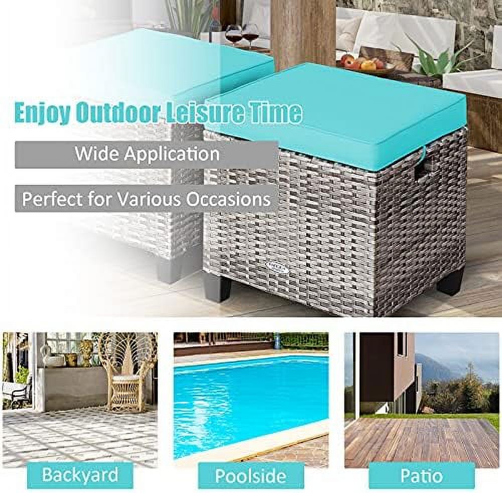 ZFGSUIJN 2 Pieces Outdoor Patio Ottoman All Weather Rattan Wicker Ottoman Seat Patio Rattan Outdoor Footstool Footrest Seat w/Removable Cushions - Curated Treasures Market