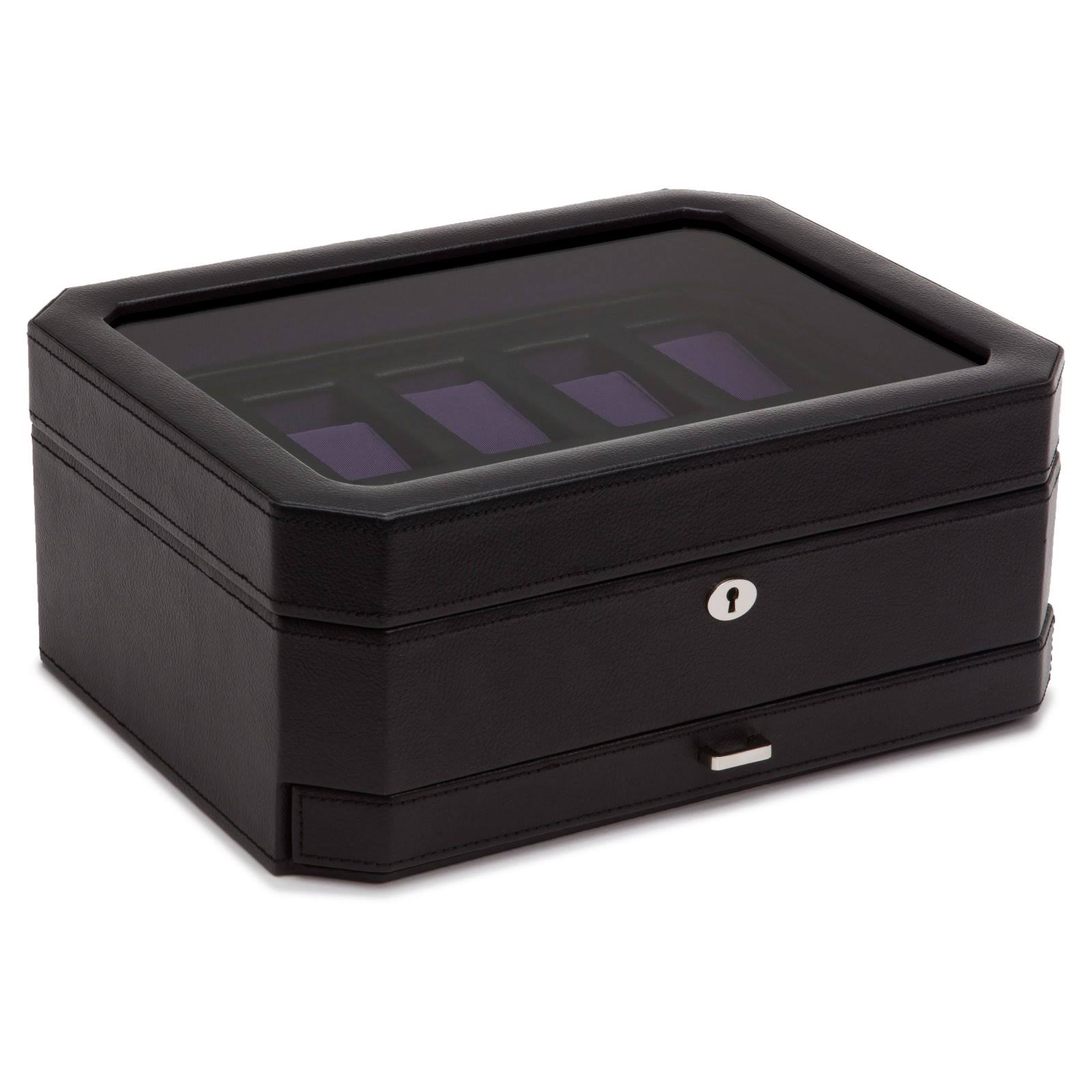 Wolf Windsor 10 Piece Watch Box with Drawer Black/Purple - Megean