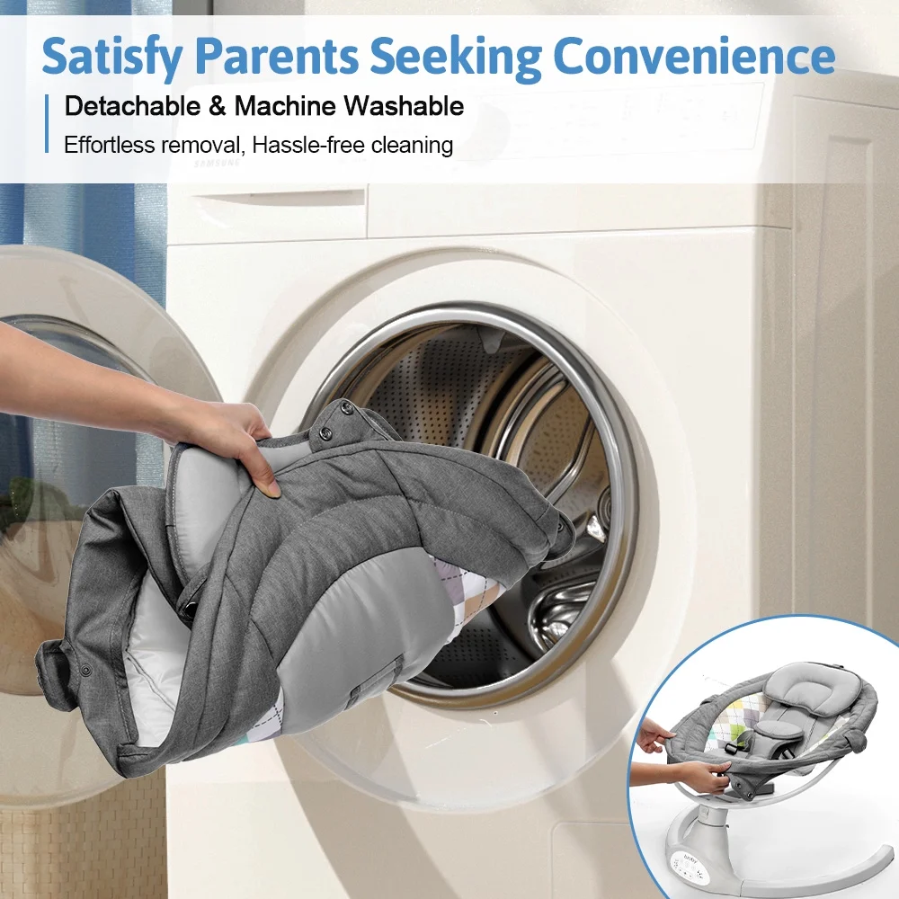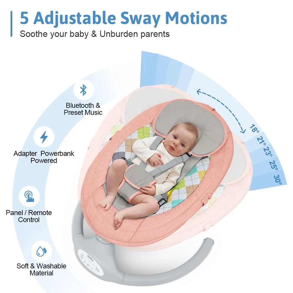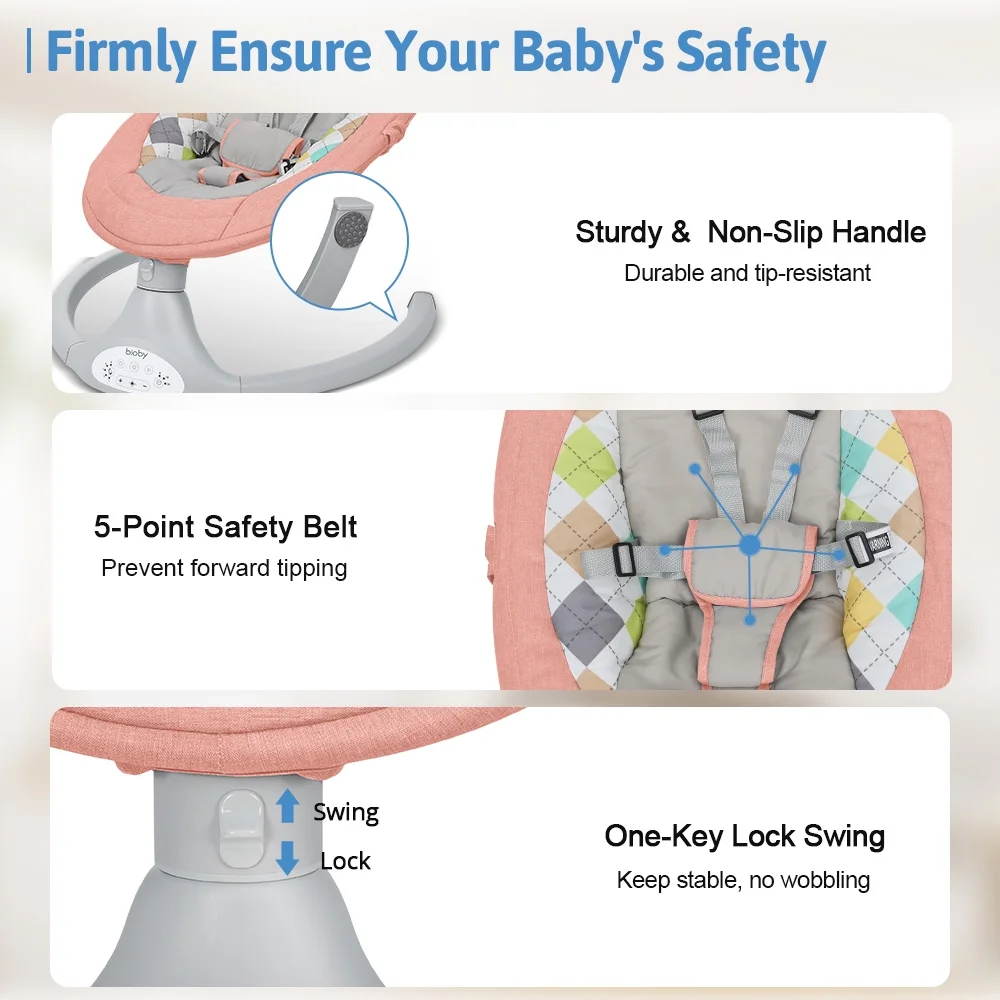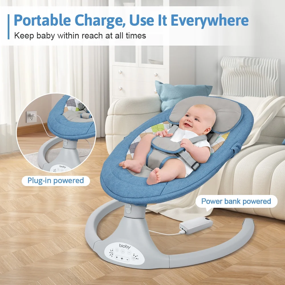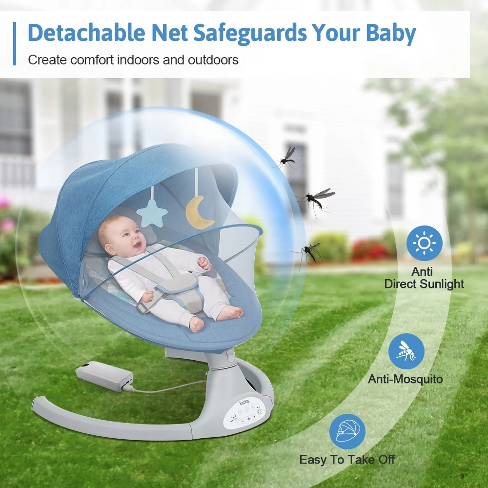 Electric Baby Swing, Bioby Infant Swing Chair Rocker with Remote Control, 5 Swing Speeds, Seat Belt, Bluetooth Music, Grey
