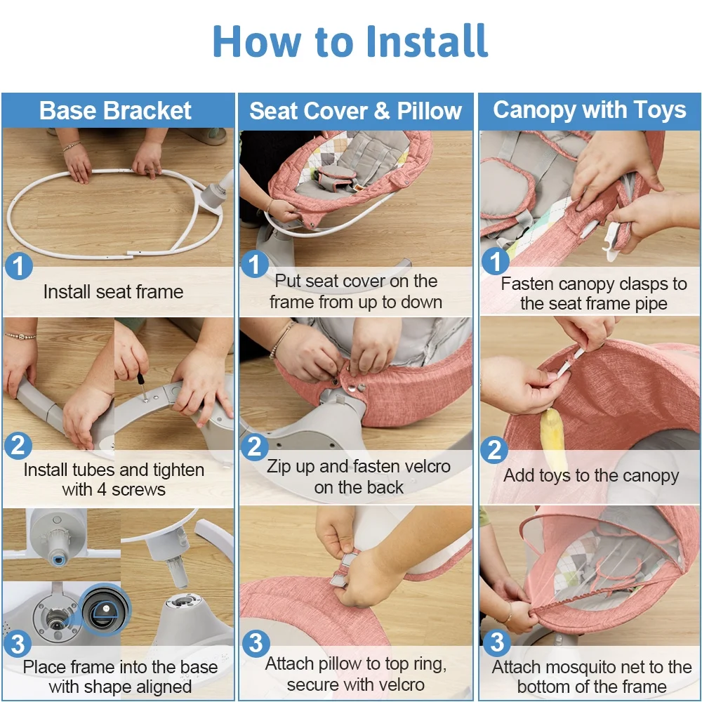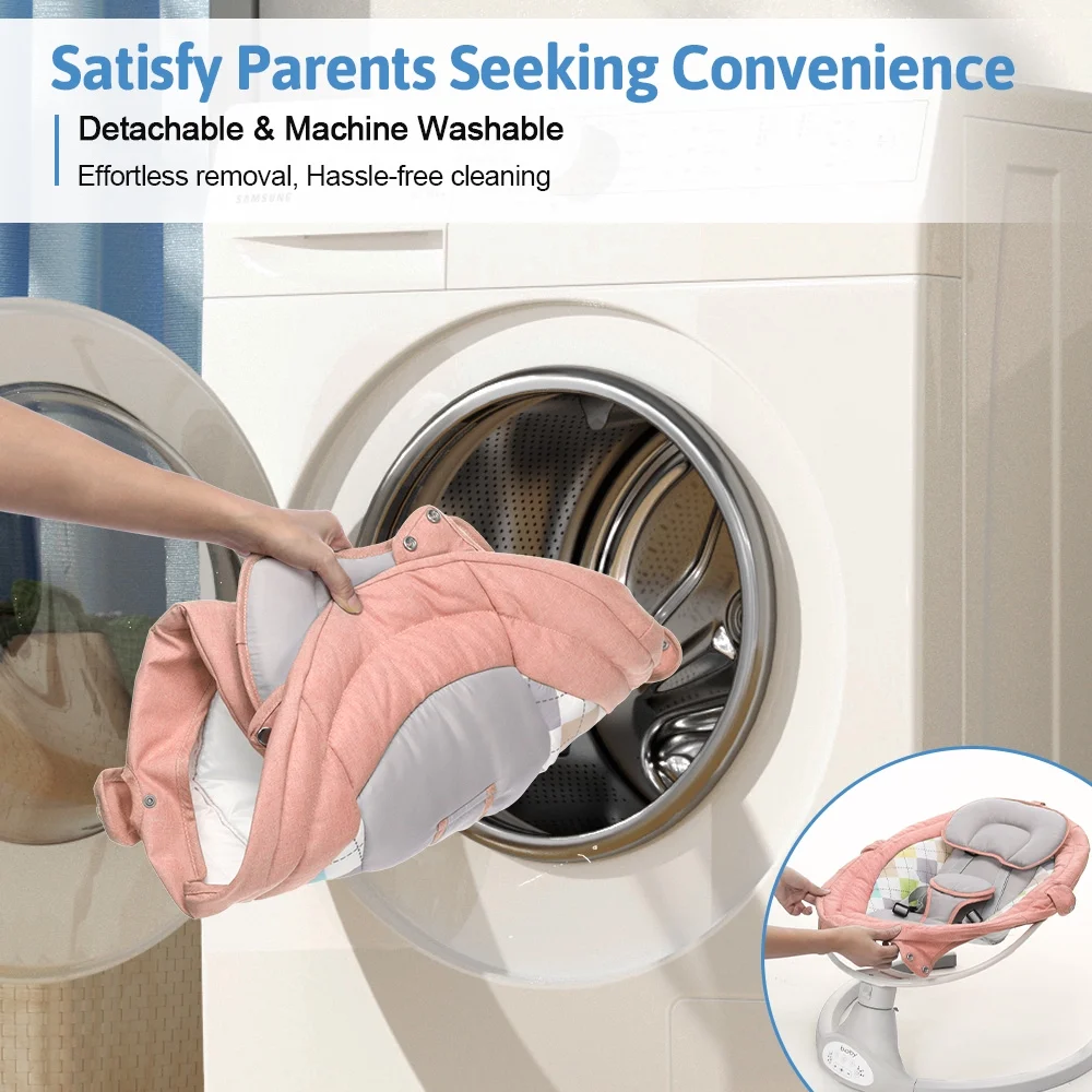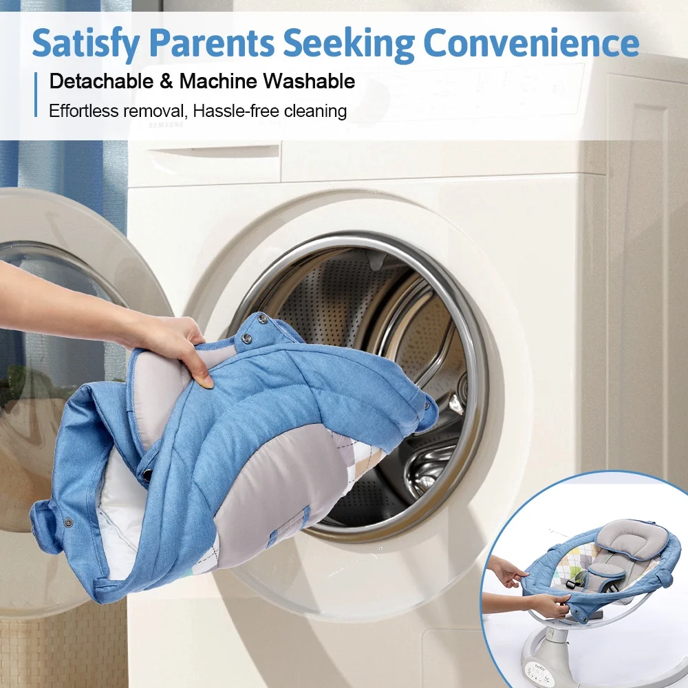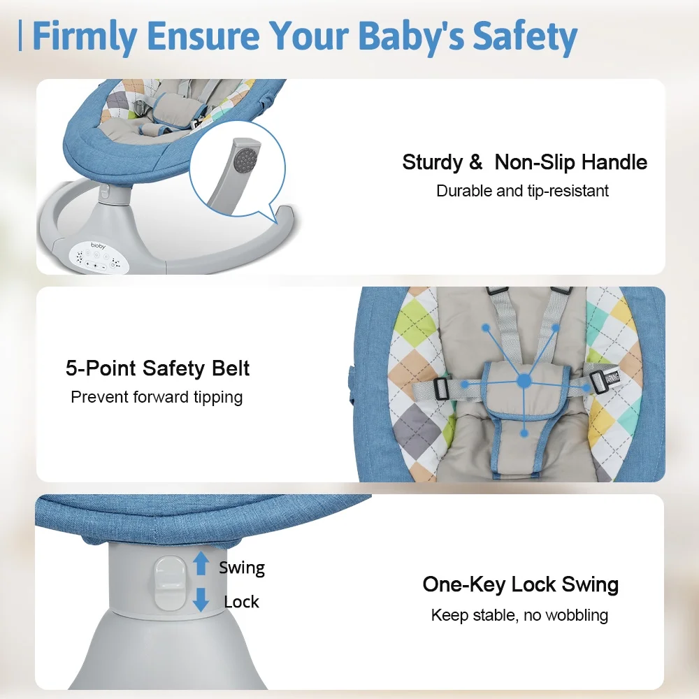 Electric Baby Swing, Bioby Infant Swing Chair Rocker with Remote Control, 5 Swing Speeds, Seat Belt, Bluetooth Music, Grey