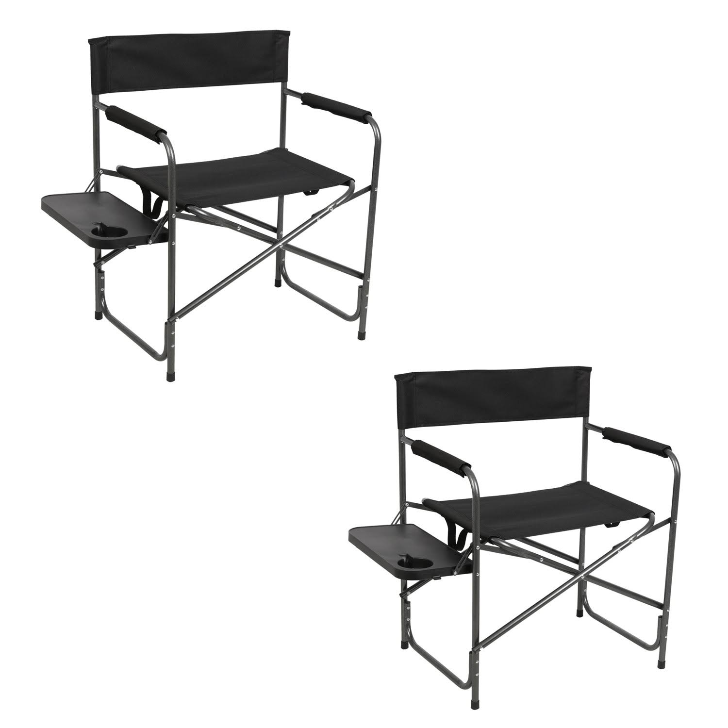 Portal Outdoor Folding Camping Directors Chair with Side Table, Black (2 Pack) - Megean