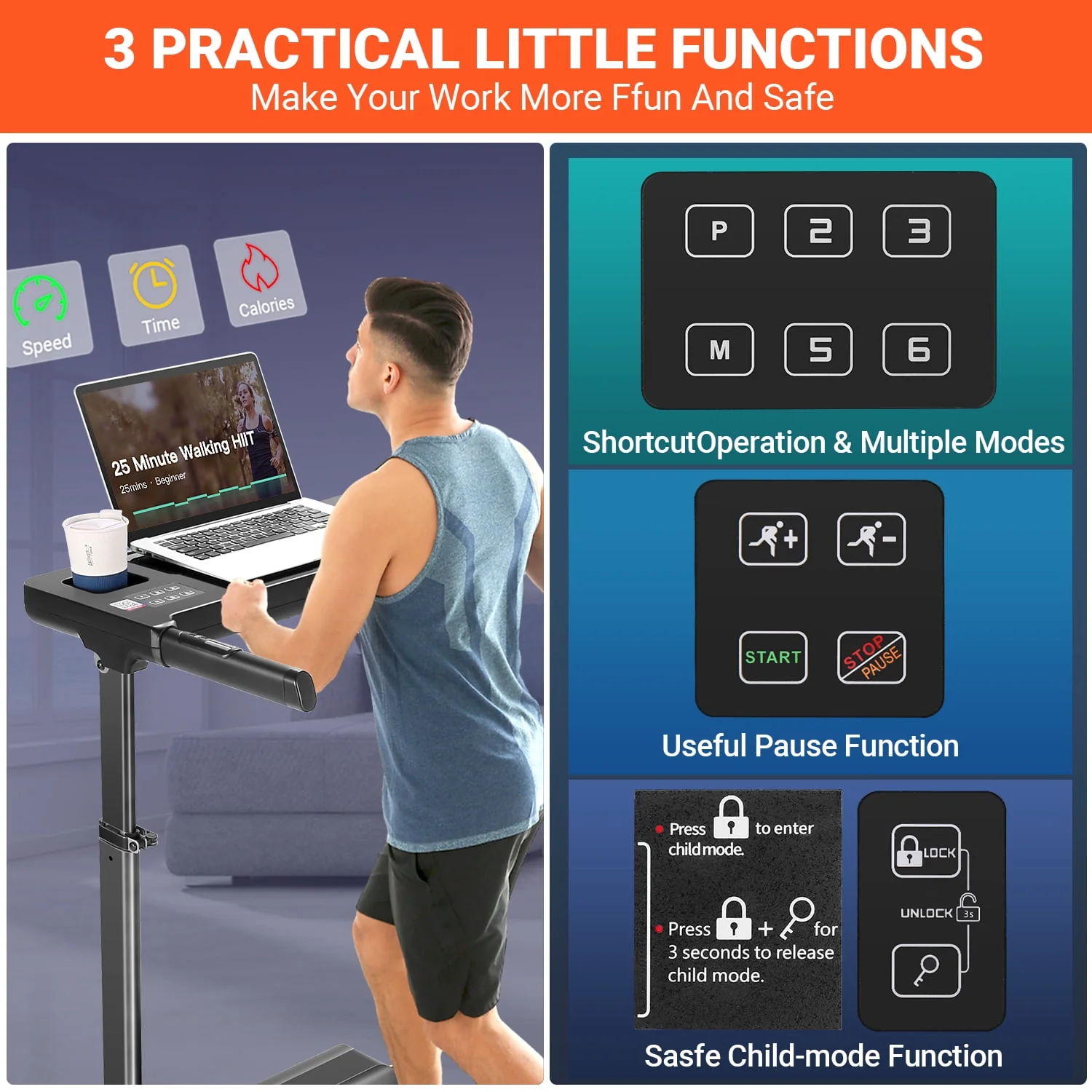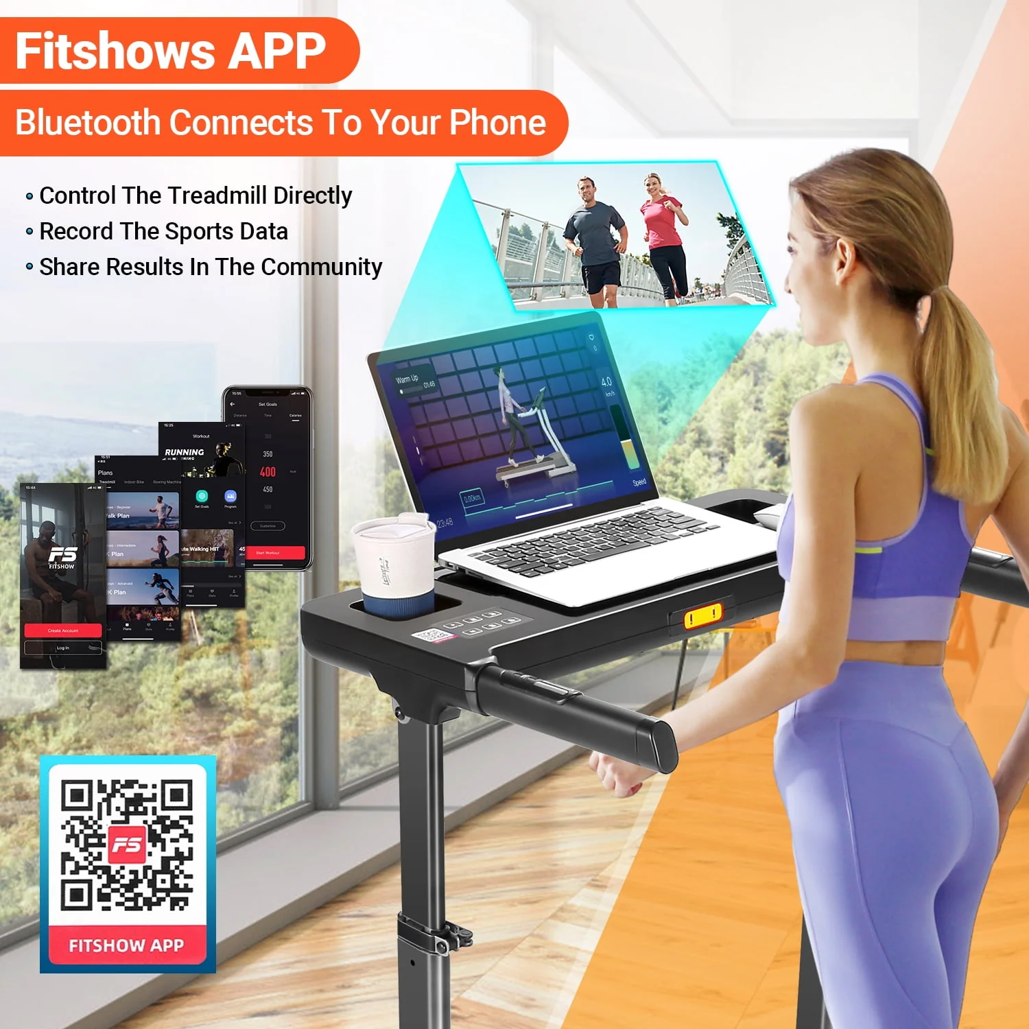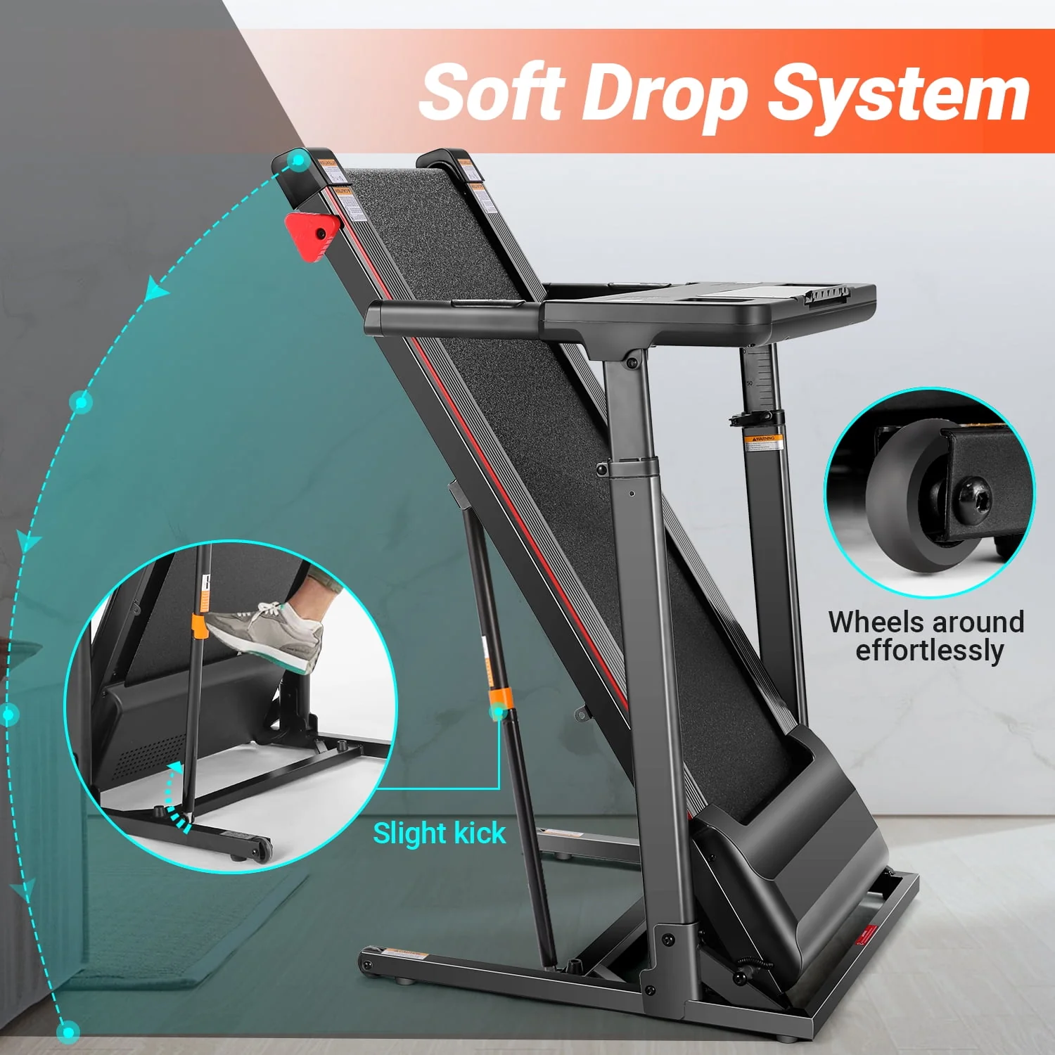 Treadmill with Desk Workstation & Adjustable Height,300LBS Weight Capacity Treadmill with Incline & Bluetooth Speaker & App, Folding Portable Walking Running Machine for Home Office