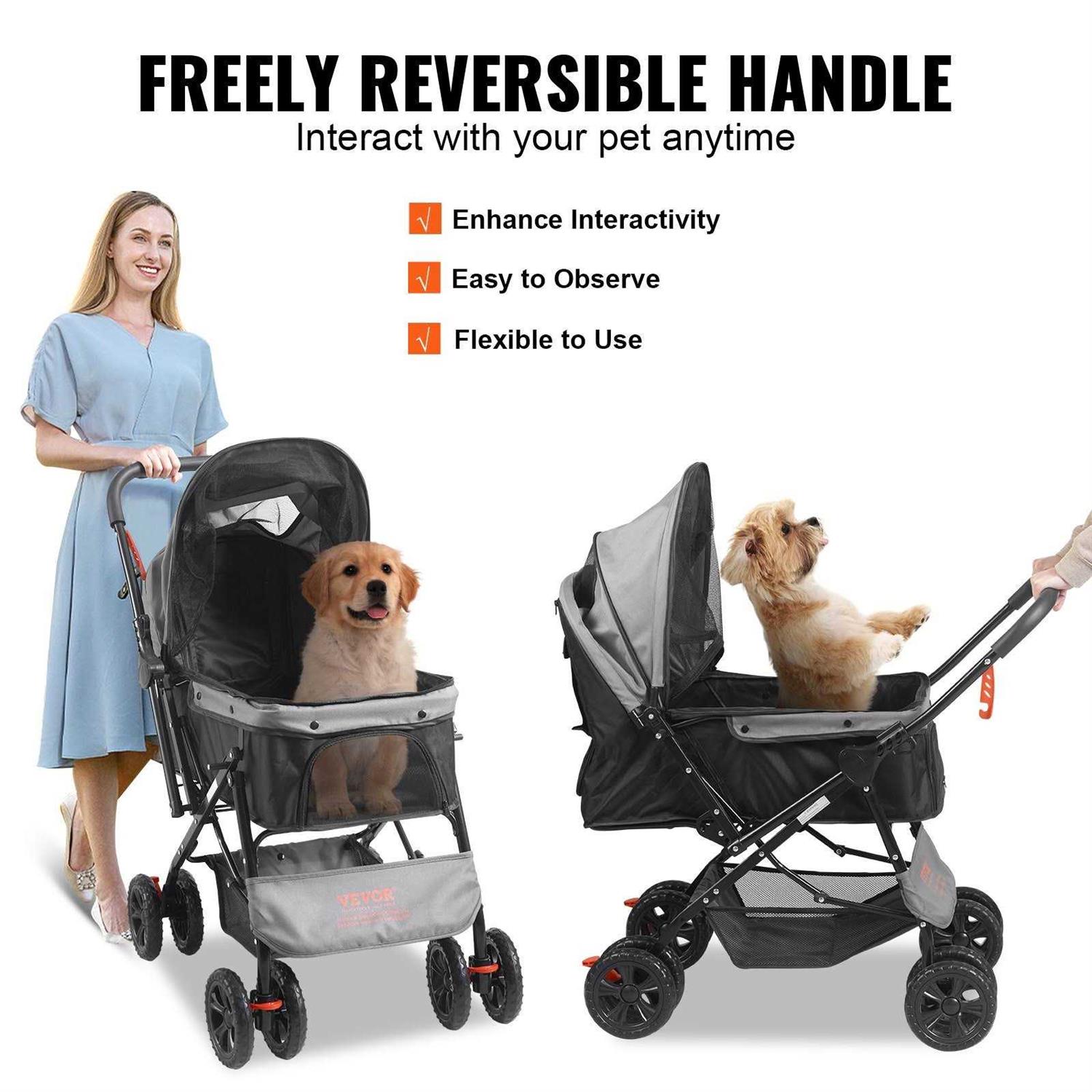 VEVOR Pet Stroller 4 Wheels Dog Stroller Rotate with Brakes