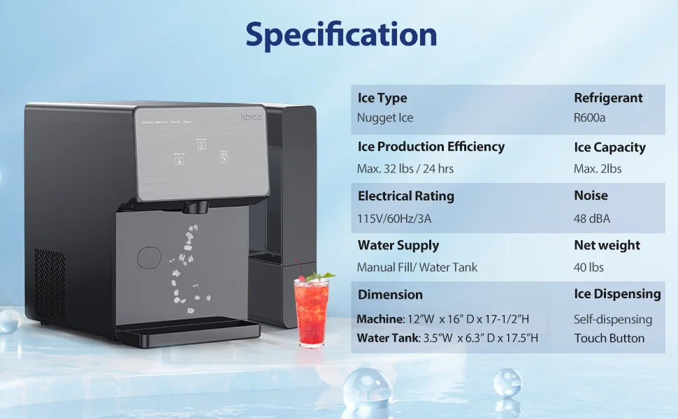KBICE 3.0 Self Dispensing Countertop Nugget Ice Maker, Crunchy Pebble Ice Maker with Water Tank